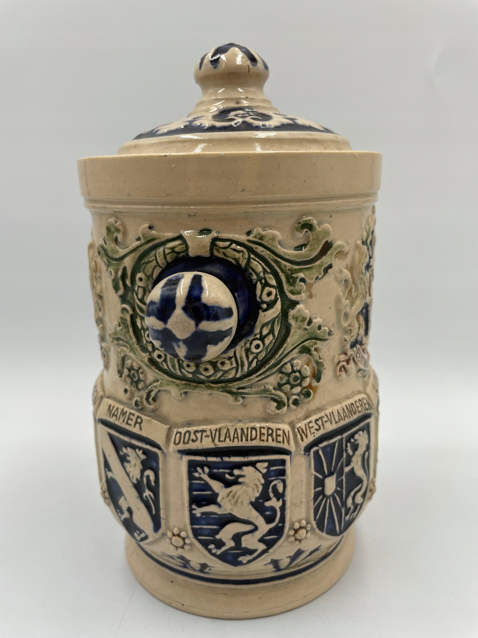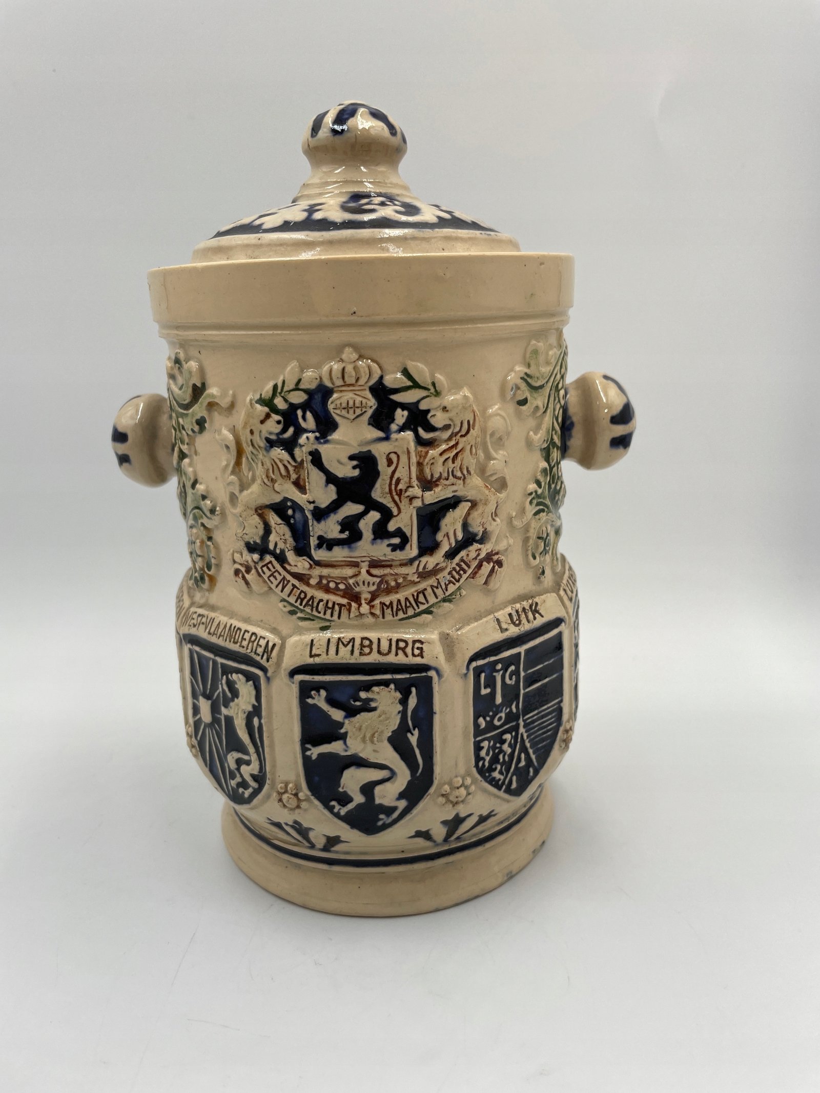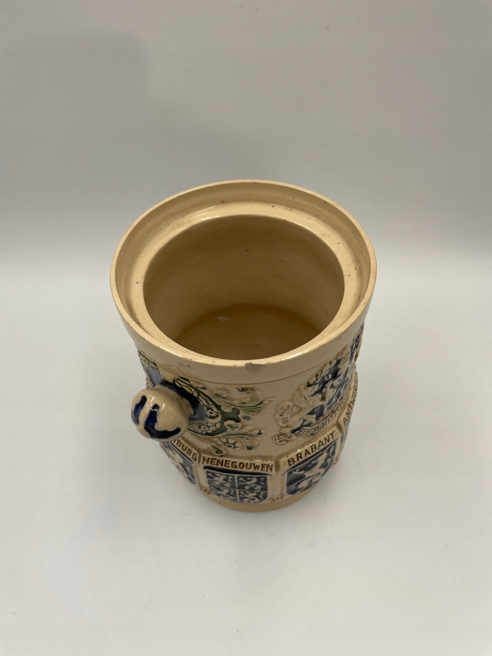 Zabytkowa beczka na tytoń z belgijskimi herbami 1900-1920