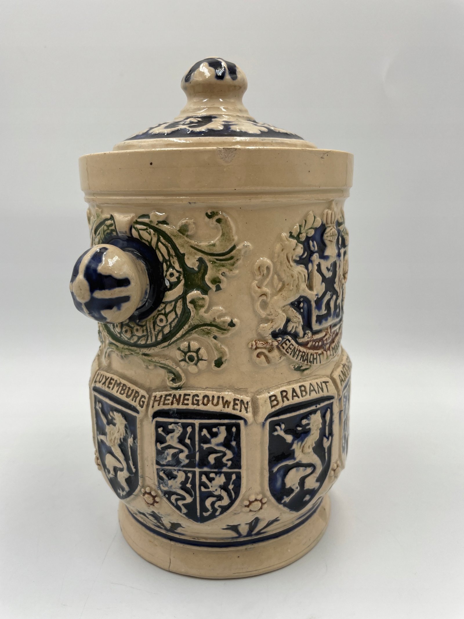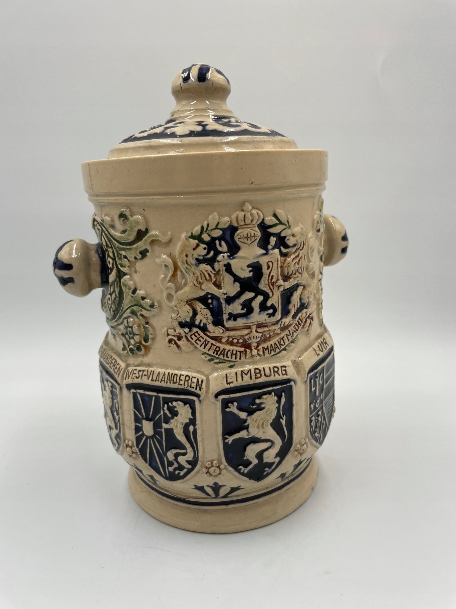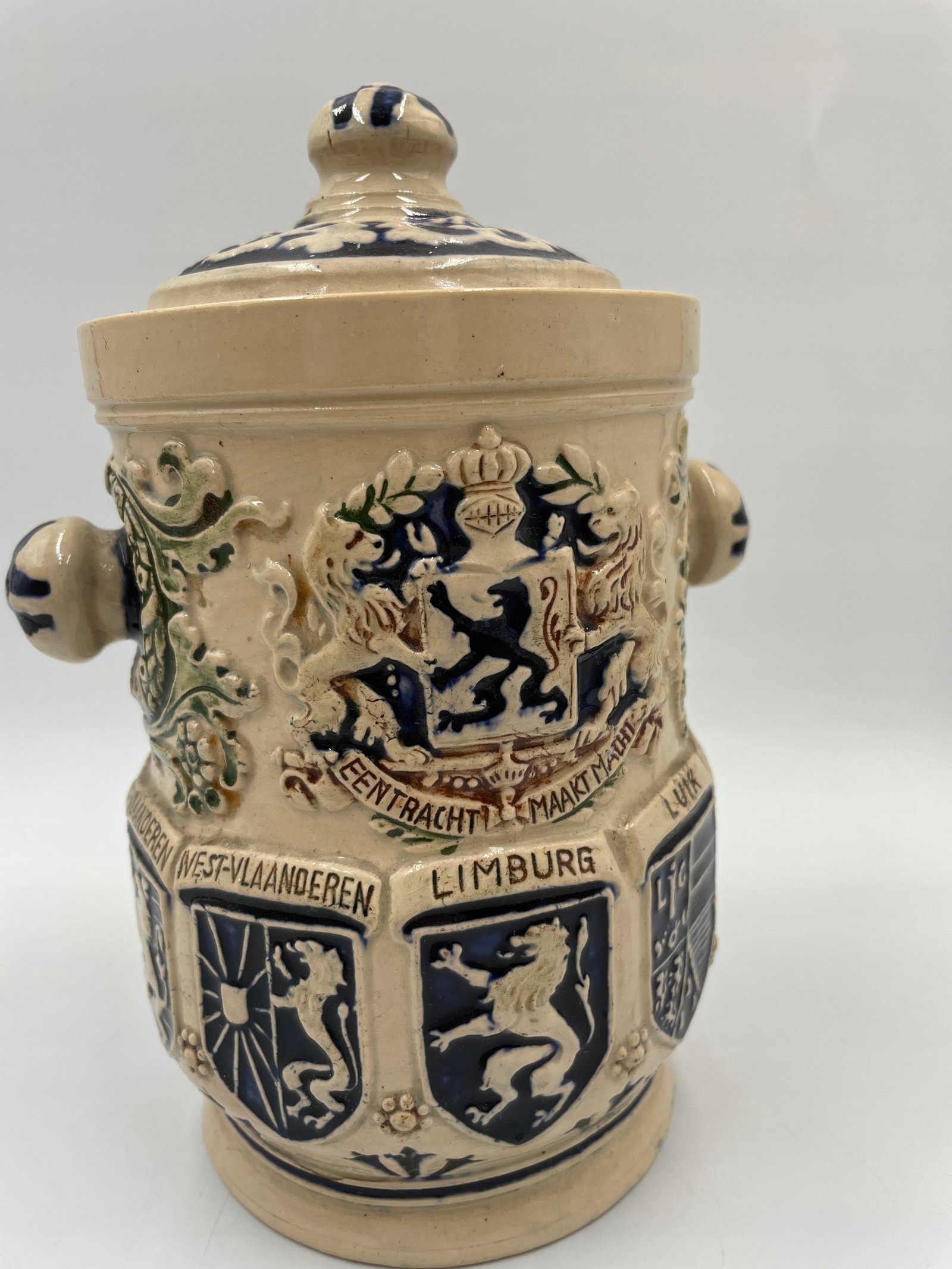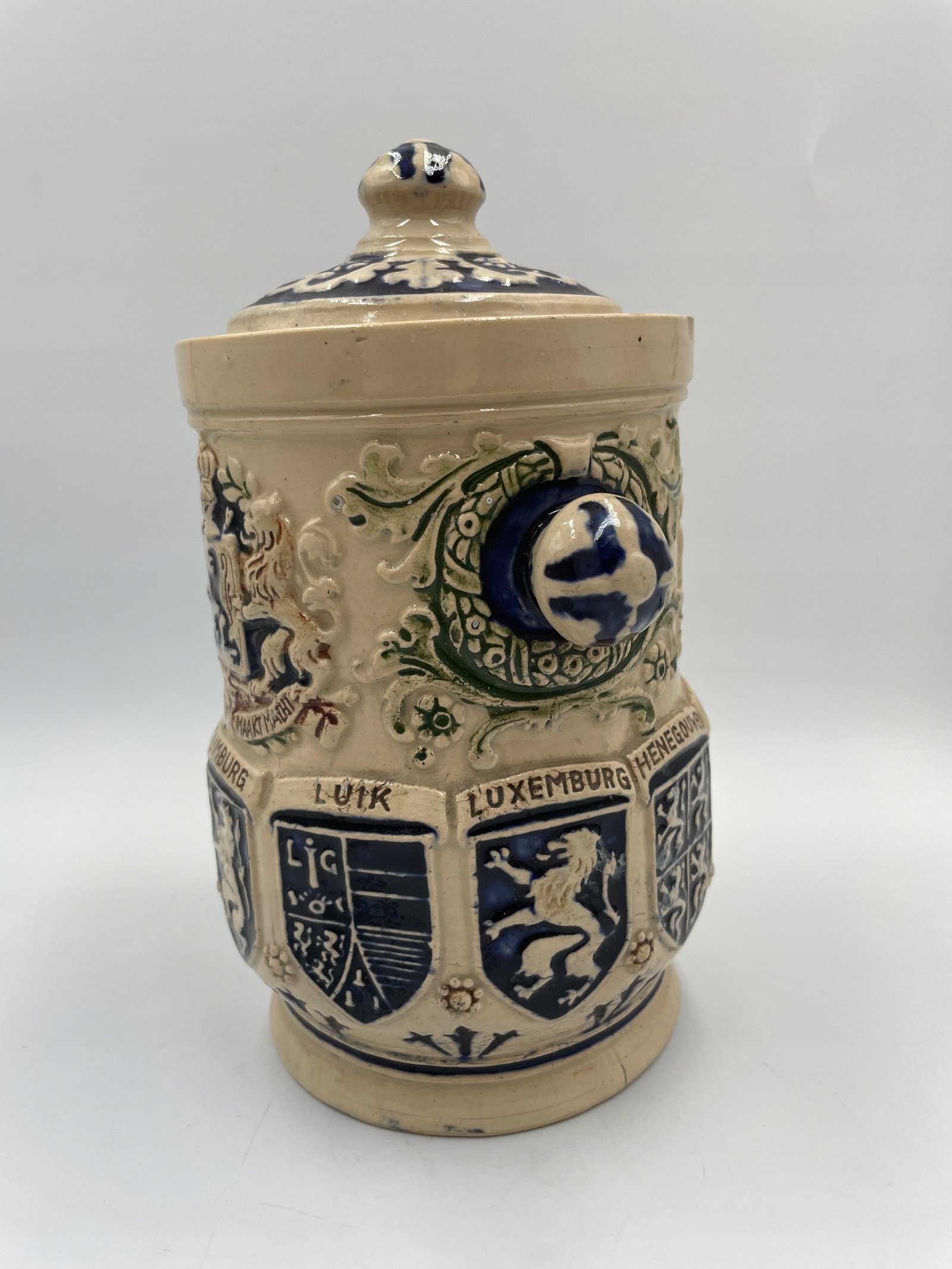 Zabytkowa beczka na tytoń z belgijskimi herbami 1900-1920