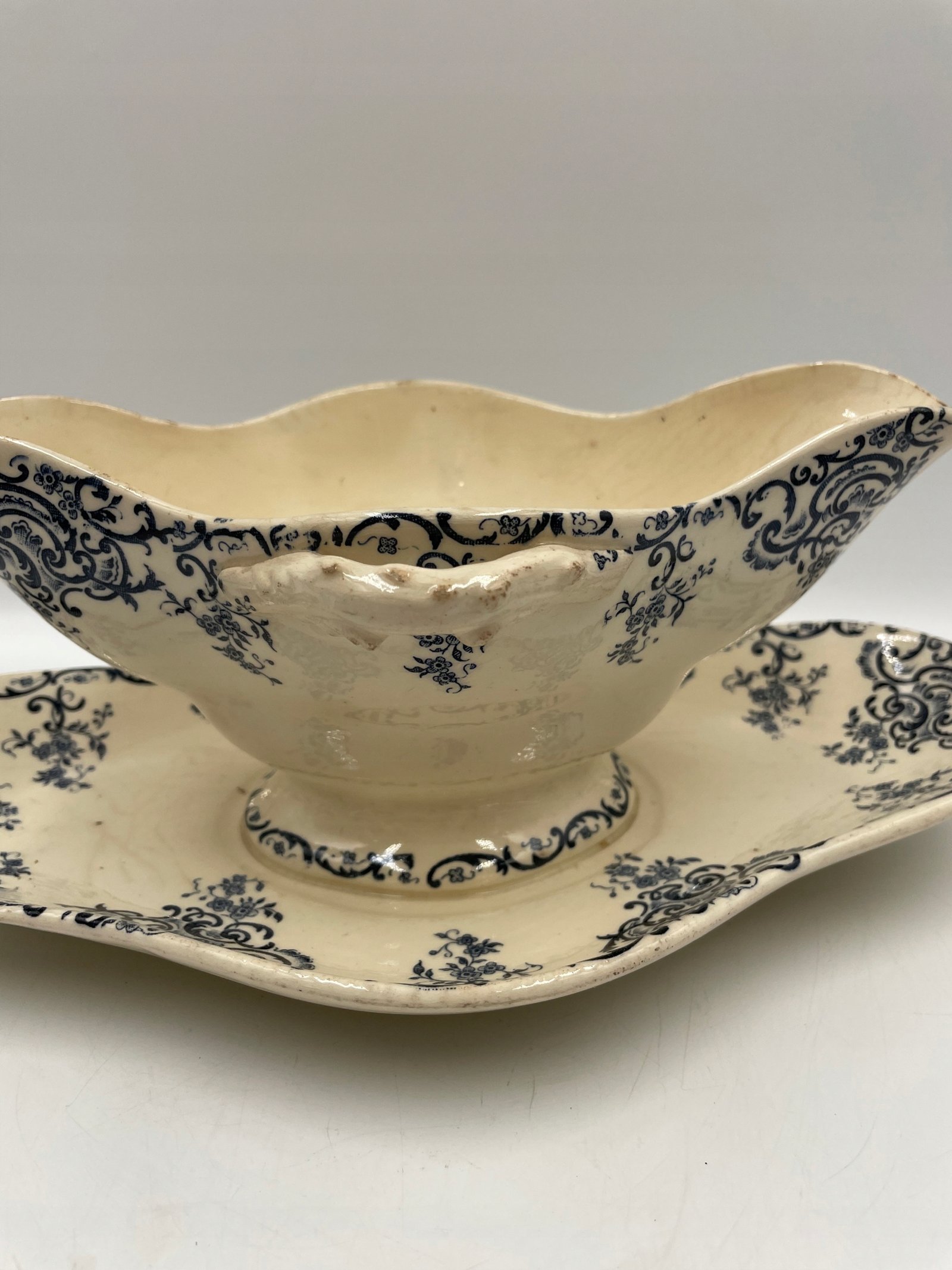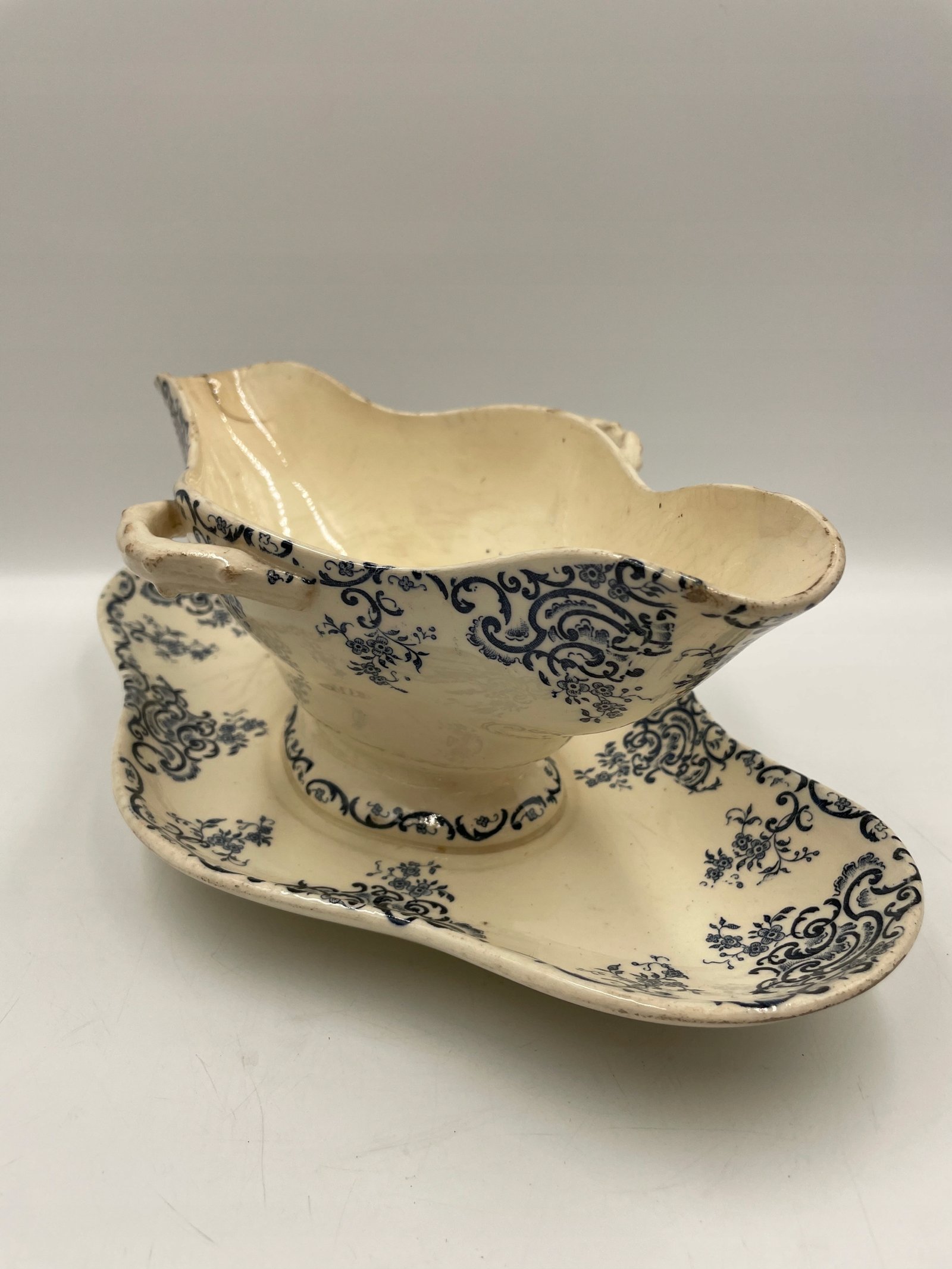 Sosjerka porcelanowa Windsor z podstawką biało-niebieska vintage
