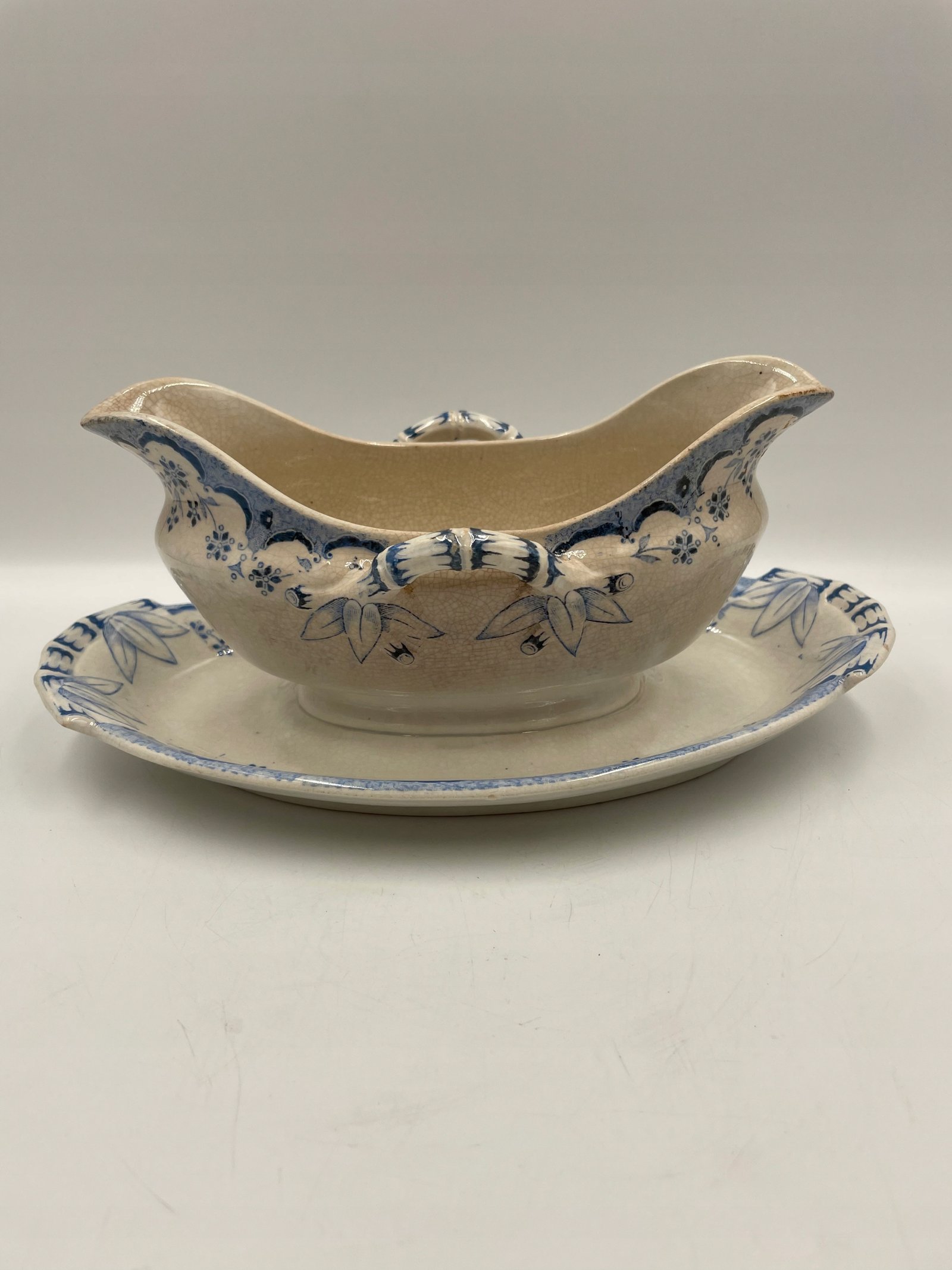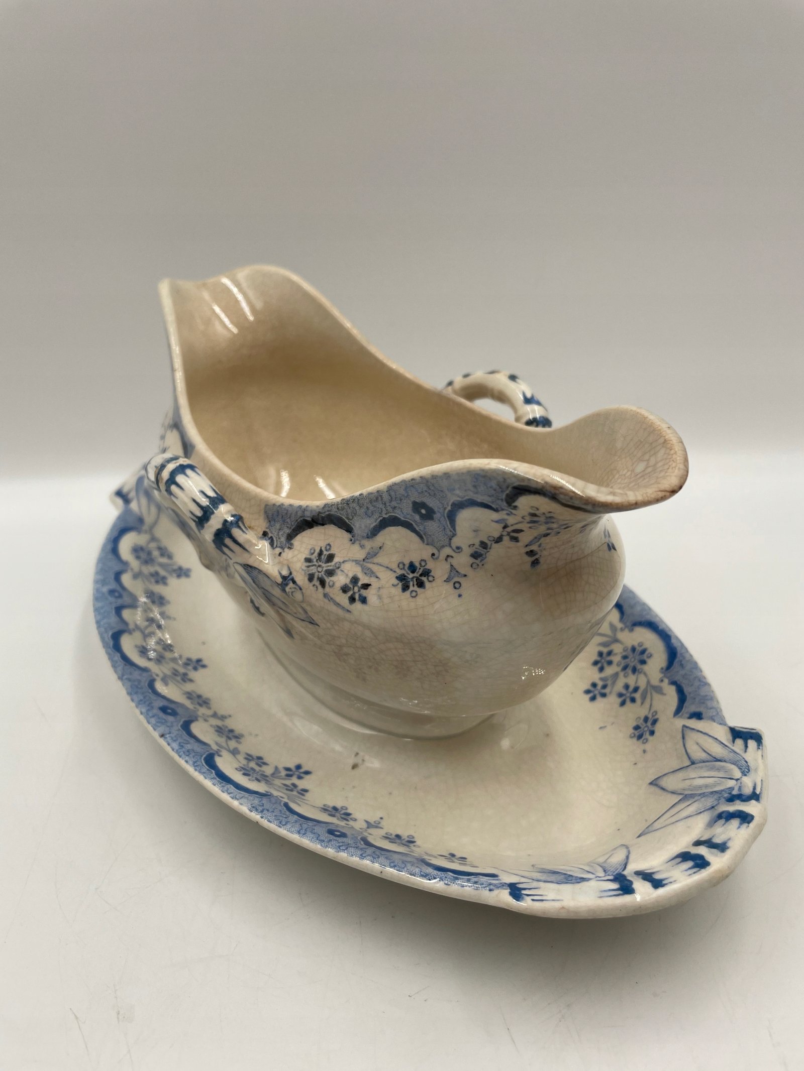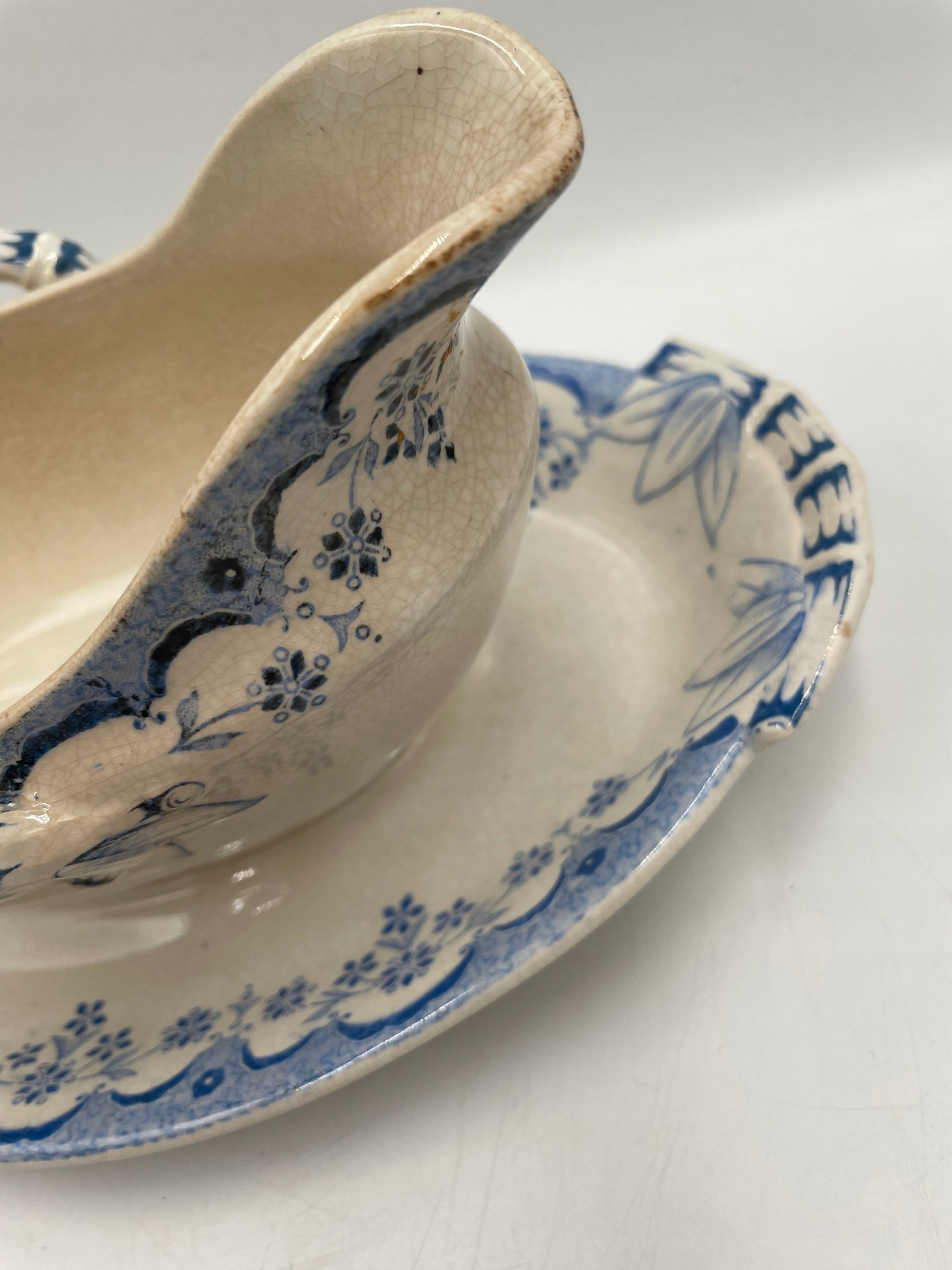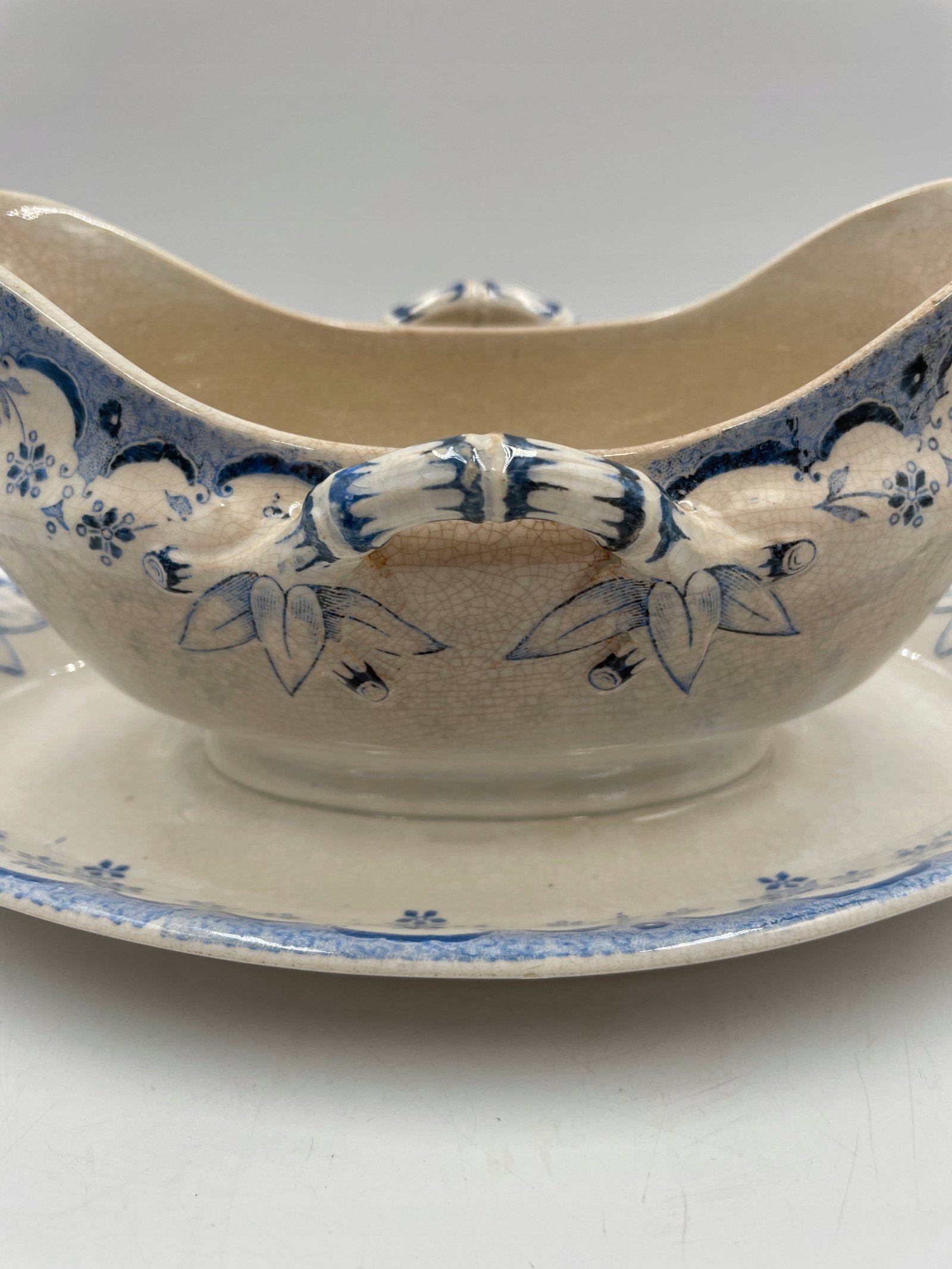 Sosjerka porcelanowa MANILLE z podstawką biało-niebieska vintage