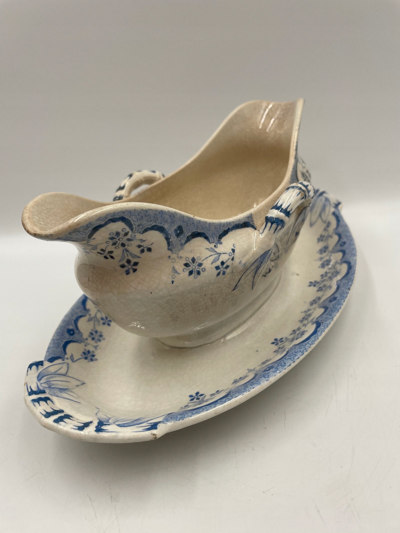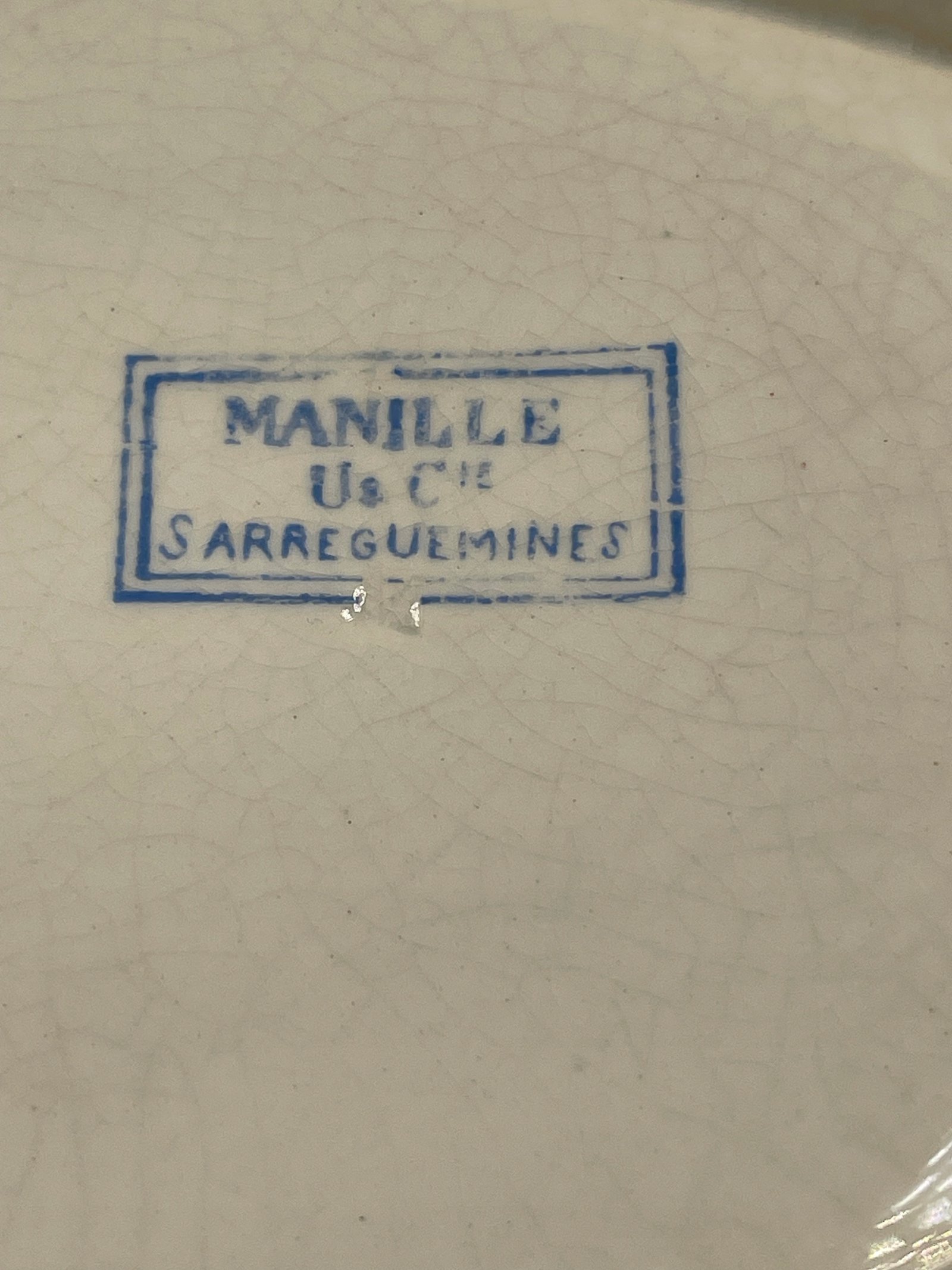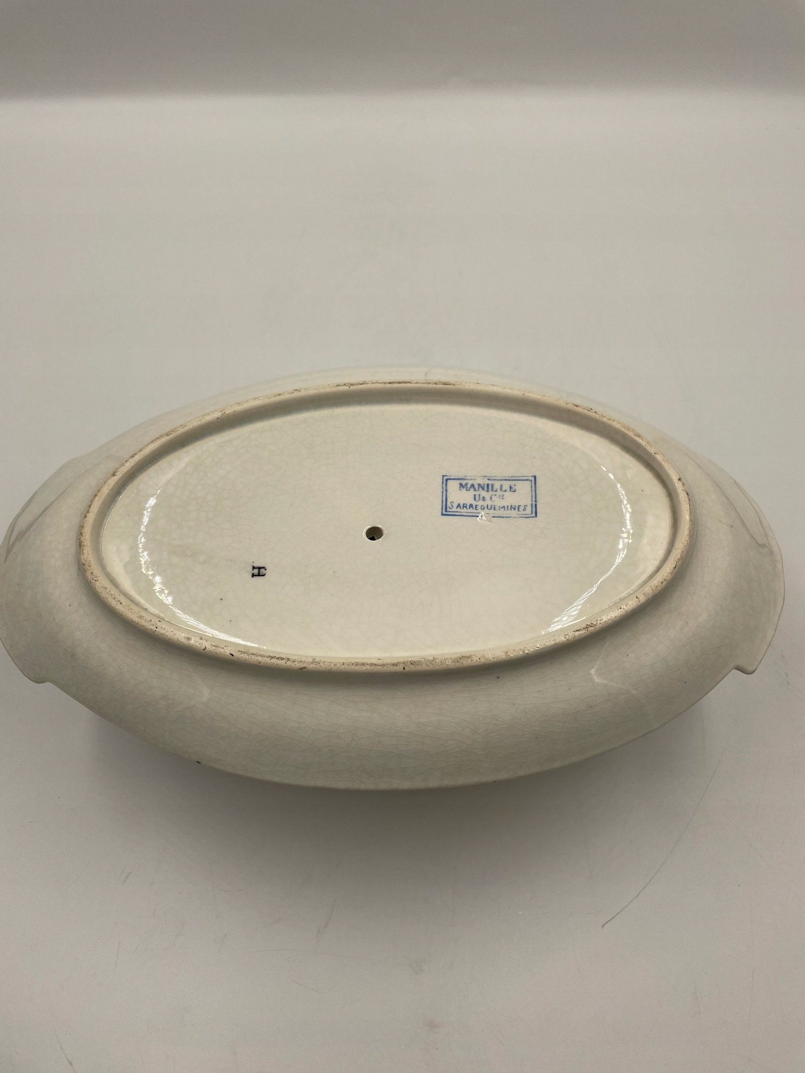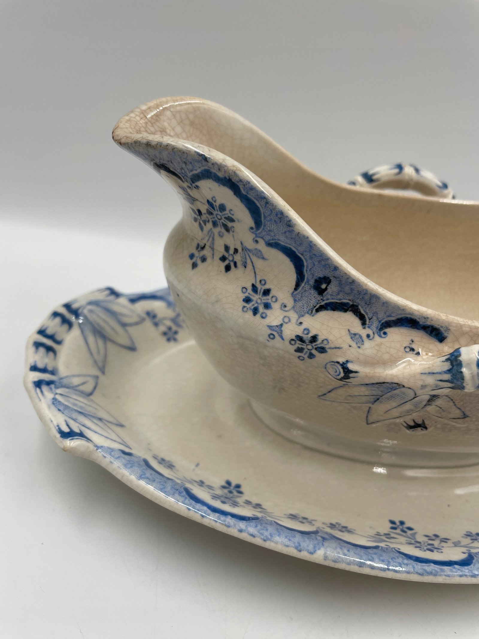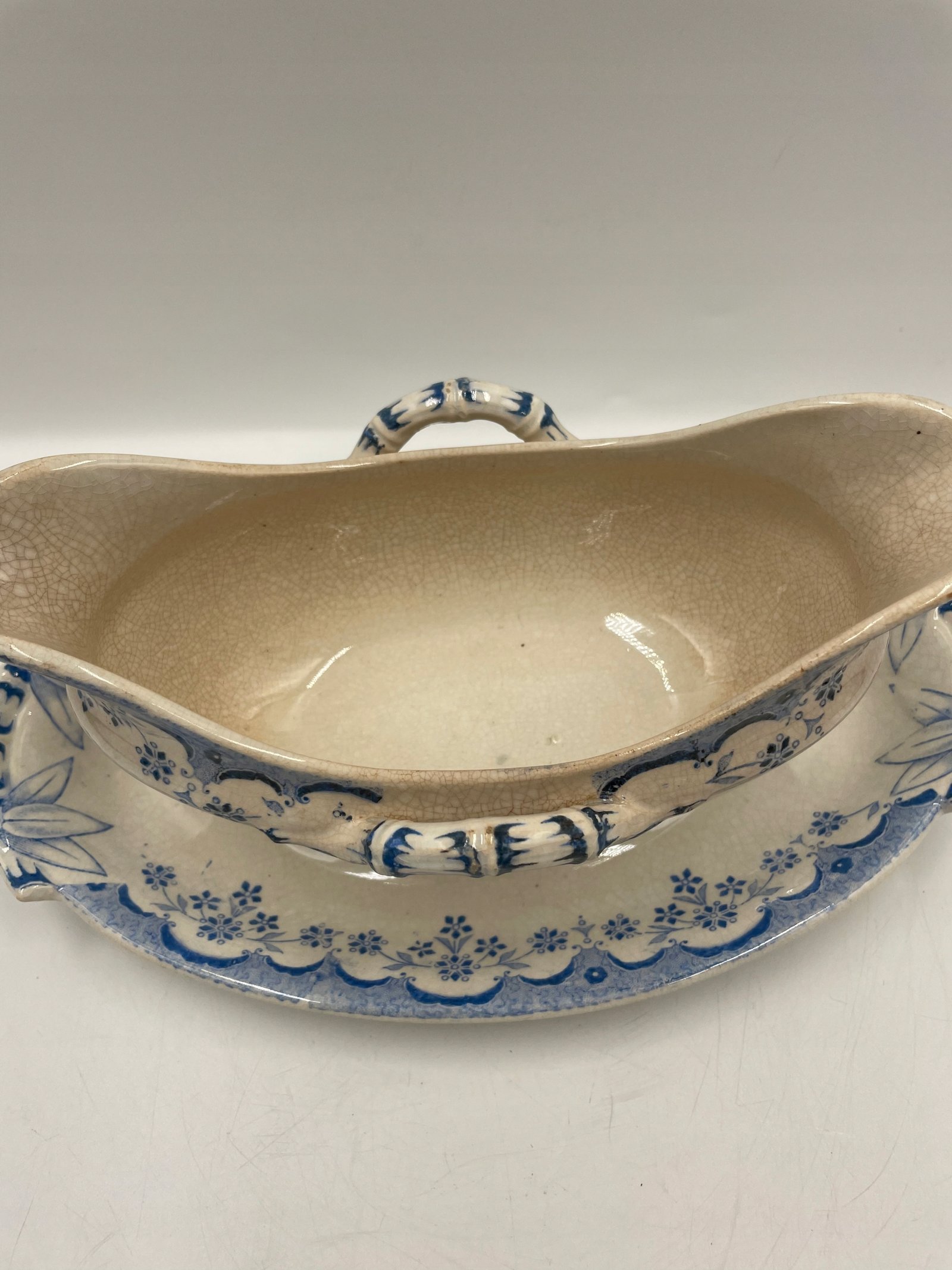 Sosjerka porcelanowa MANILLE z podstawką biało-niebieska vintage