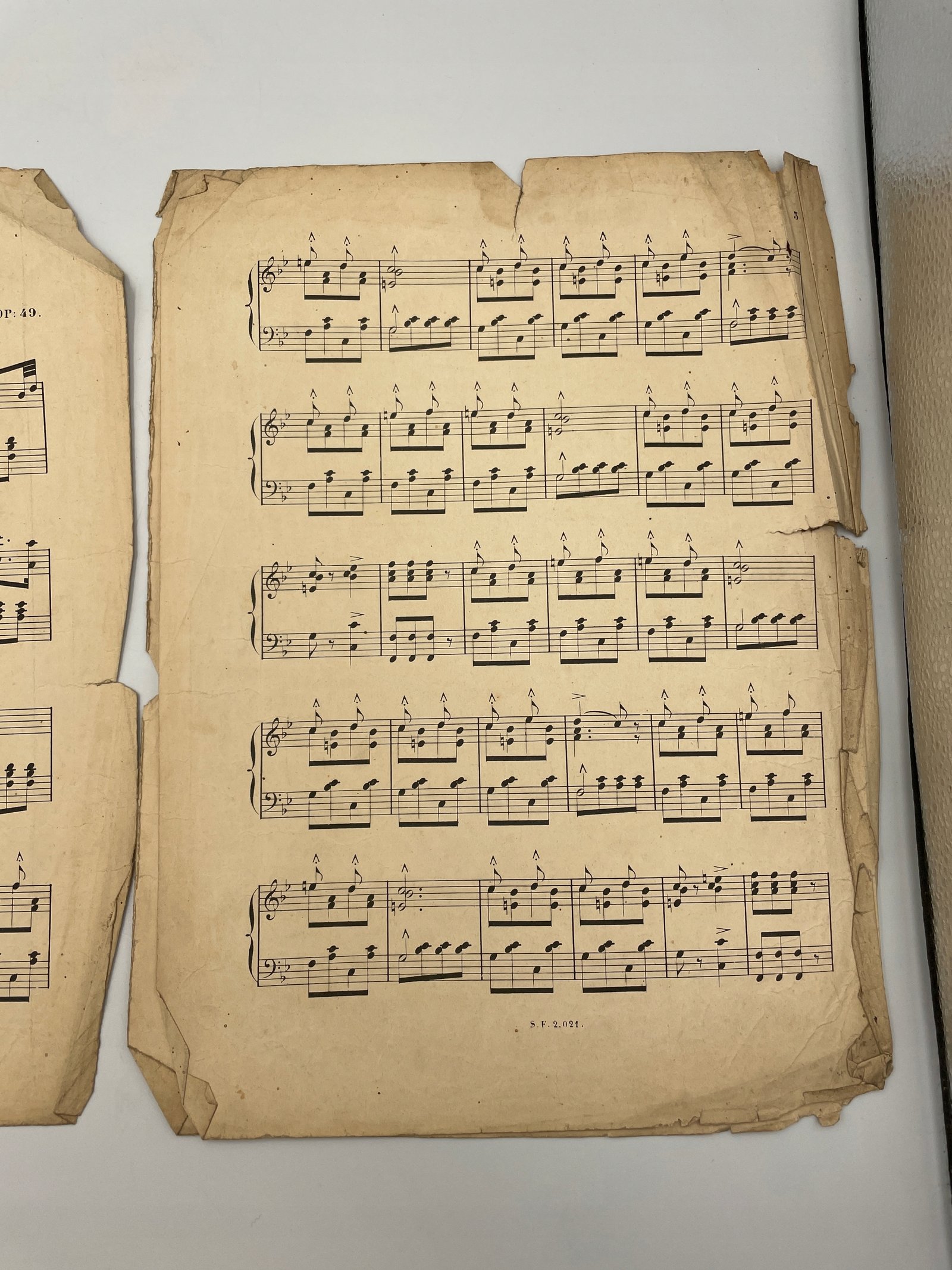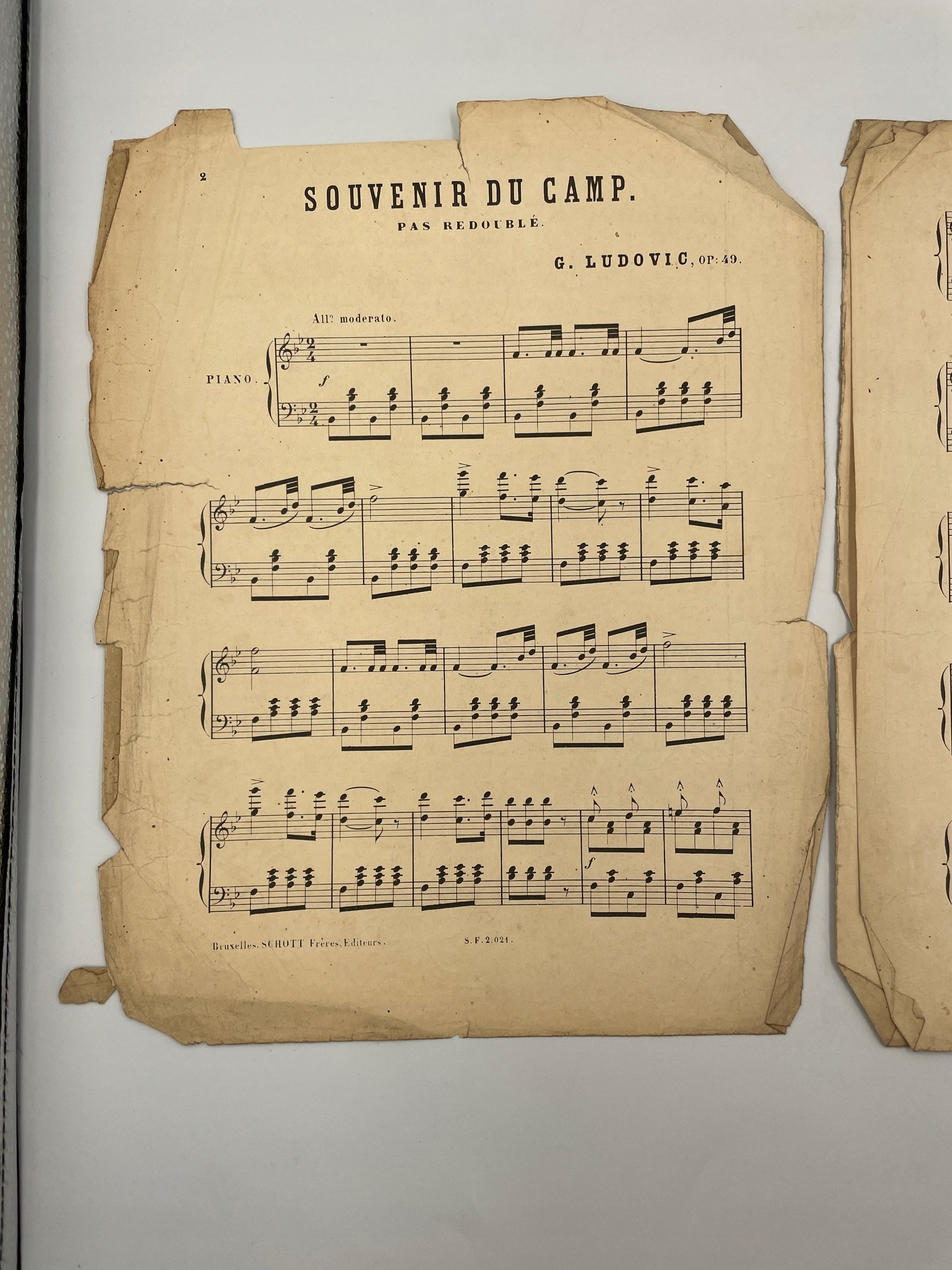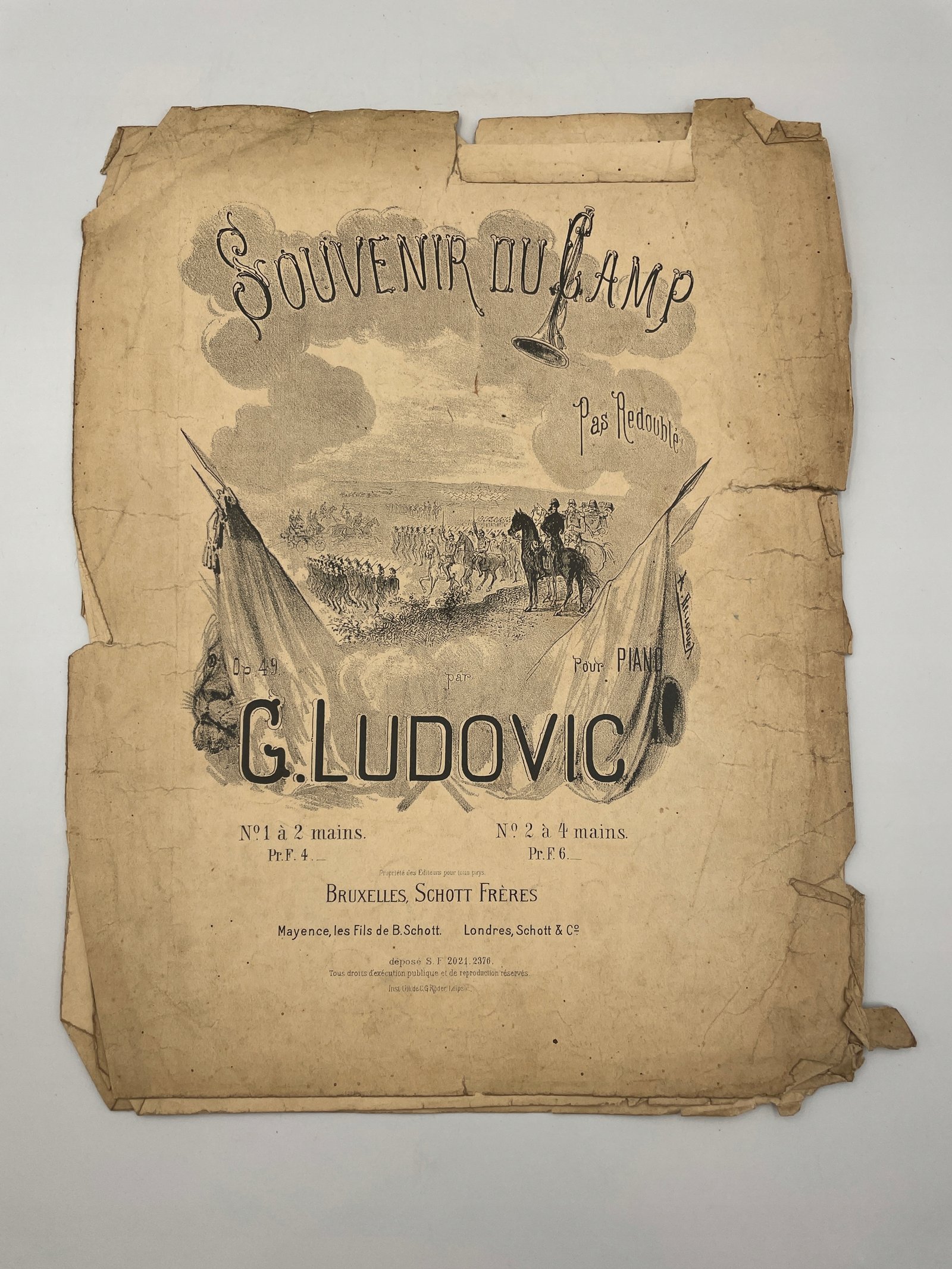 Oryginalne wydanie marszowego utworu Souvenir du Camp op. 49 autorstwa G. Ludovica. Kompozycja typu „pas redoublé” (podwójny krok marszowy) odwołuje się do stylu parad wojskowych i popularna była w XIX wieku jako repertuar fortepianowy do użytku domowego i edukacyjnego.