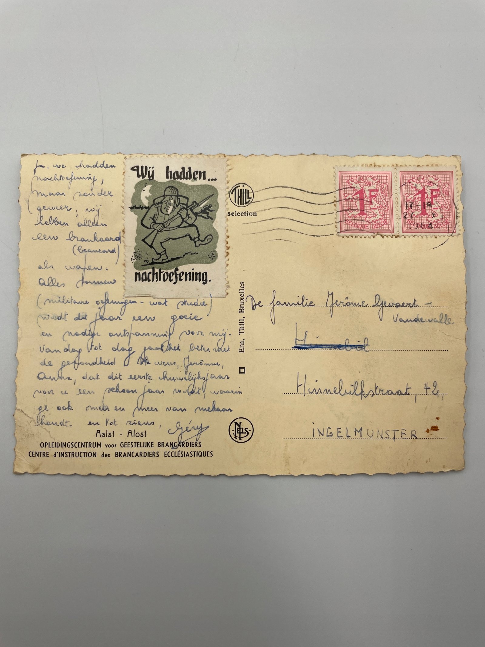 Pocztówka Belgia brama koszar z żołnierzami lata 50. XX w.