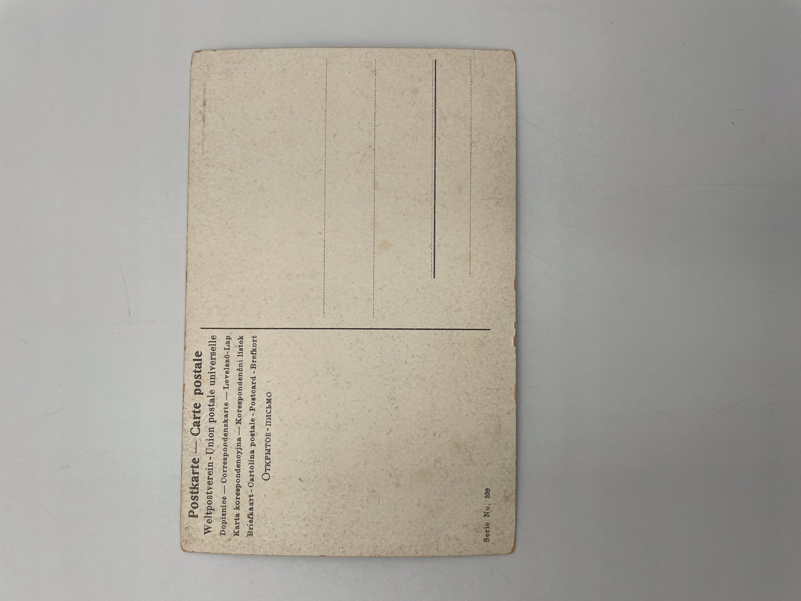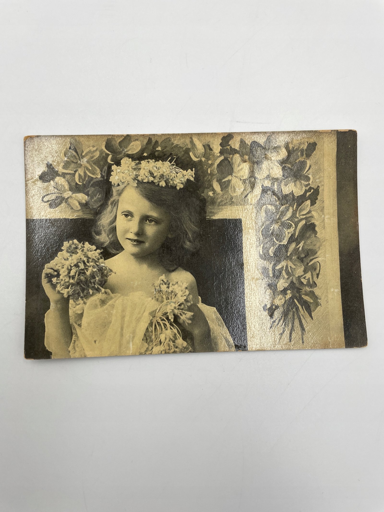 Stara pocztówka Niemcy dziewczynka z kwiatami w oknie 1900
