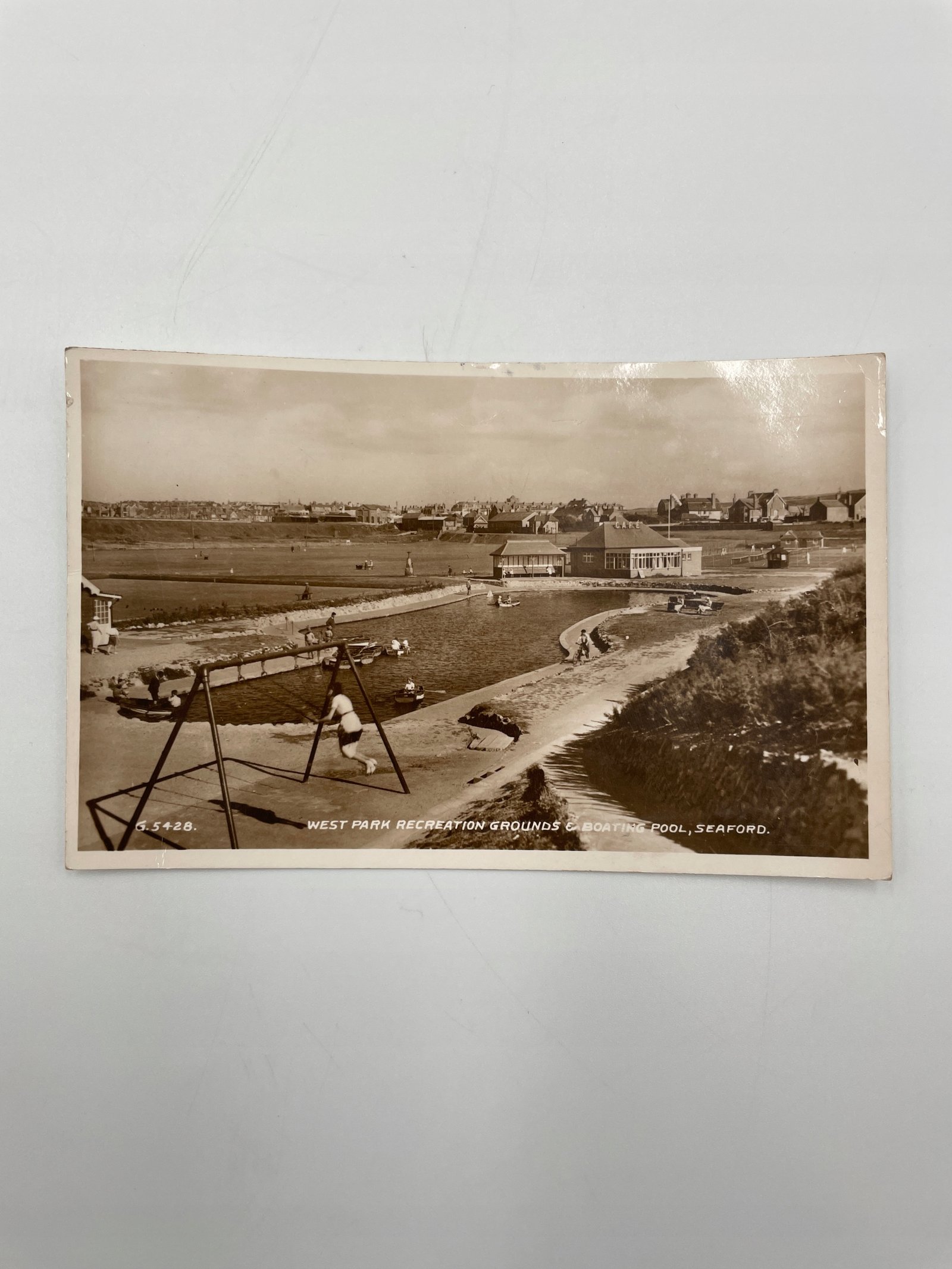 Stara pocztówka West Park Seaford Anglia huśtawki i basen 1948