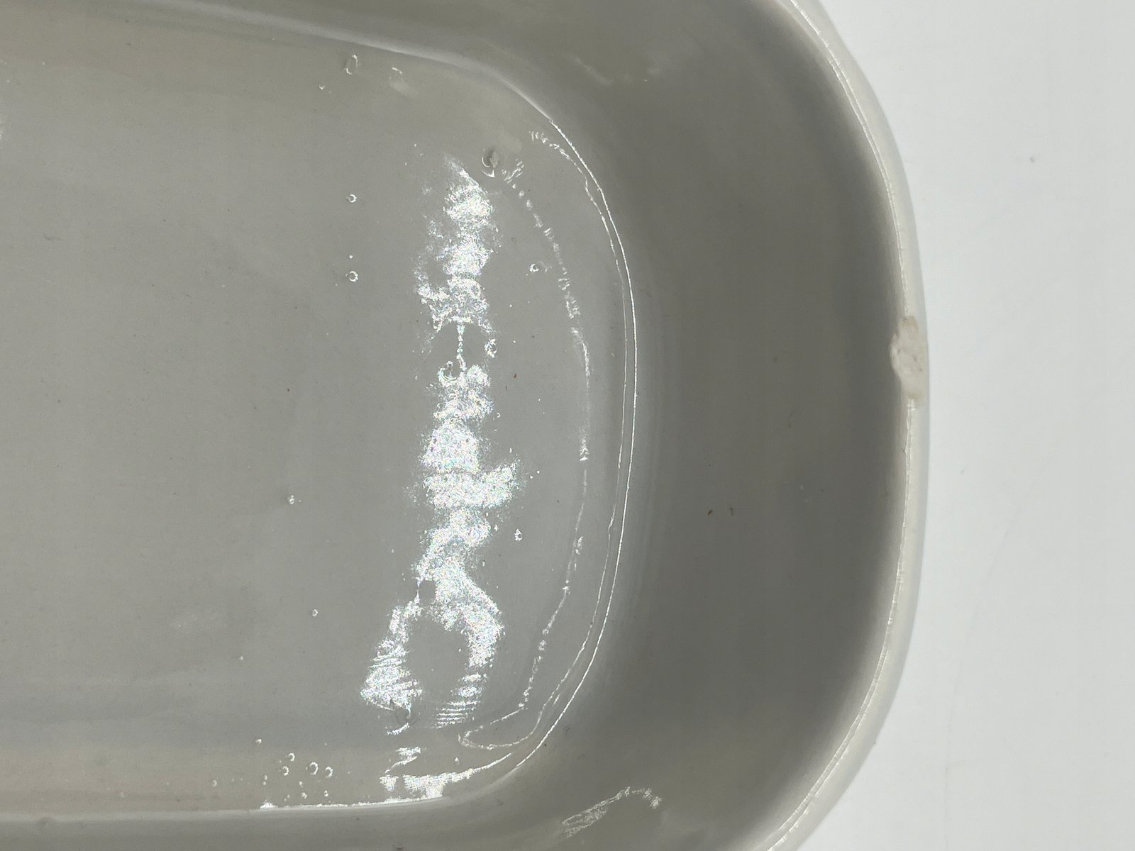 Vintage przedmioty mogą mieć drobne rysy, odpryski, niektóre zabrudzenia, ślady użytkowania i zmiany tekstury spowodowane starzeniem się. Ponieważ stopień zużycia może różnić się w zależności od indywidualnego postrzegania, prosimy o zrozumienie i akceptację cech starych przedmiotów. Będziemy zadowoleni, jeśli będziesz mógł/mogła cieszyć się niepowtarzalnym urokiem starych, dobrych przedmiotów.