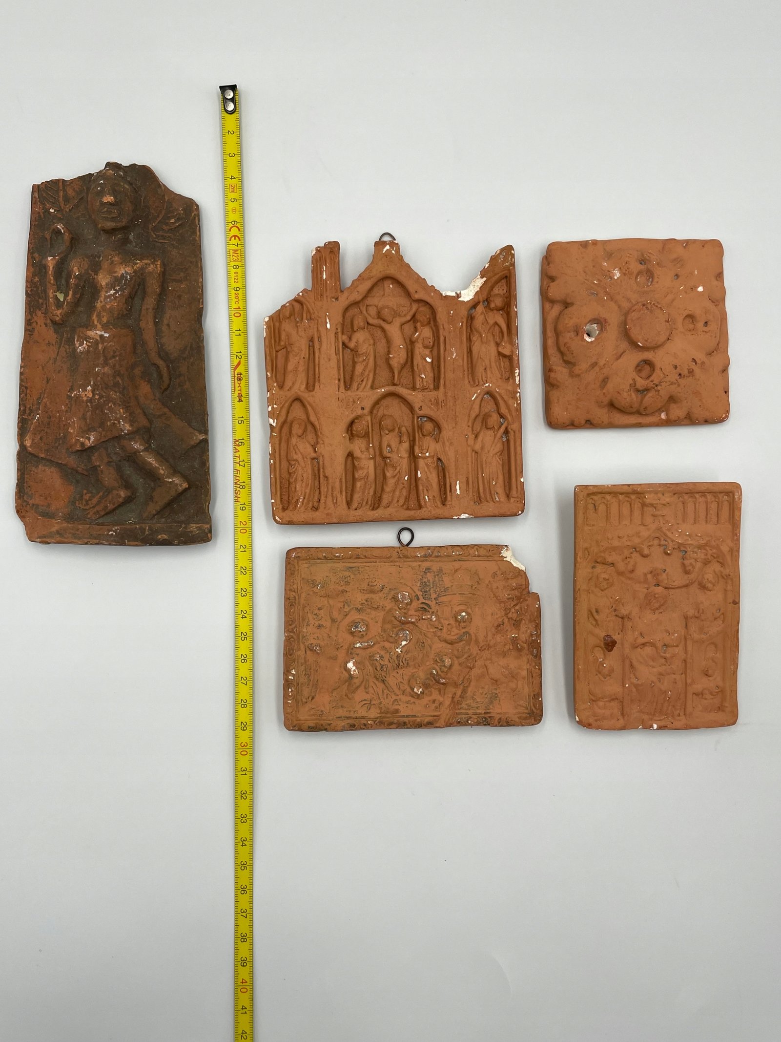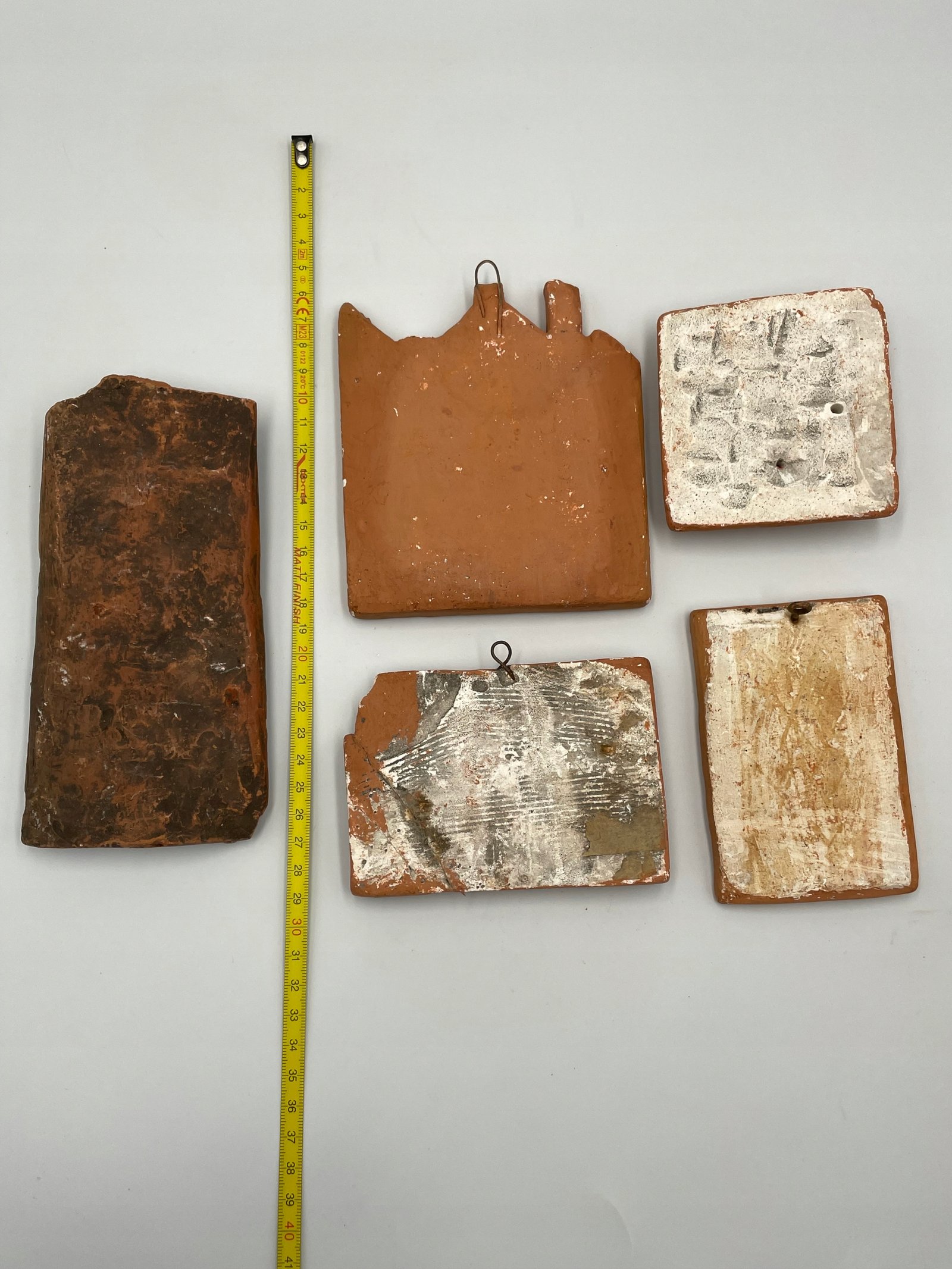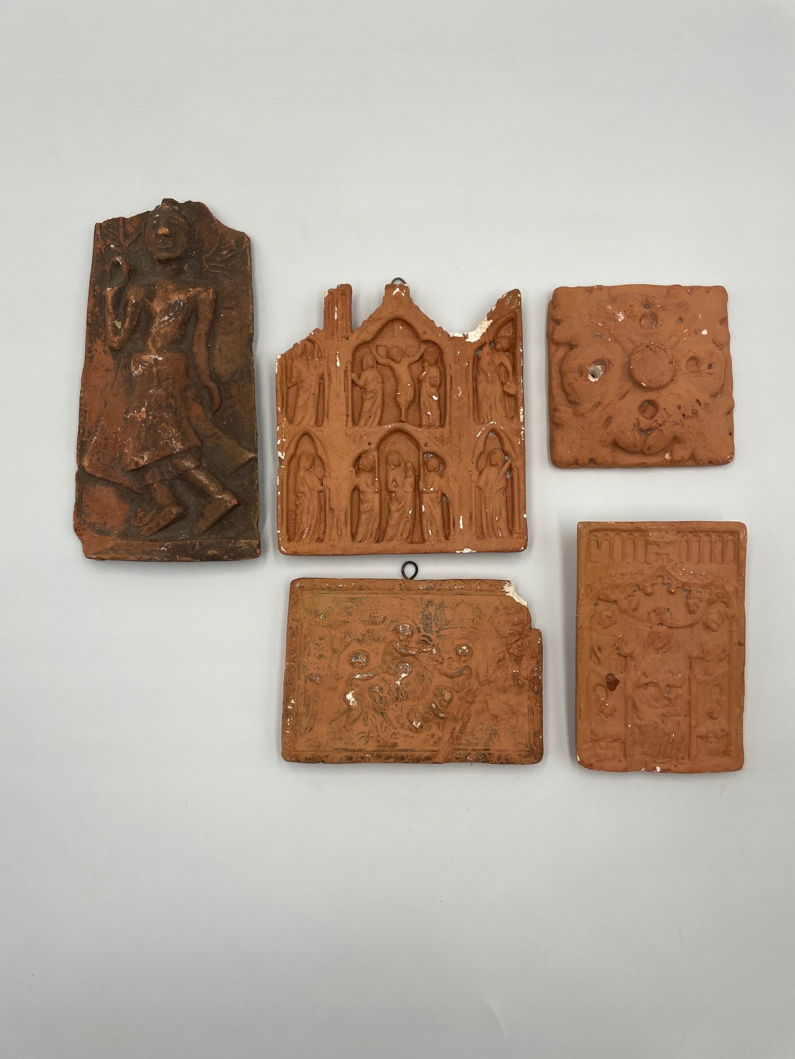 Płytki gliniane dekoracyjne reliefowe zestaw 5 szt vintage