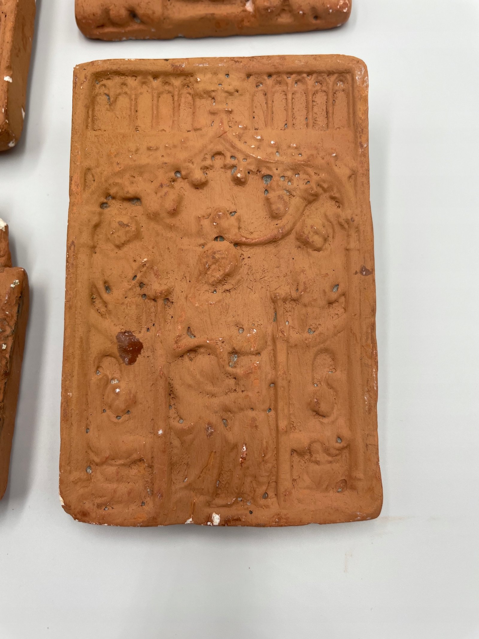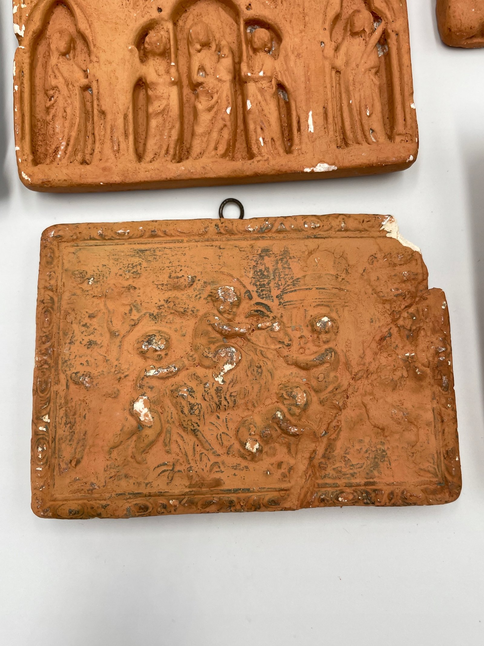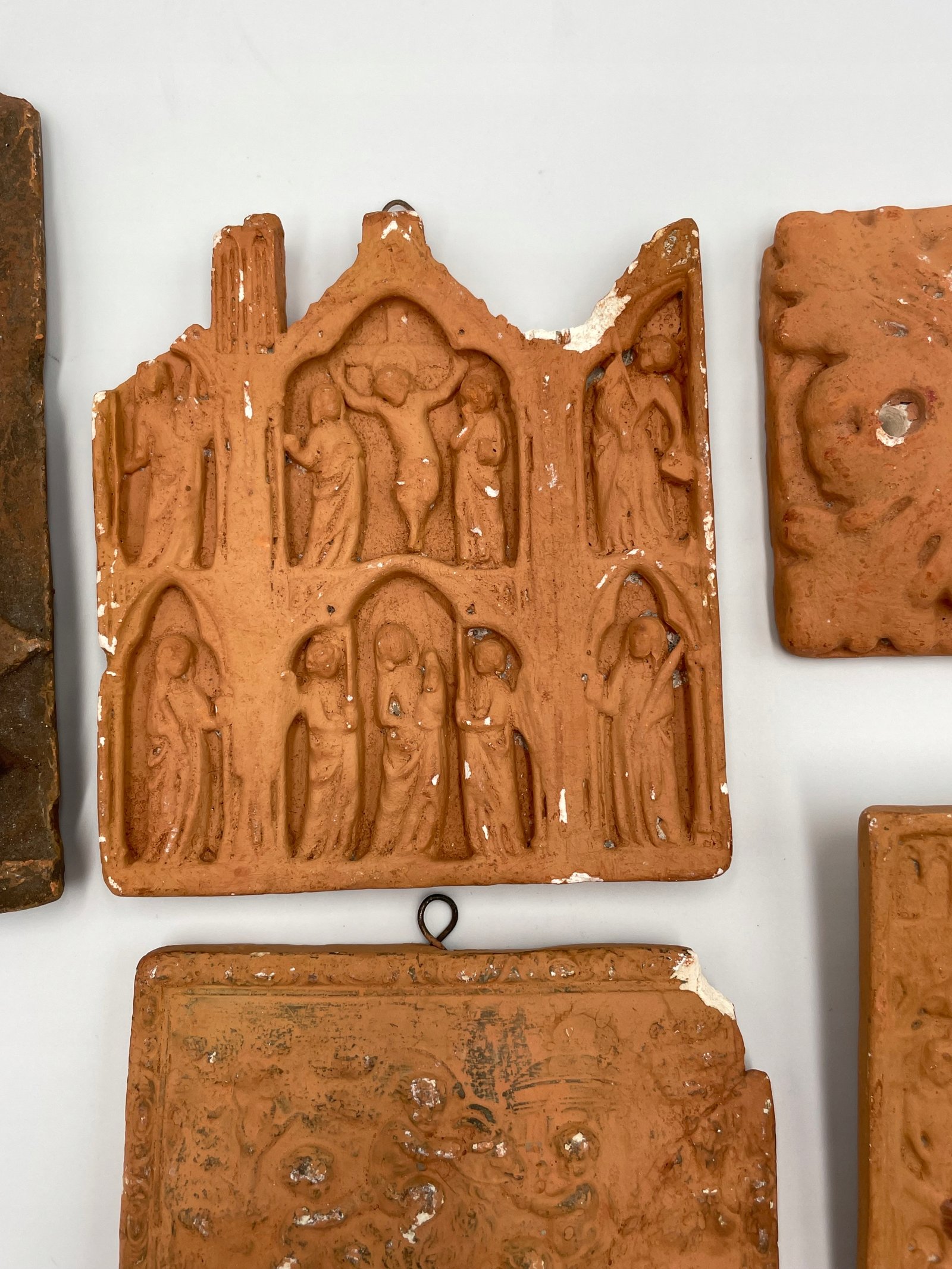 Płytki gliniane dekoracyjne reliefowe zestaw 5 szt vintage