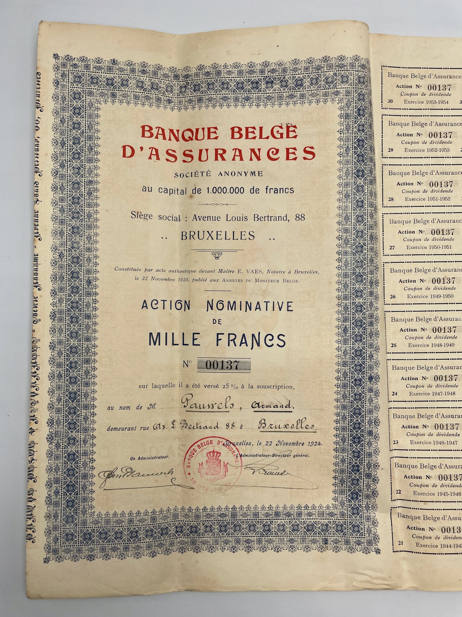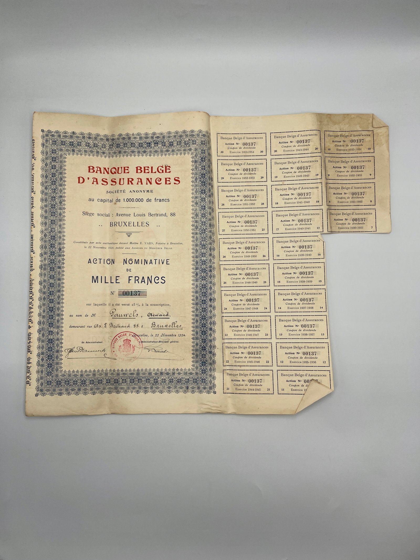 Stary dokument Akcja Bruksela 1924