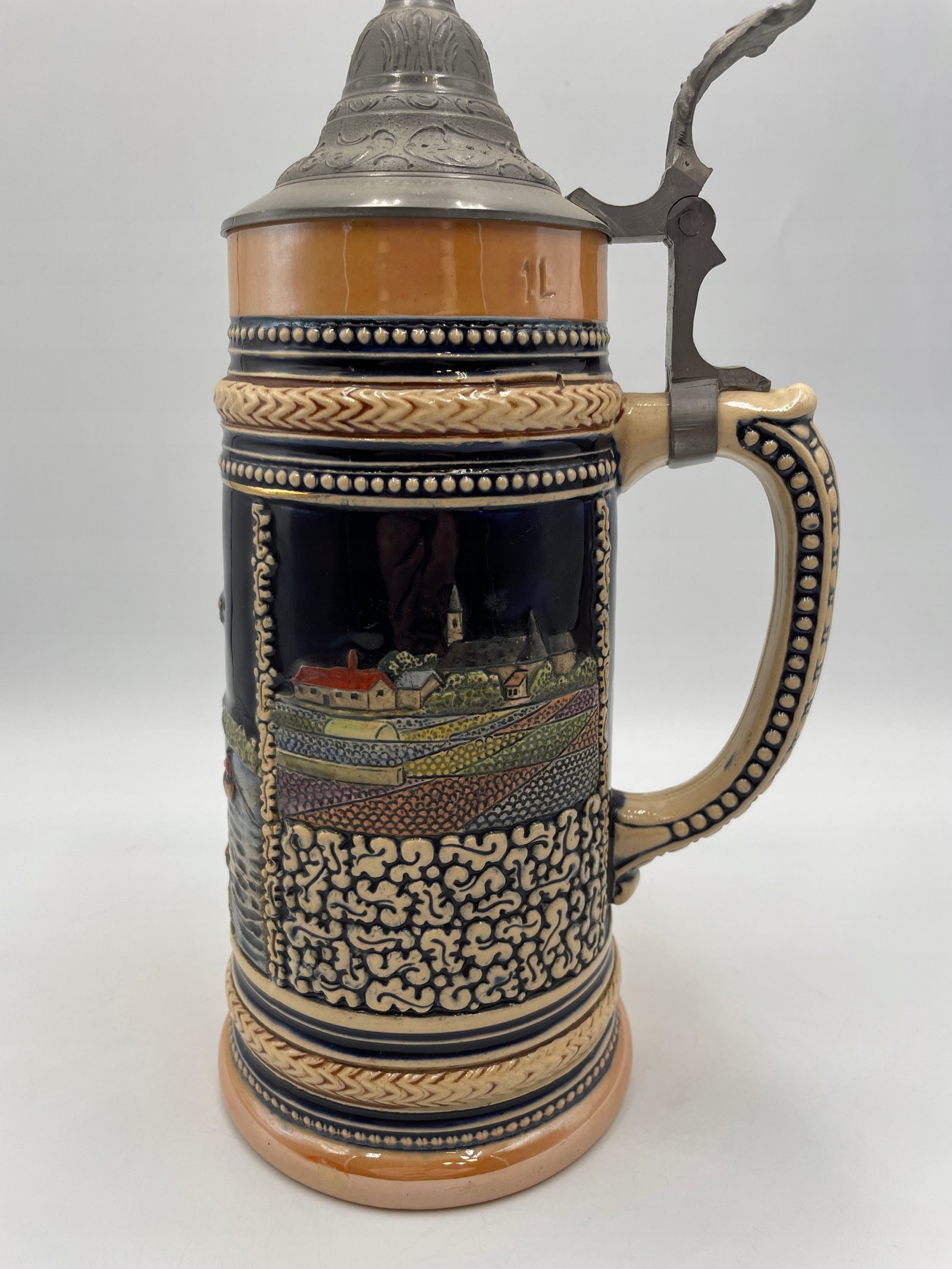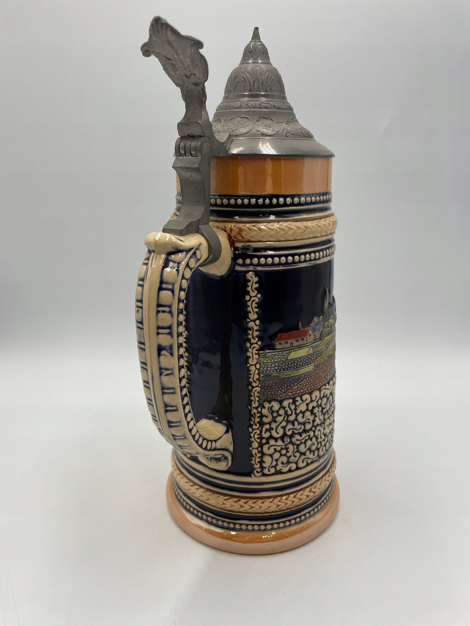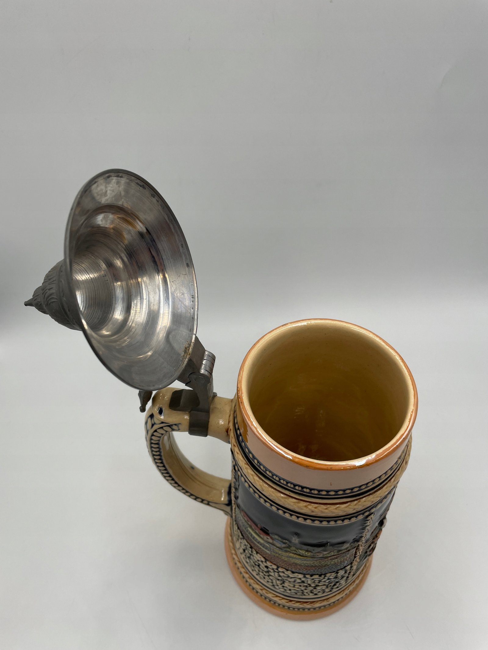 Duży ceramiczny kufel z pokrywką z cynku Dieb Blaue Donau W