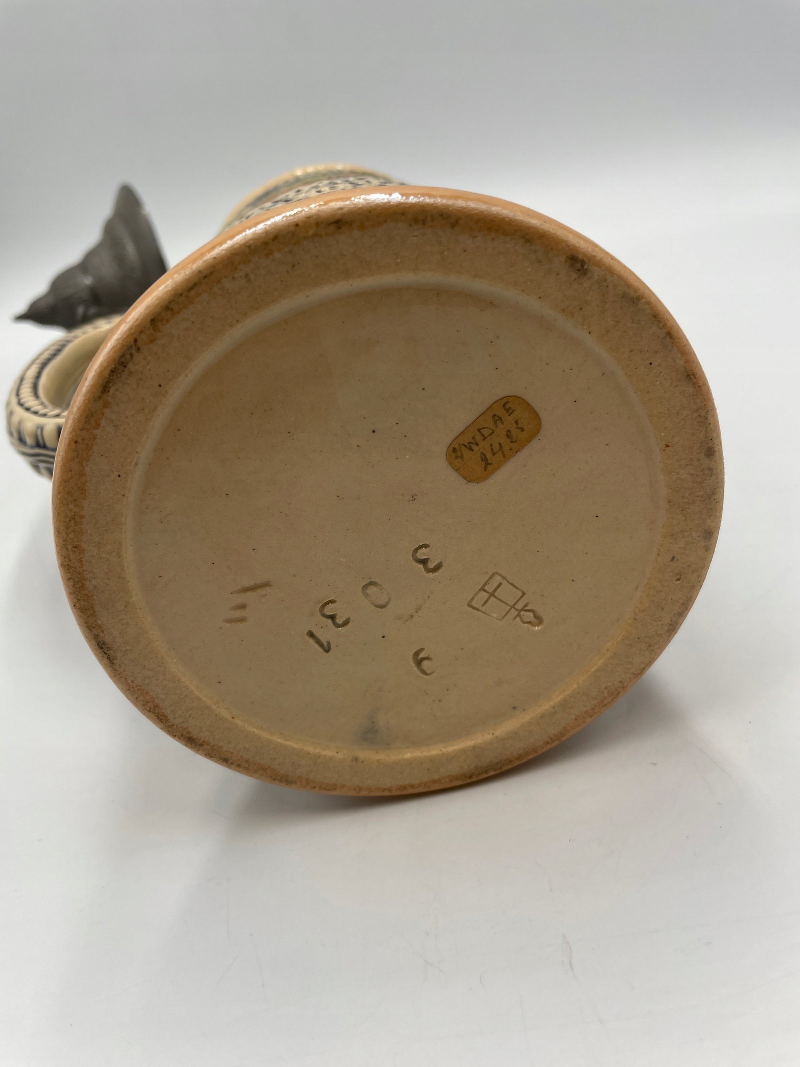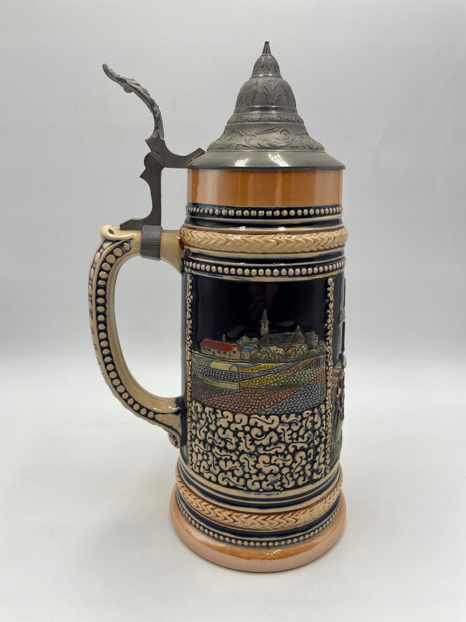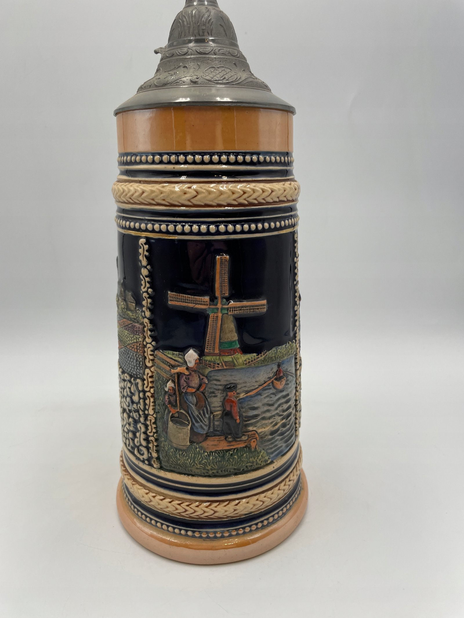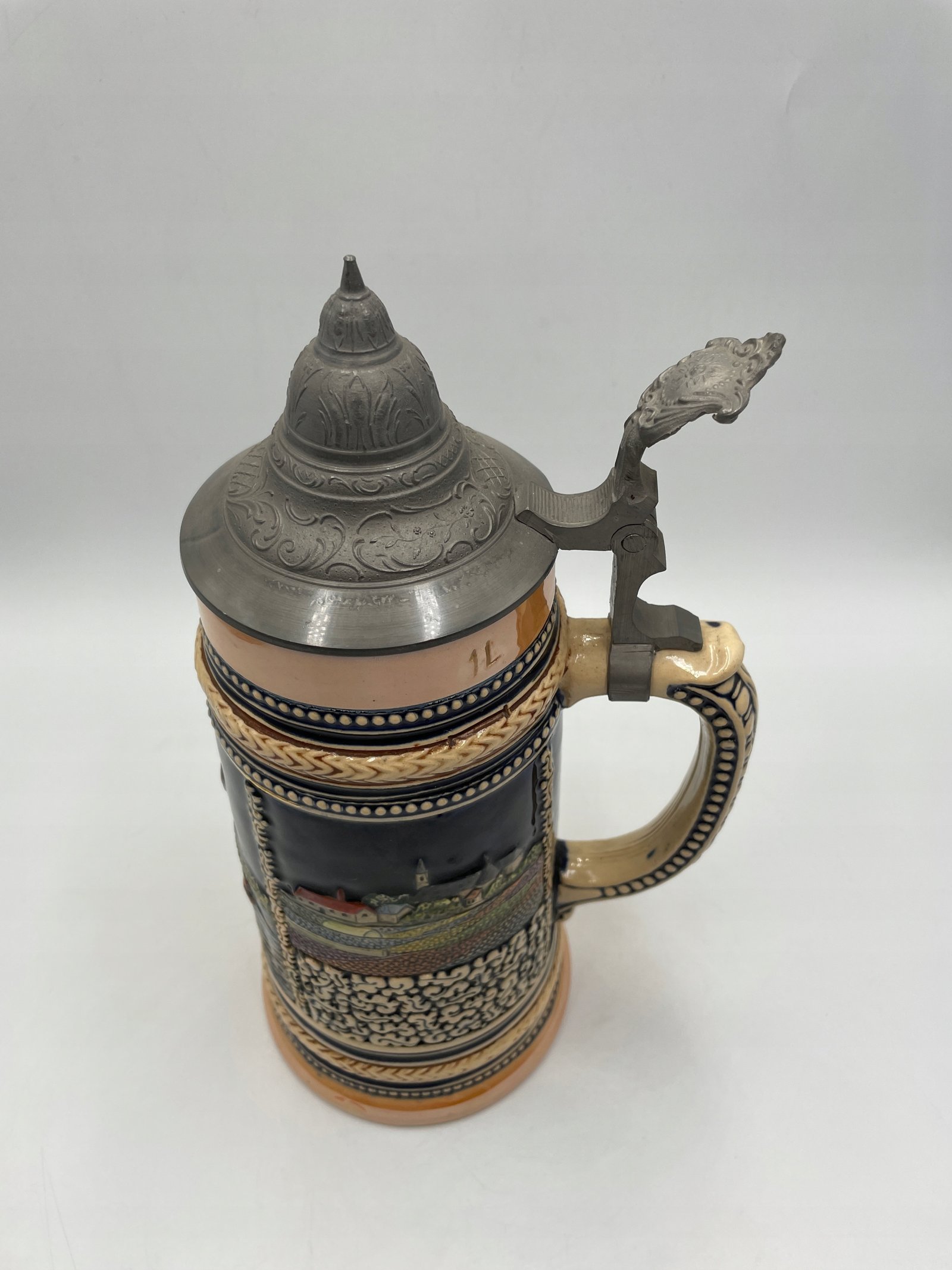 Duży ceramiczny kufel z pokrywką z cynku Dieb Blaue Donau W