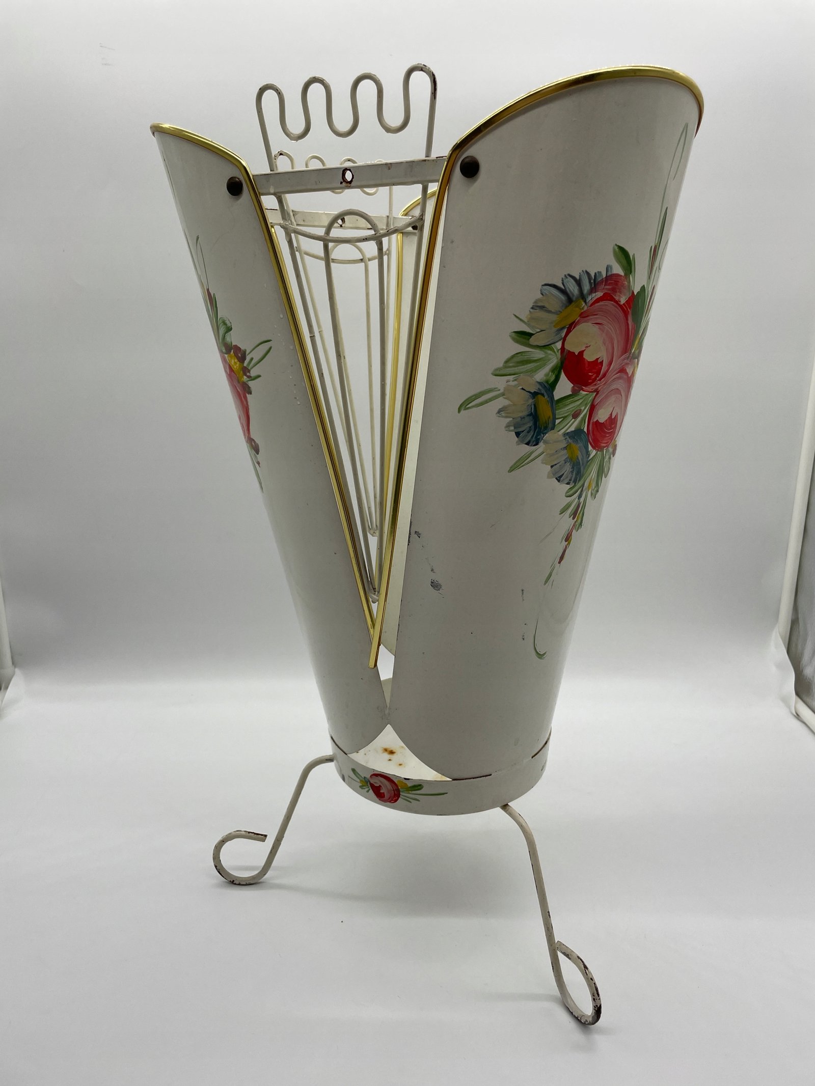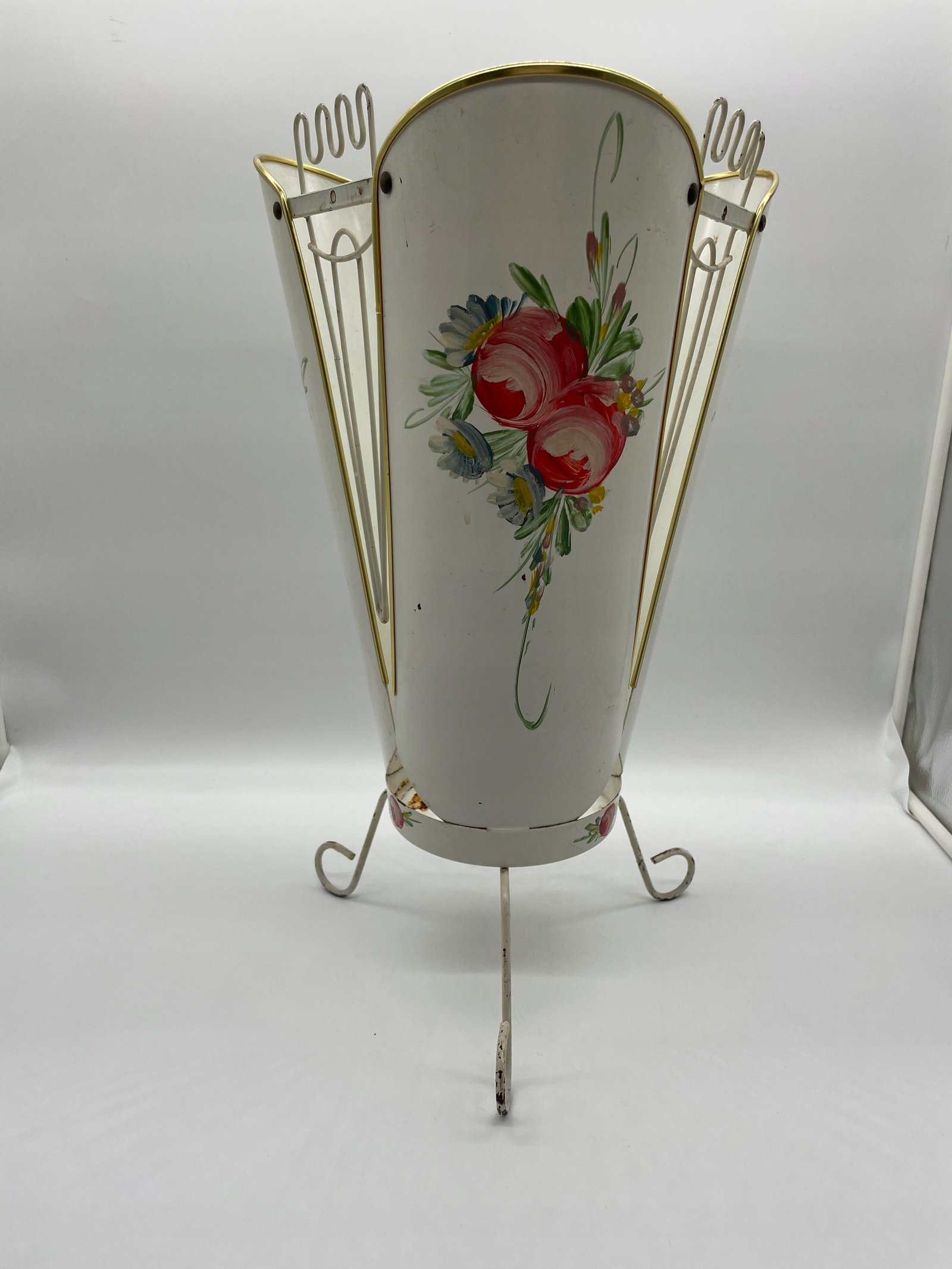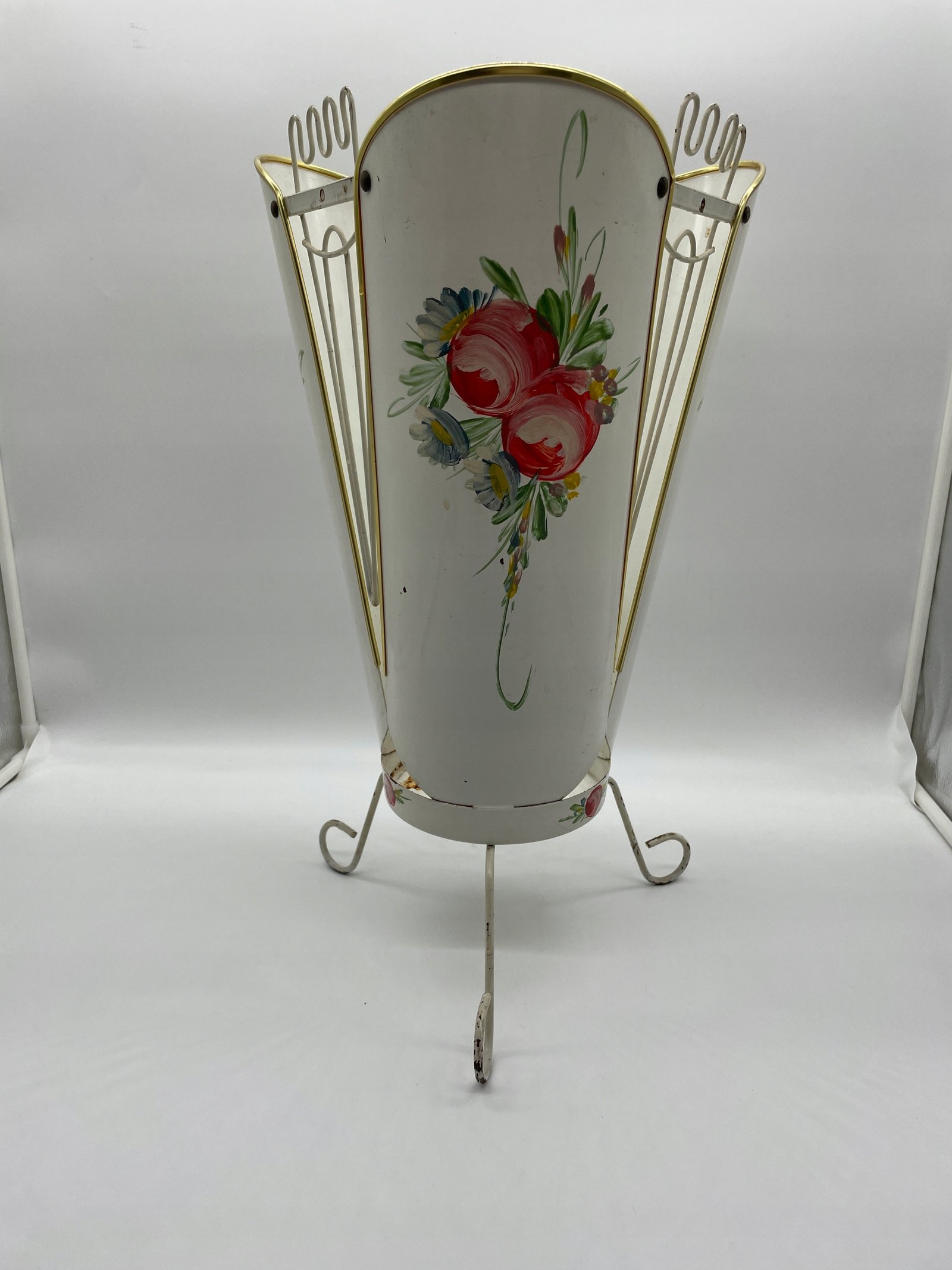 Stojak na parasole metalowy z ręcznym malowaniem Francja lata 50.