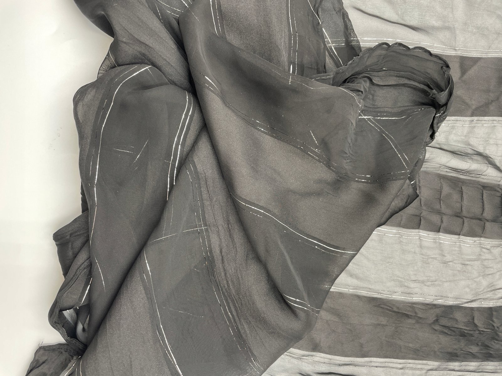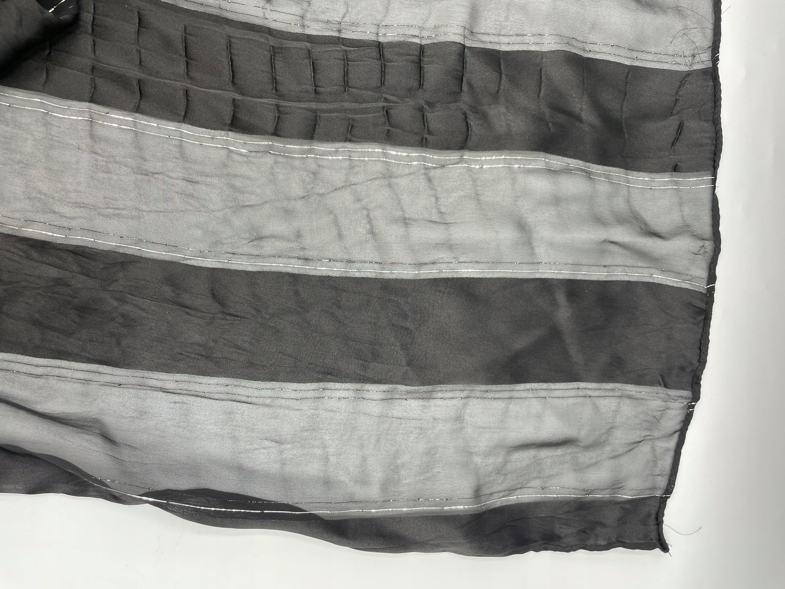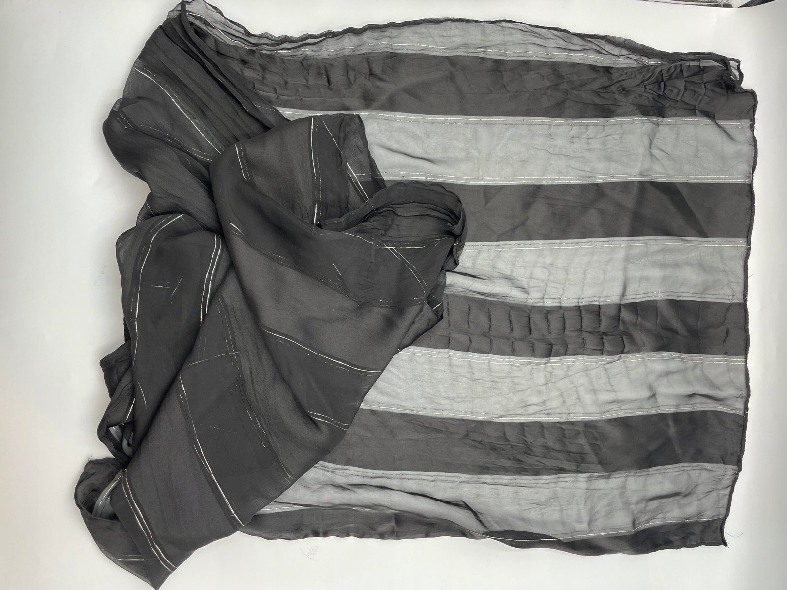 Szal czarny przezroczyste pasy lekka tkanina 135×48 cm