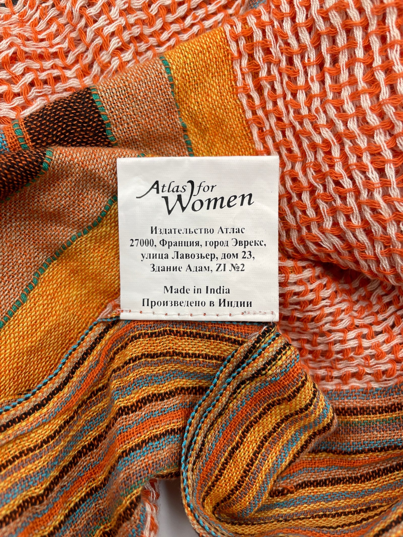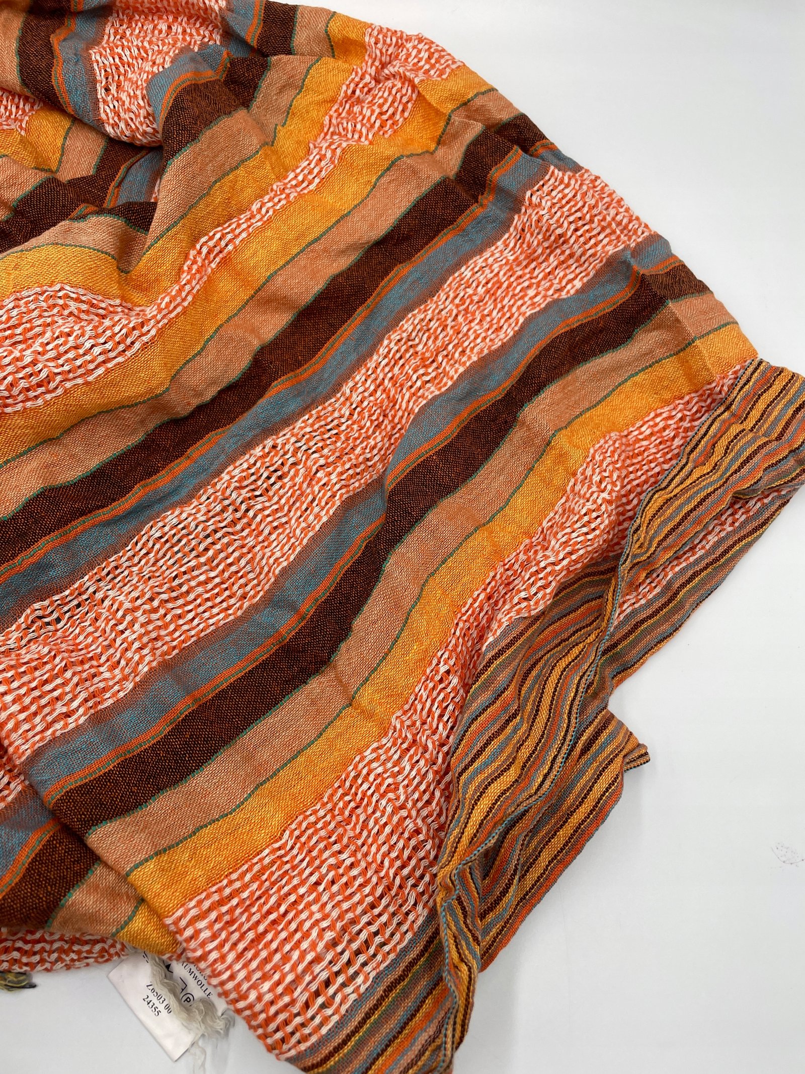 Szal Indie bawełna 100% pasy pomarańczowe 180×65 cm