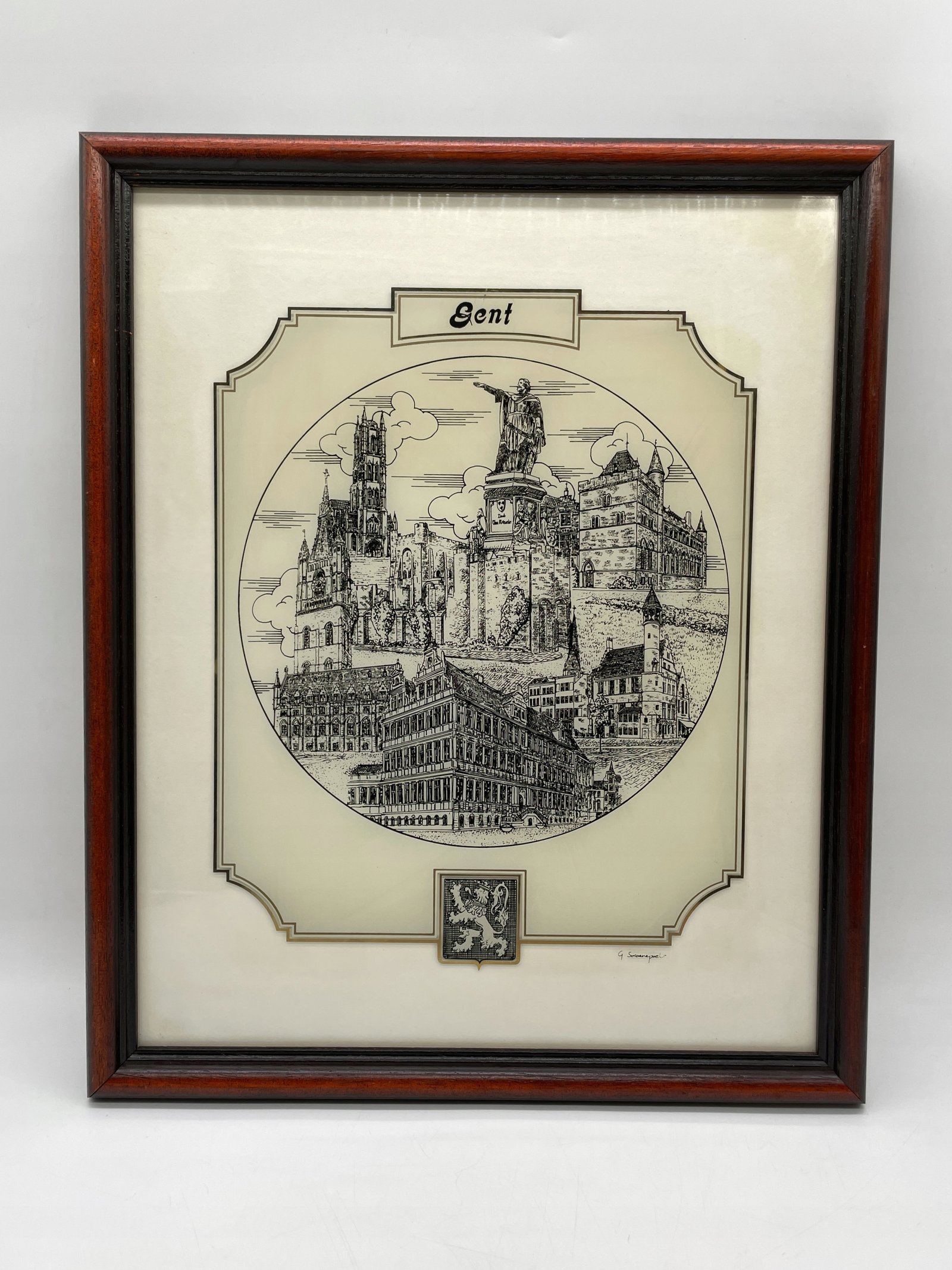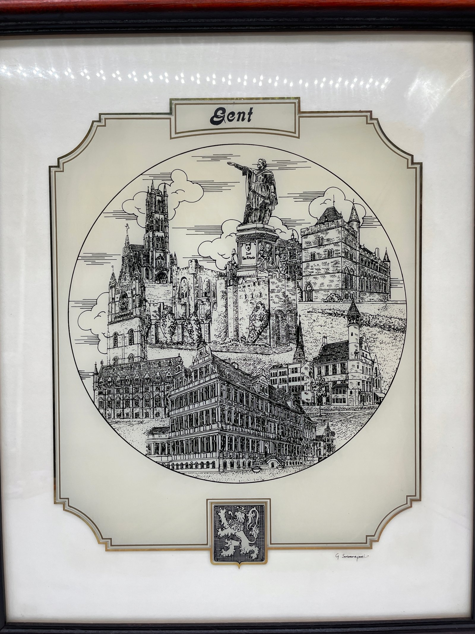 Grawerunek na szkle przedstawiający panoramę miasta Gandawa został wykonany ręcznie przez artystę Gerarda Swaenepoela. Praca powstała w belgijskiej pracowni Decor Art według dawnych technik. Obramowanie wykonano ze złota 18-karatowego, wypalanego w temperaturze powyżej 540°C. Na odwrocie znajduje się certyfikat autentyczności z podpisami artysty i przedstawiciela pracowni.