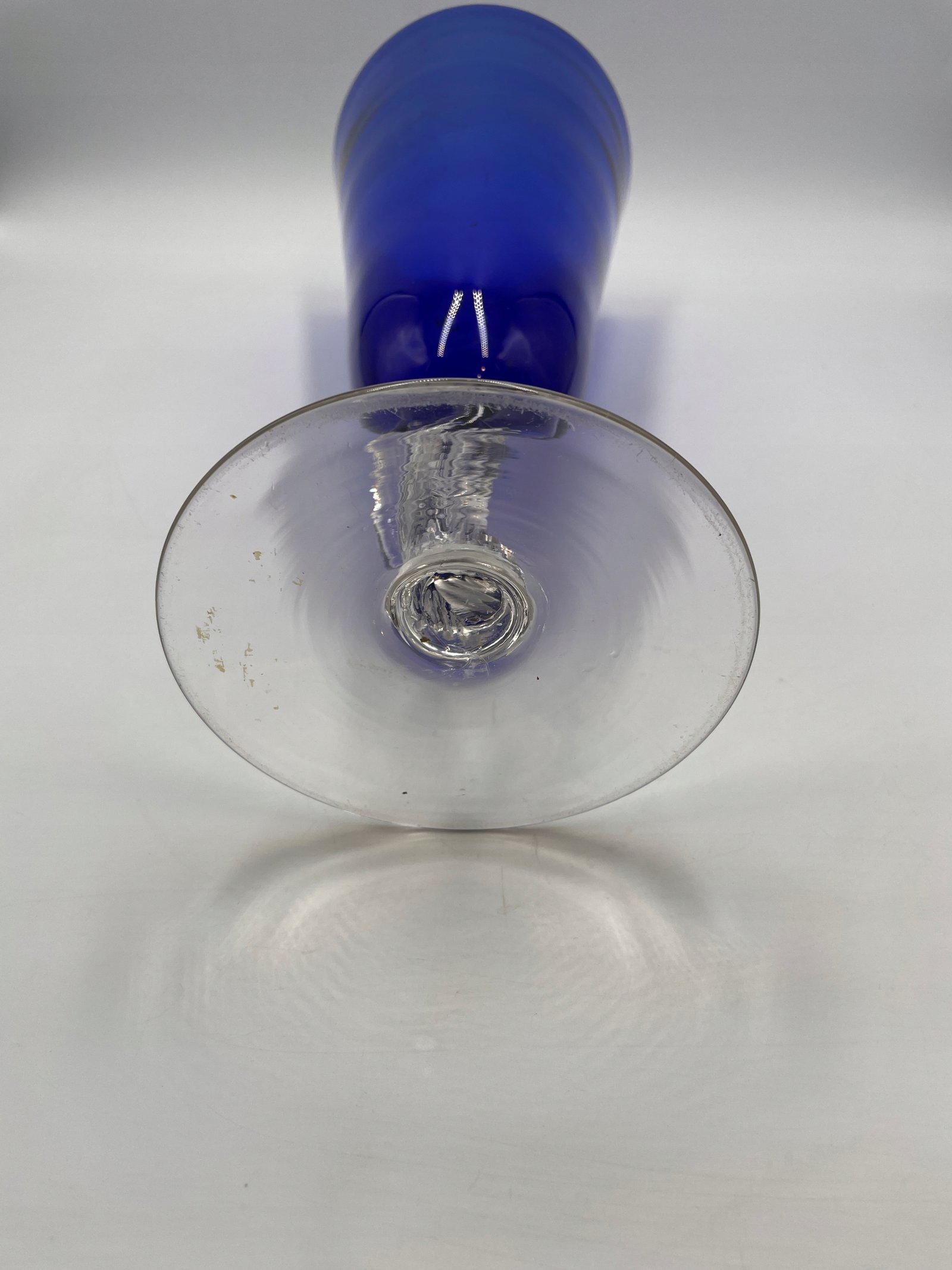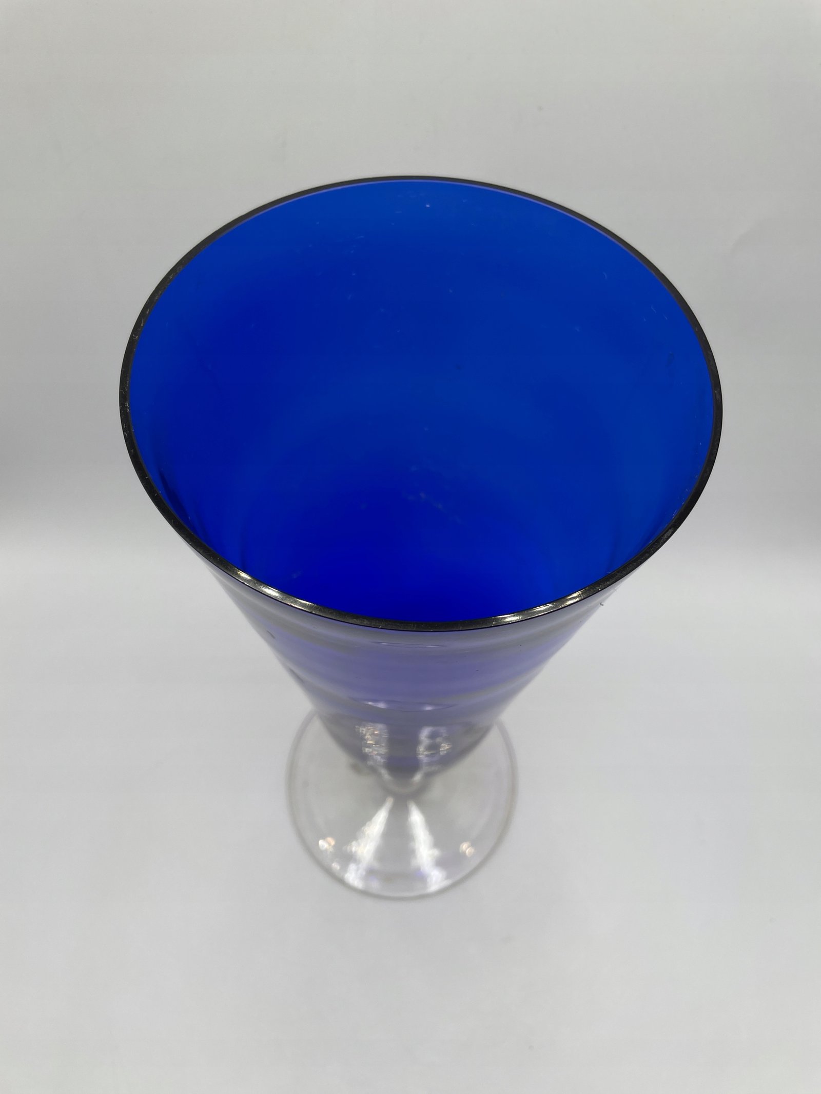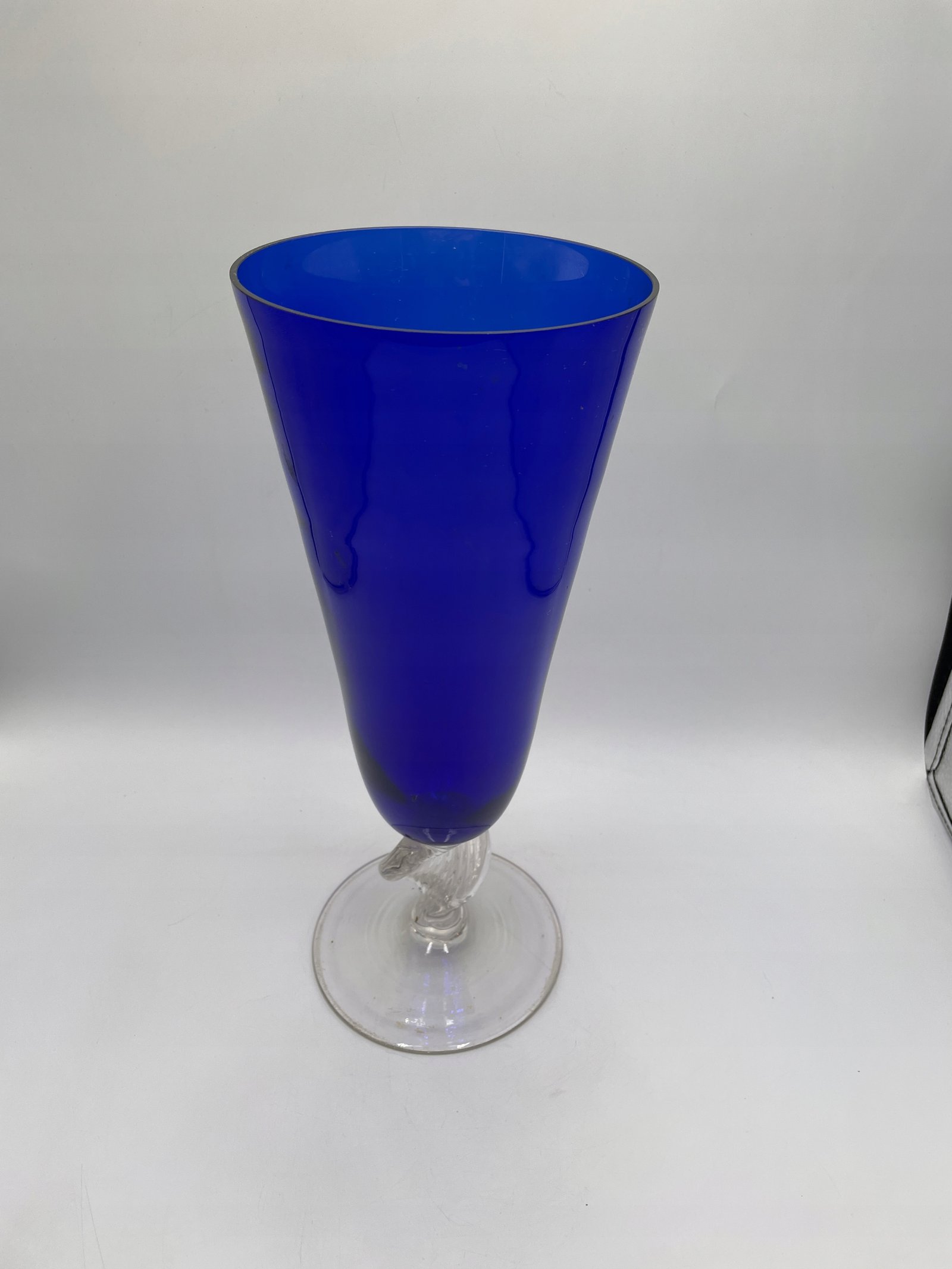 Szklany wazon o kobaltowej barwie z przezroczystą podstawą