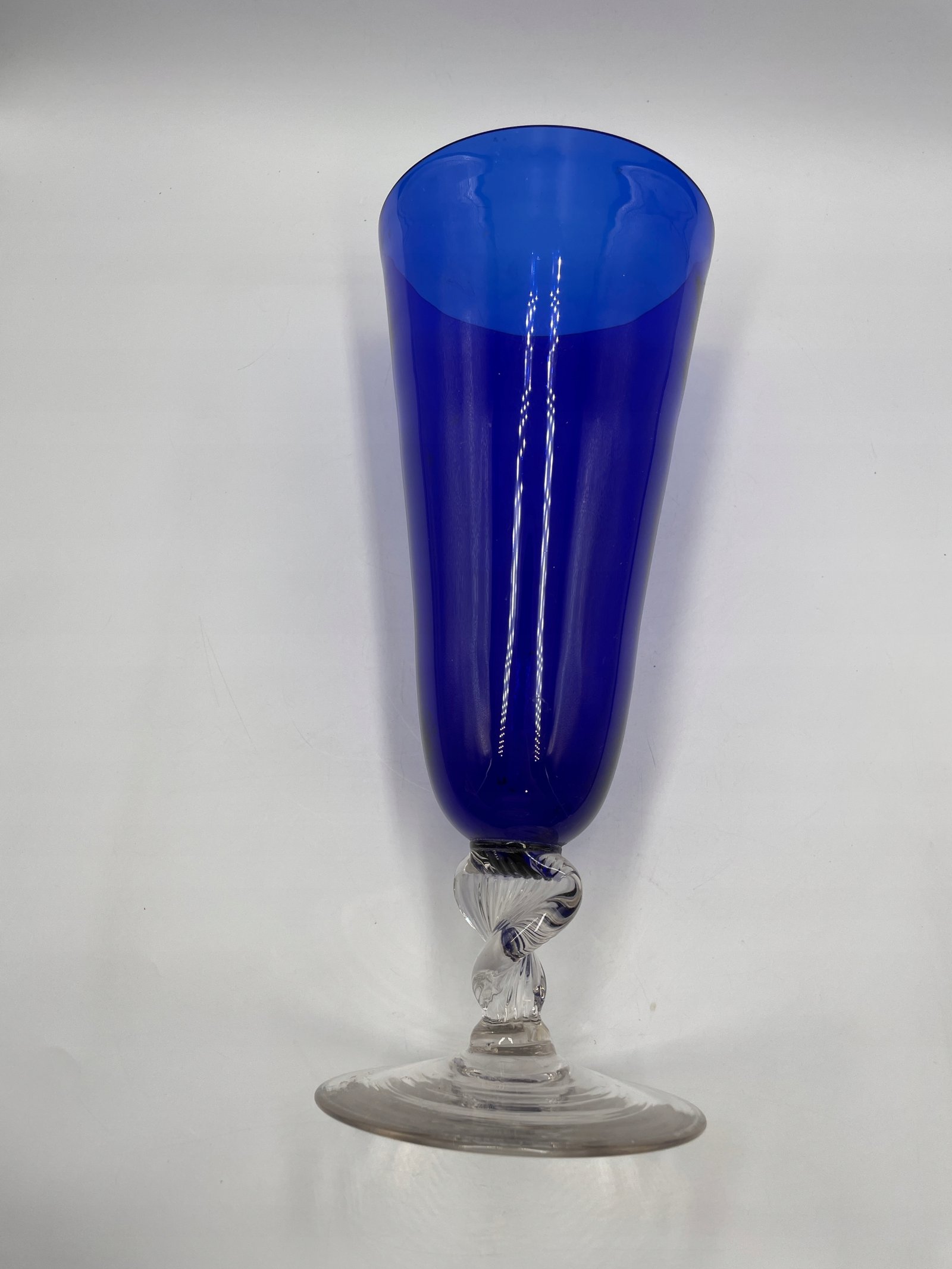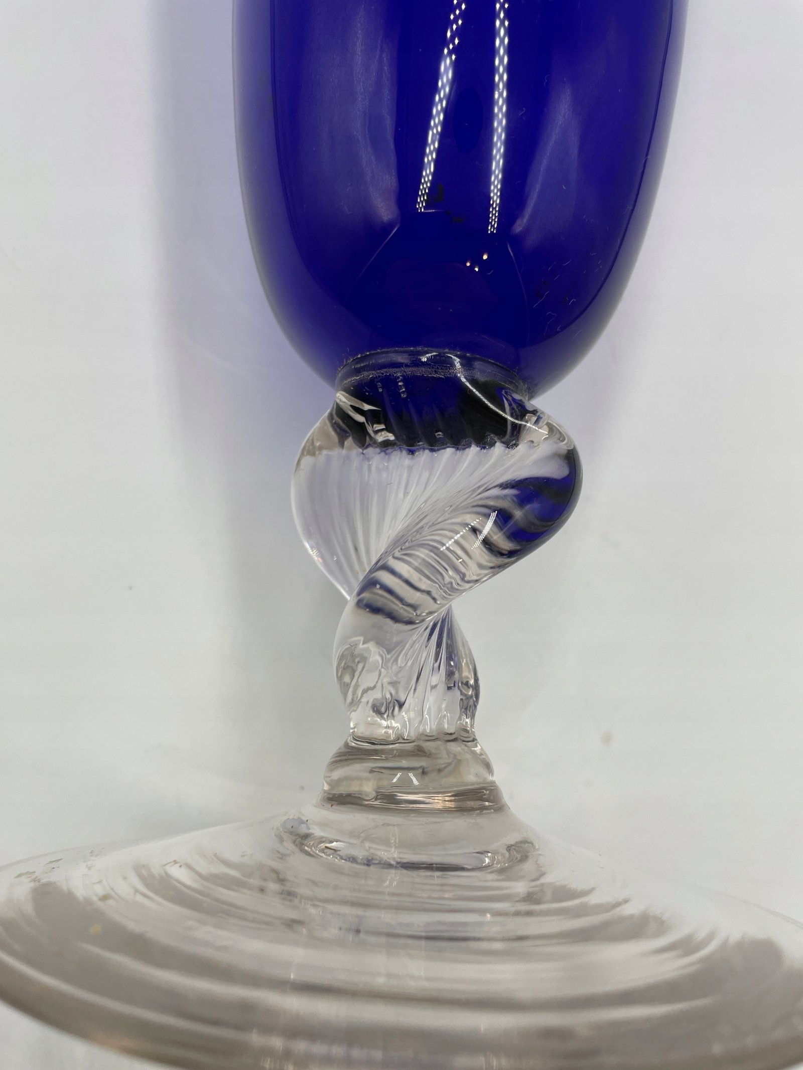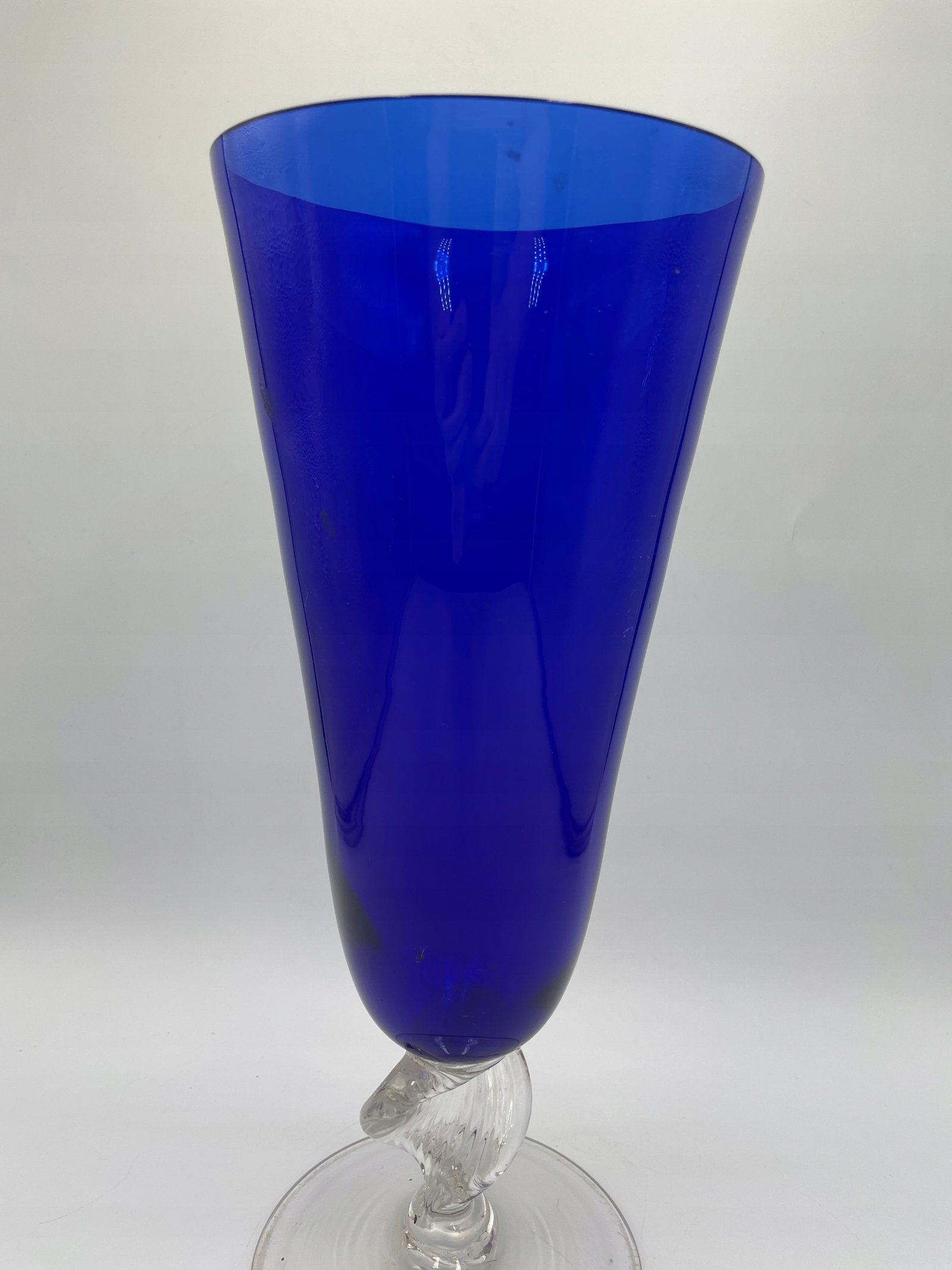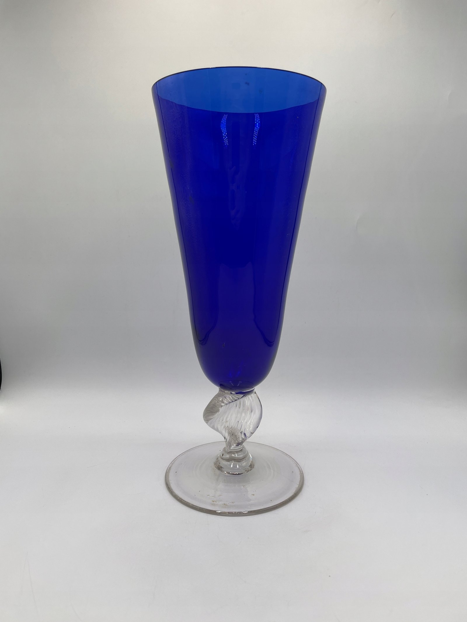 Szklany wazon o kobaltowej barwie z przezroczystą podstawą