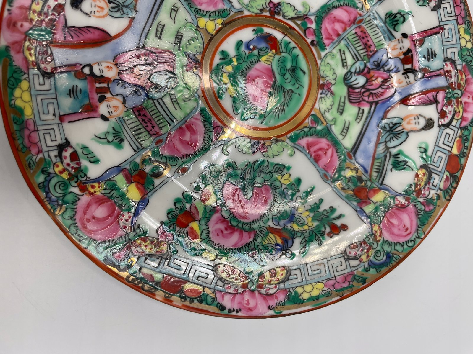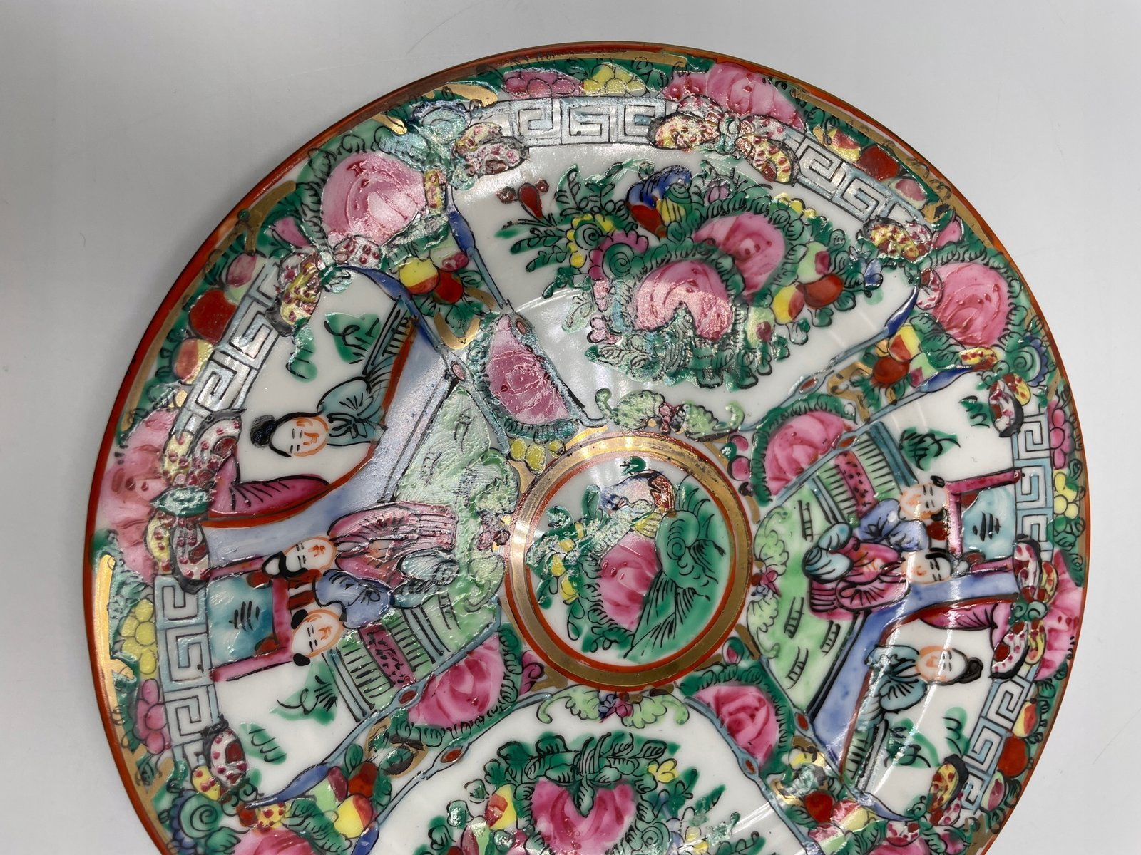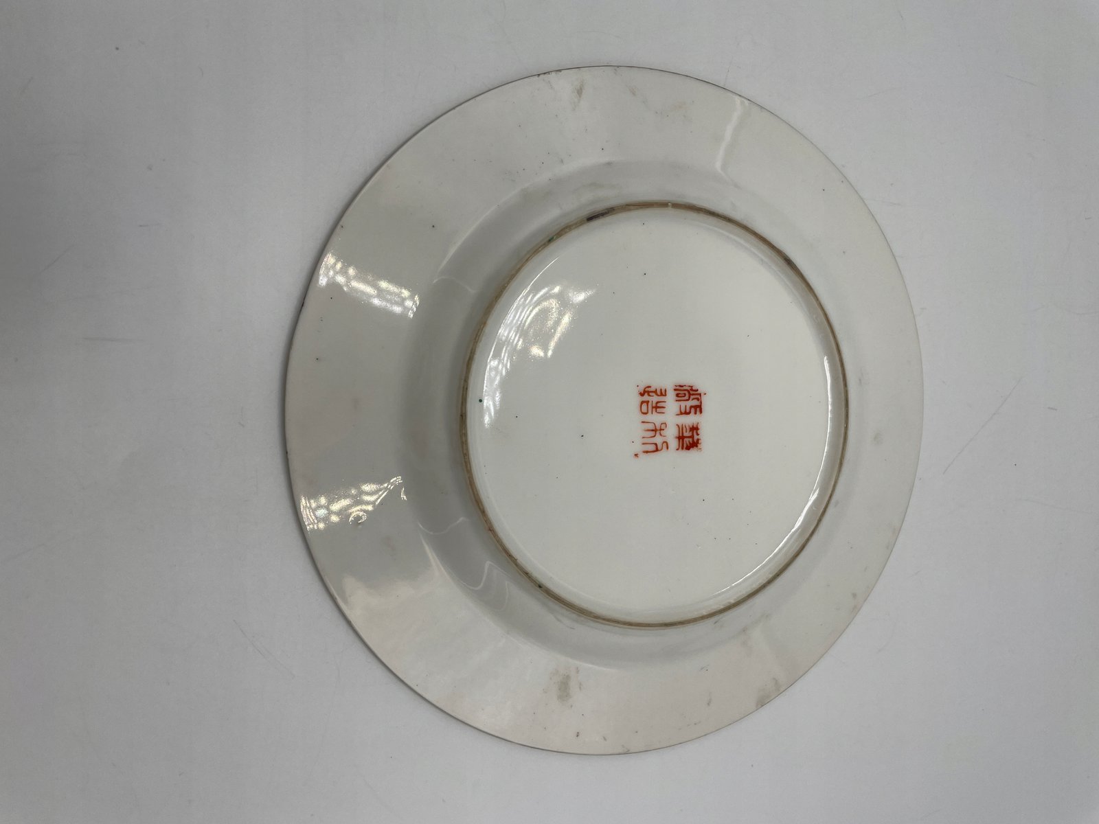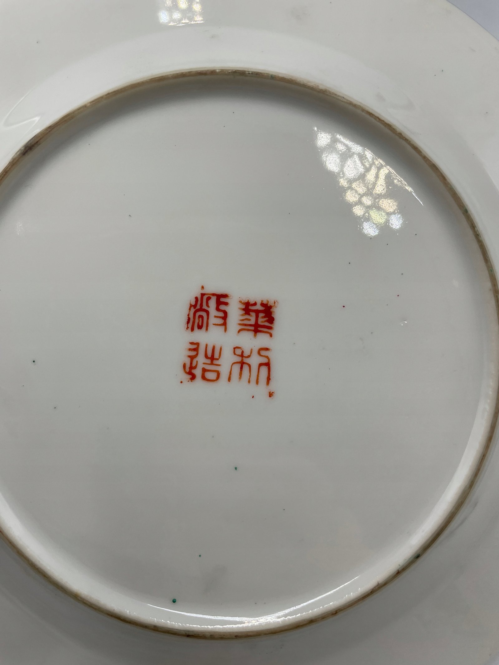 Dekoracyjny talerz porcelanowy z orientalnym wzorem i sygnaturą