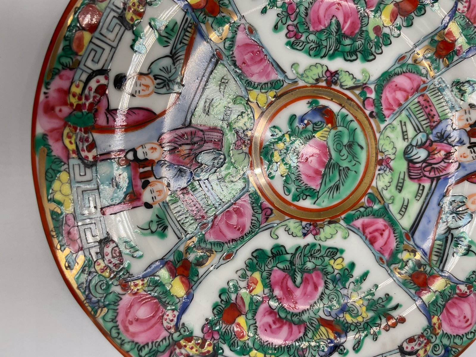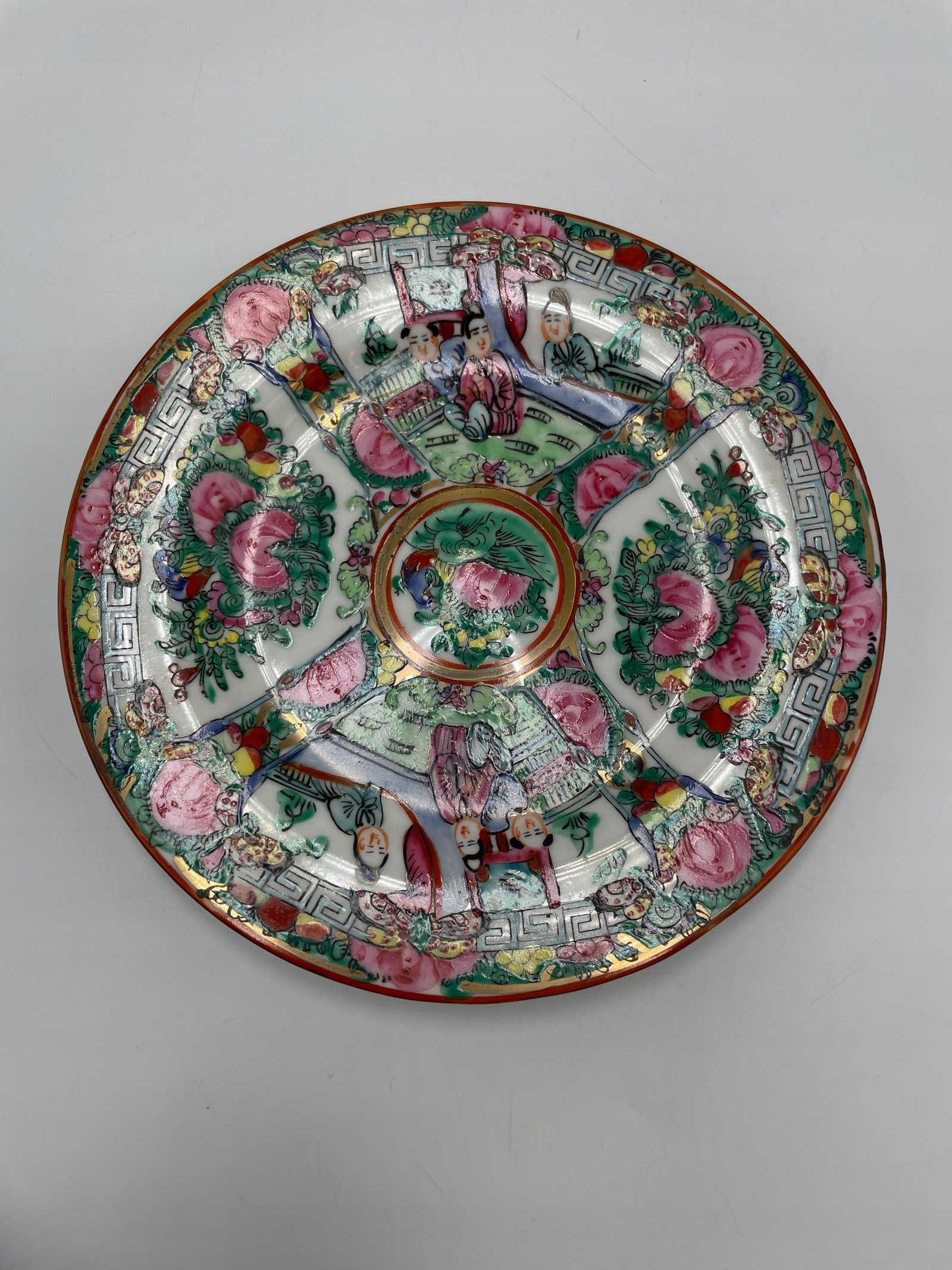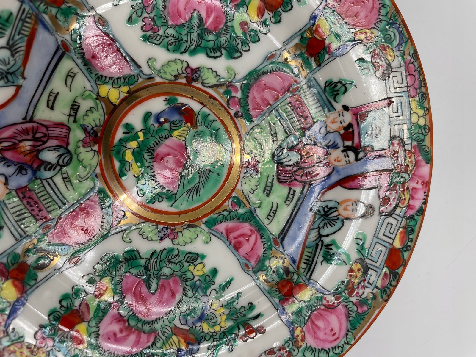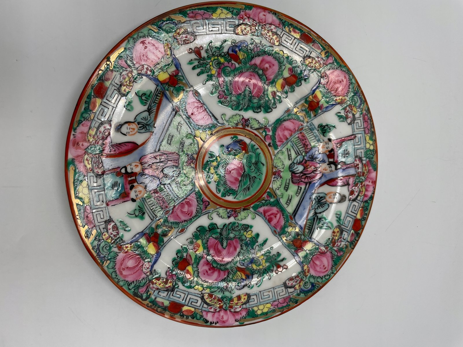 Dekoracyjny talerz porcelanowy z orientalnym wzorem i sygnaturą