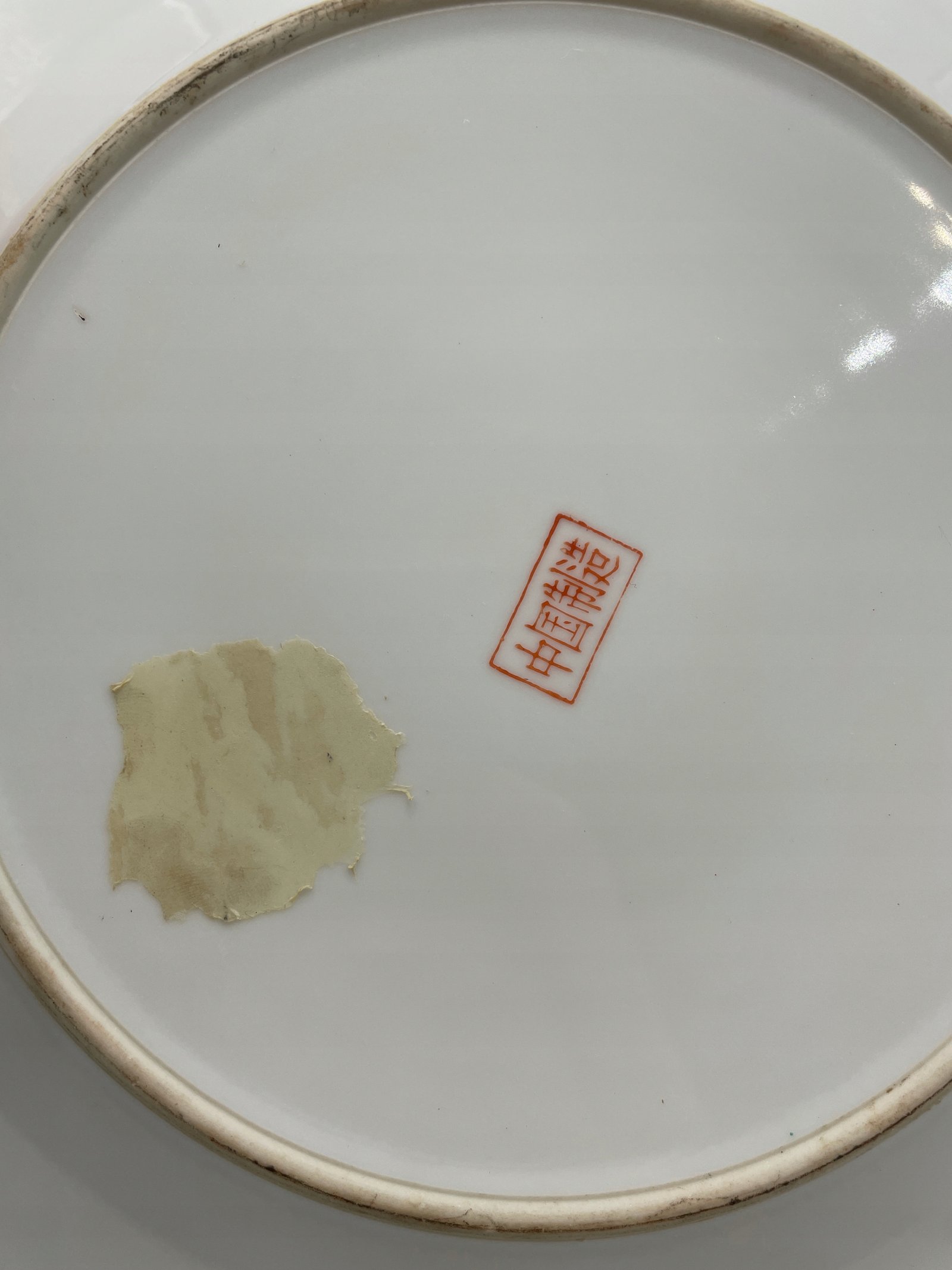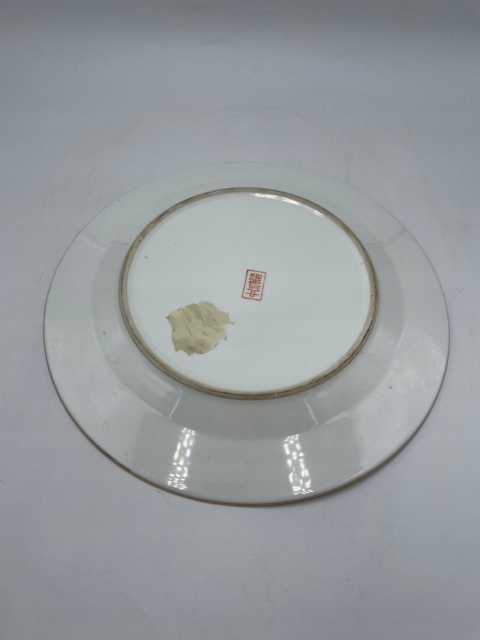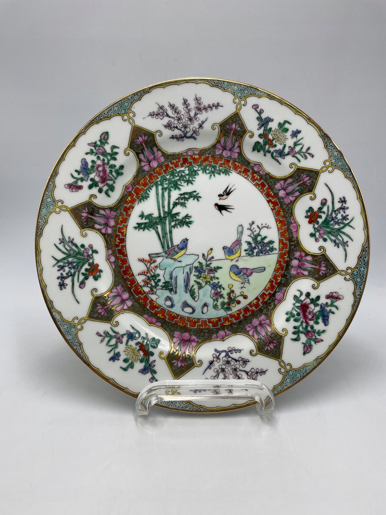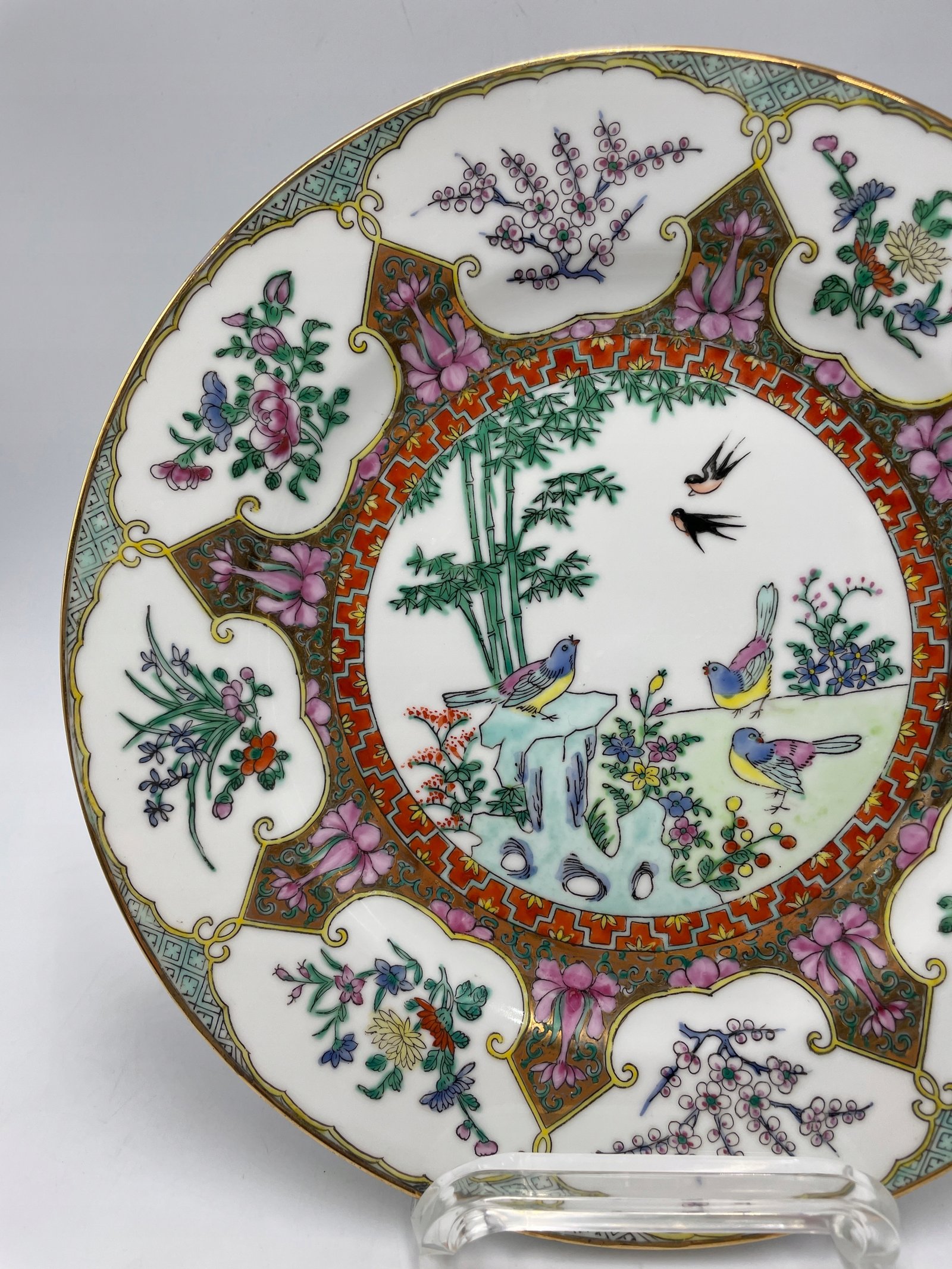 Talerz porcelanowy Chiny ptaki i kwiaty malowanie kantońskie 25,5 cm