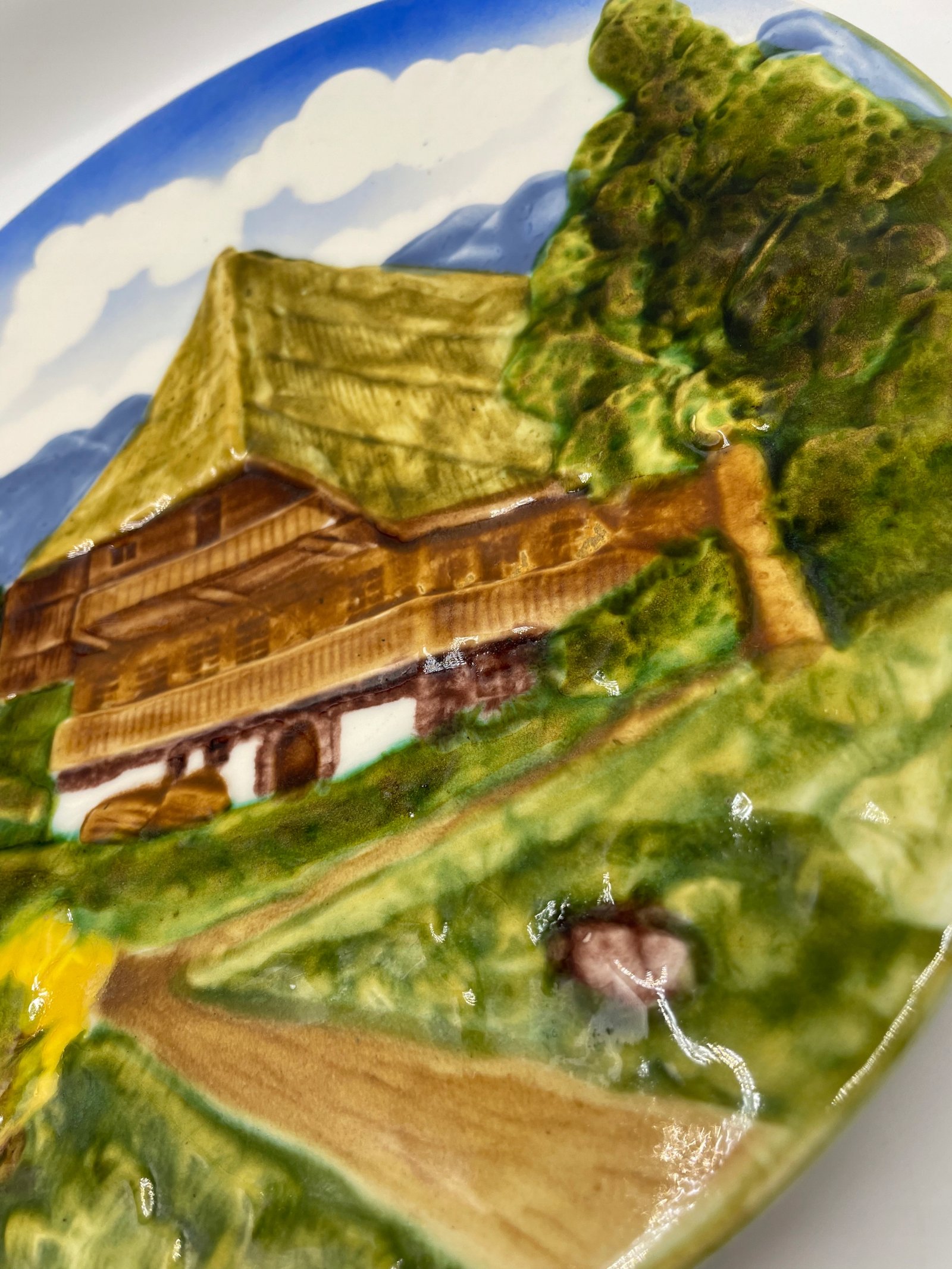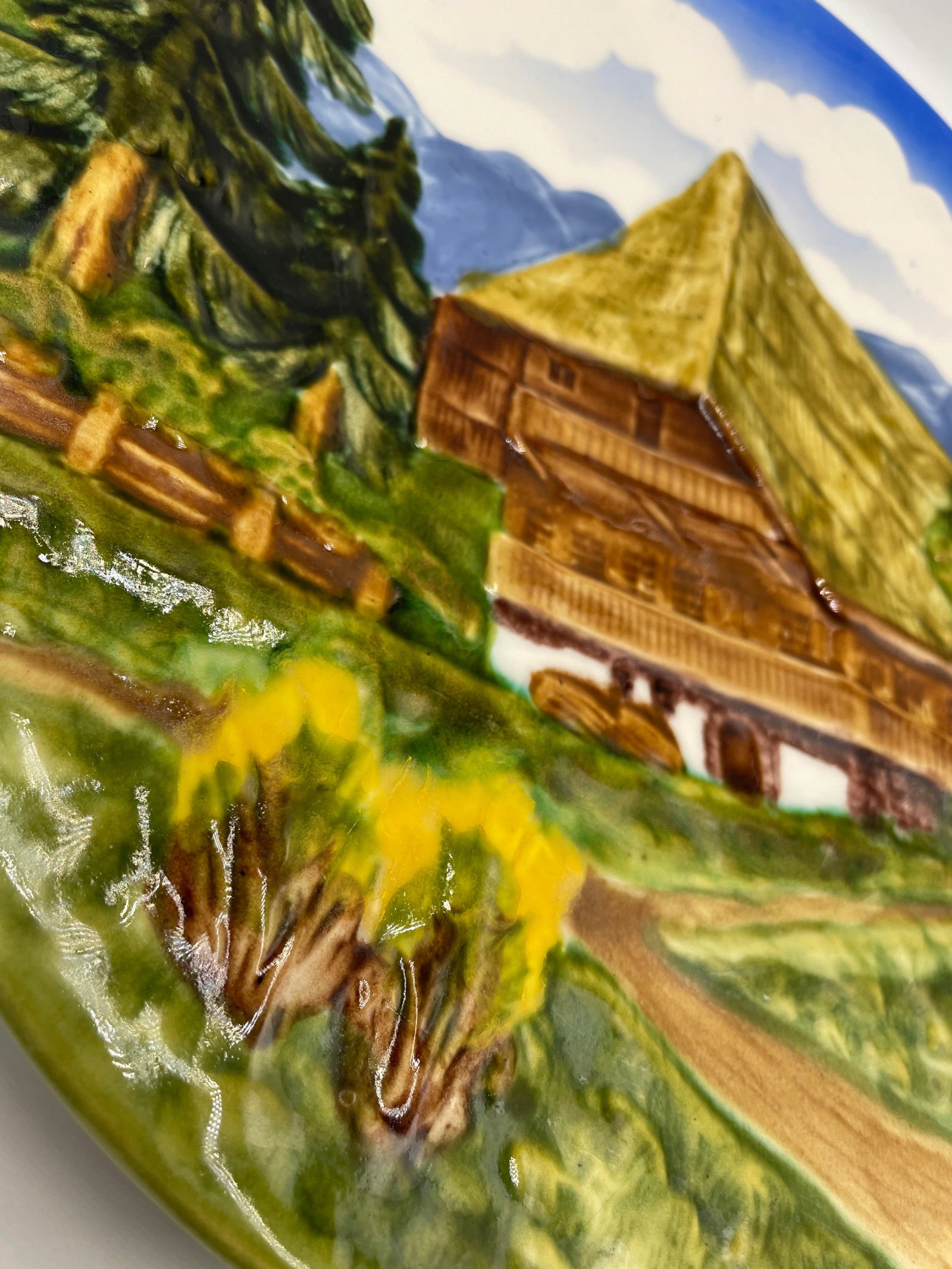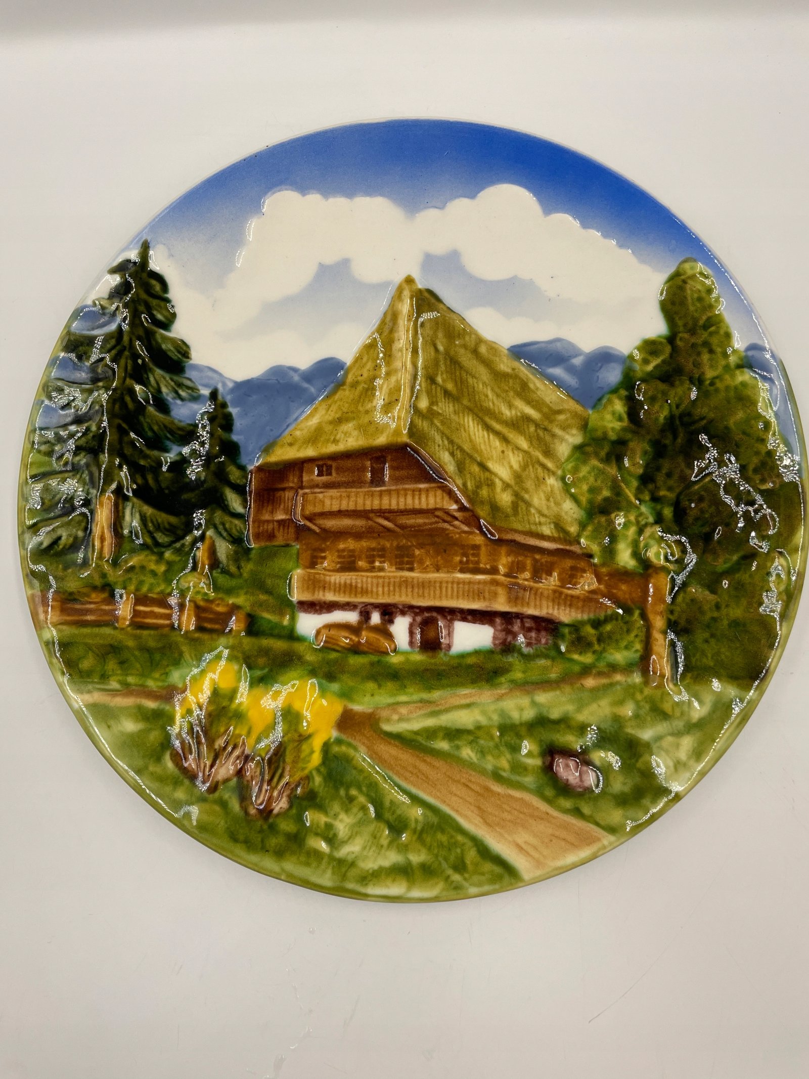 Talerz Schramberg SMF reliefowy dekoracyjny pejzaż górski dom