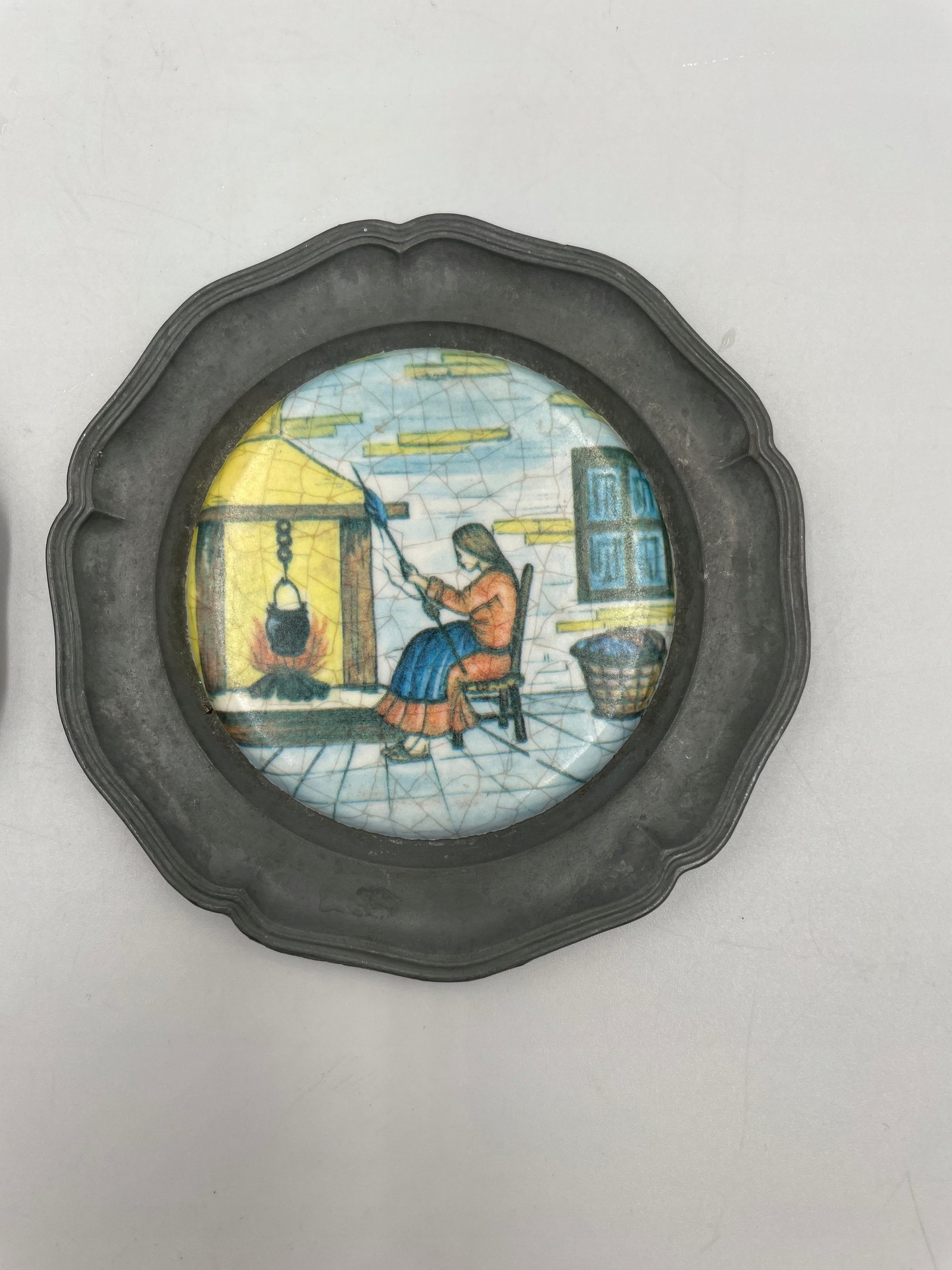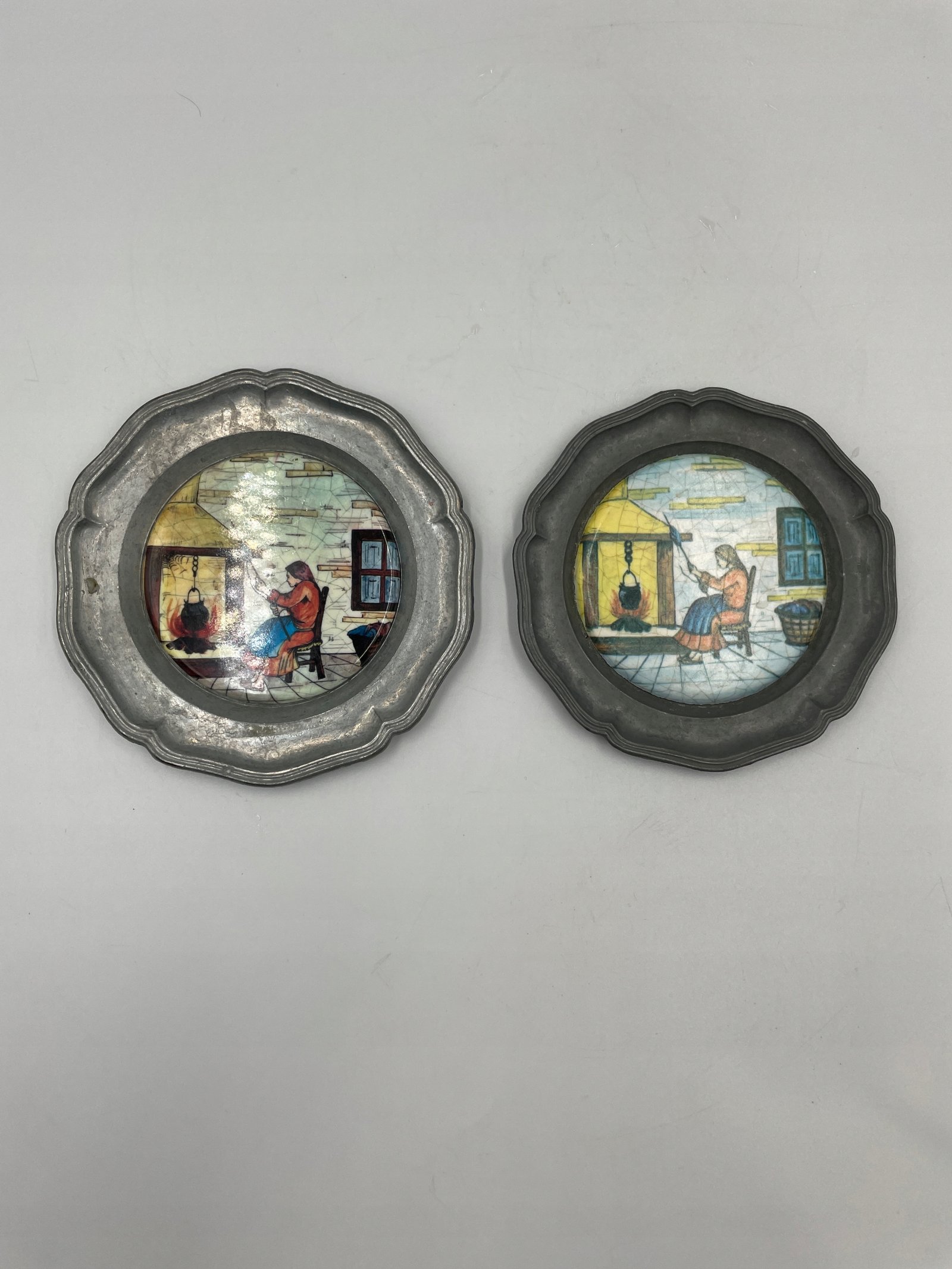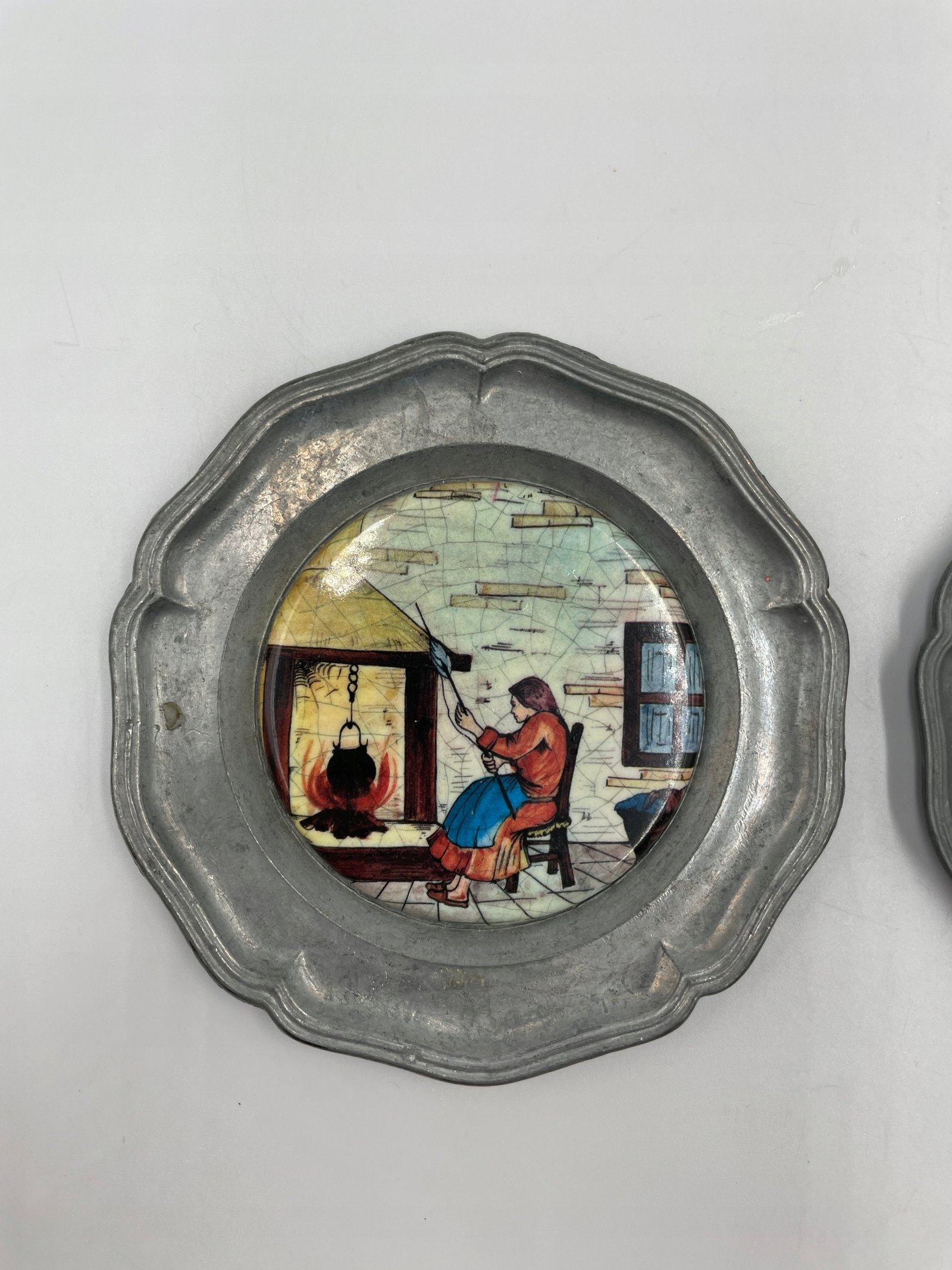 Talerze z malaturą porcelanową na podkładzie cynowym