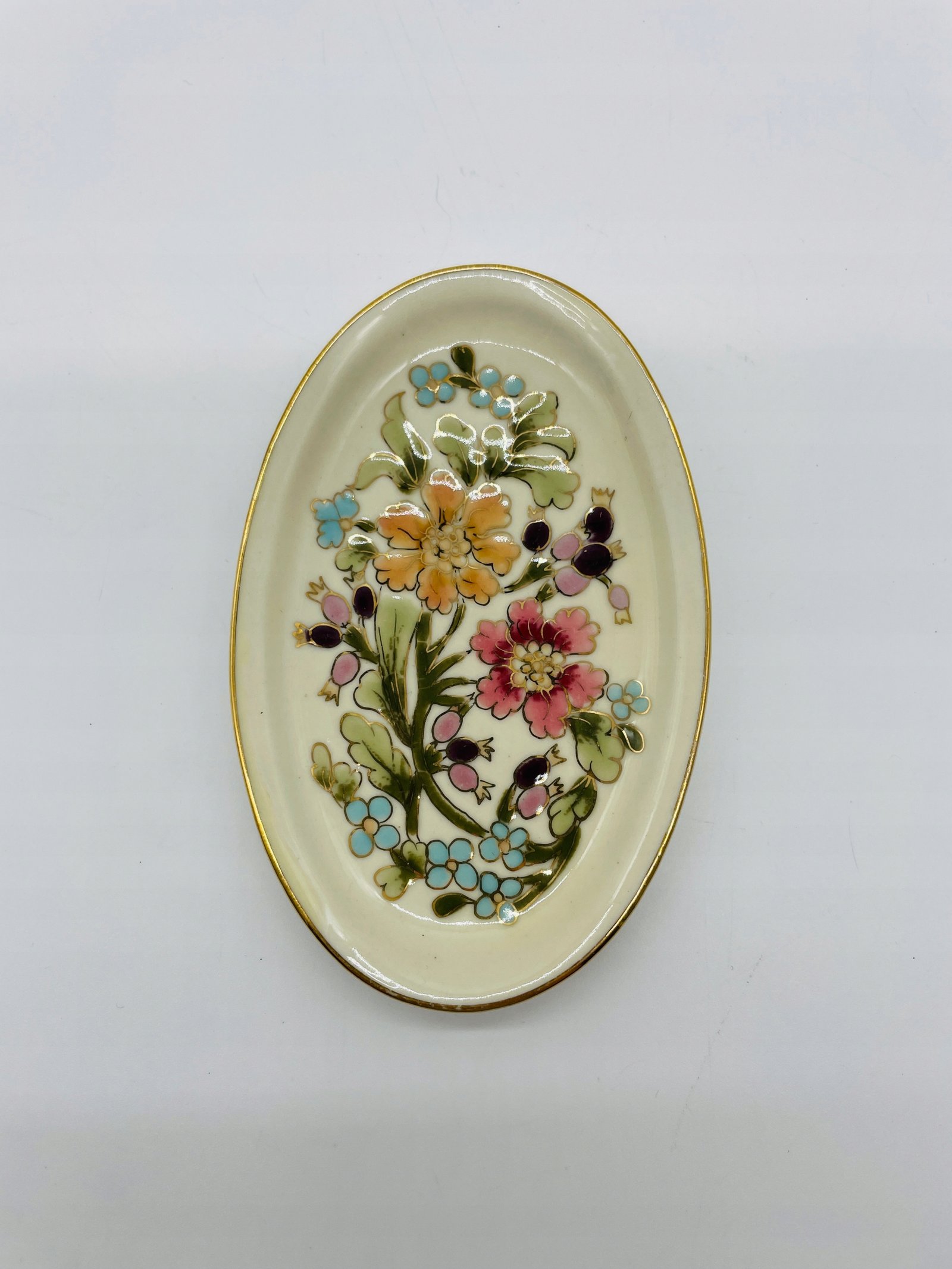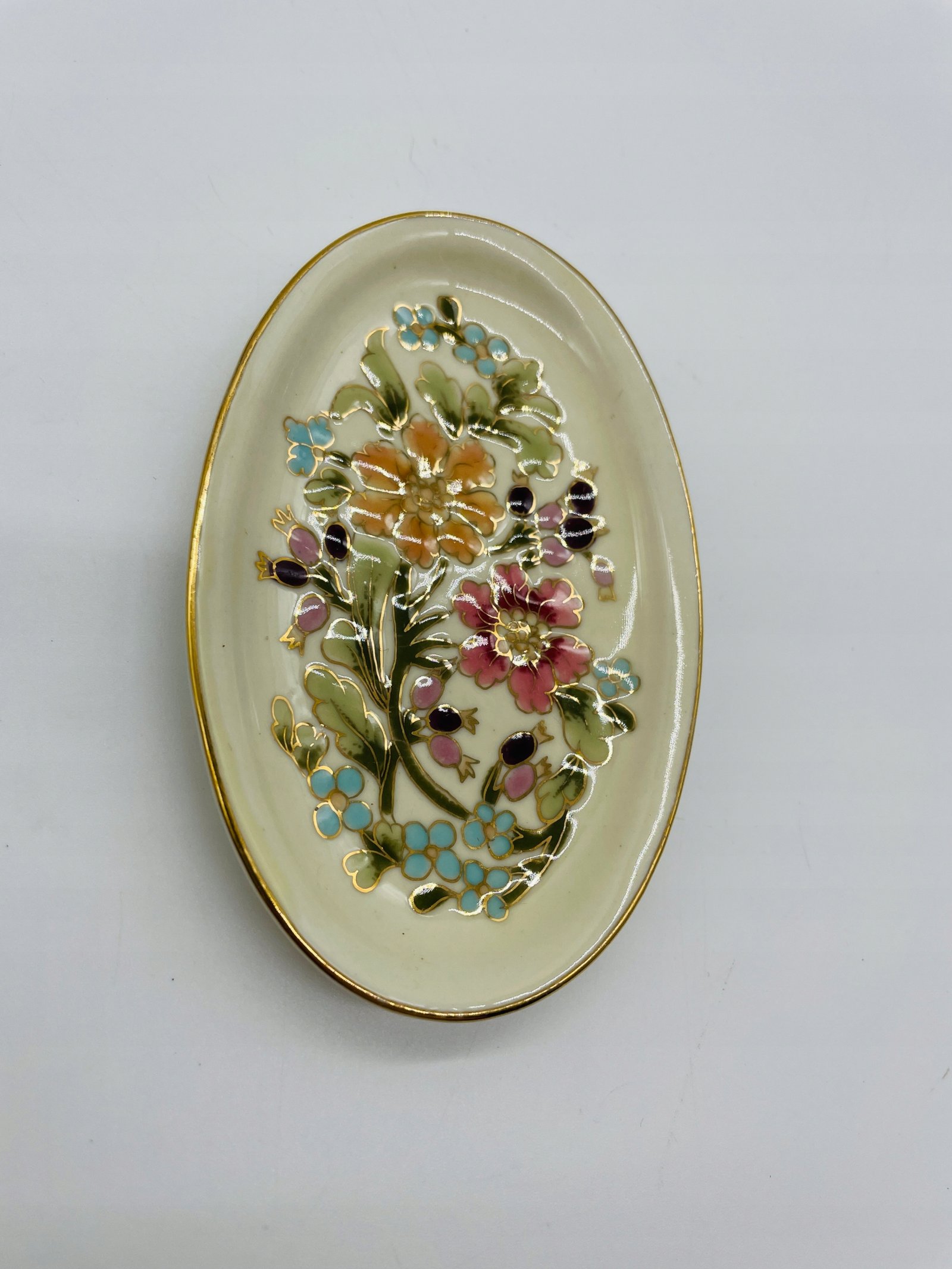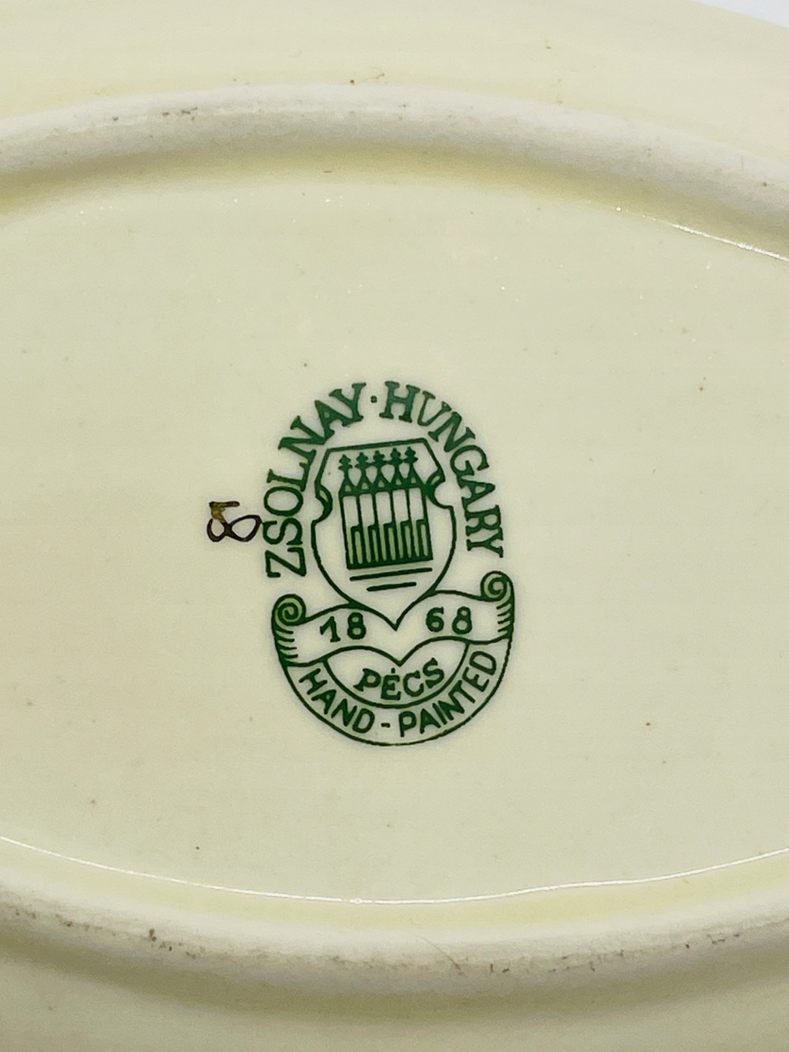 Talerzyk porcelanowy Zsolnay Węgry ręczne malowanie Pécs lata 60.