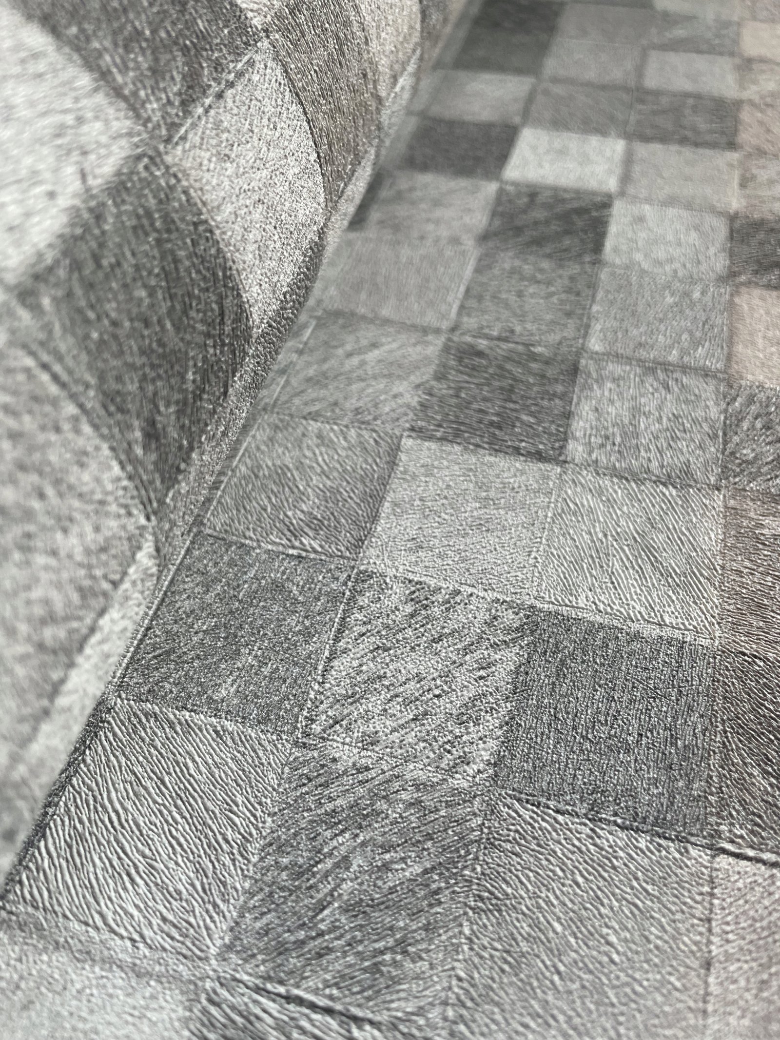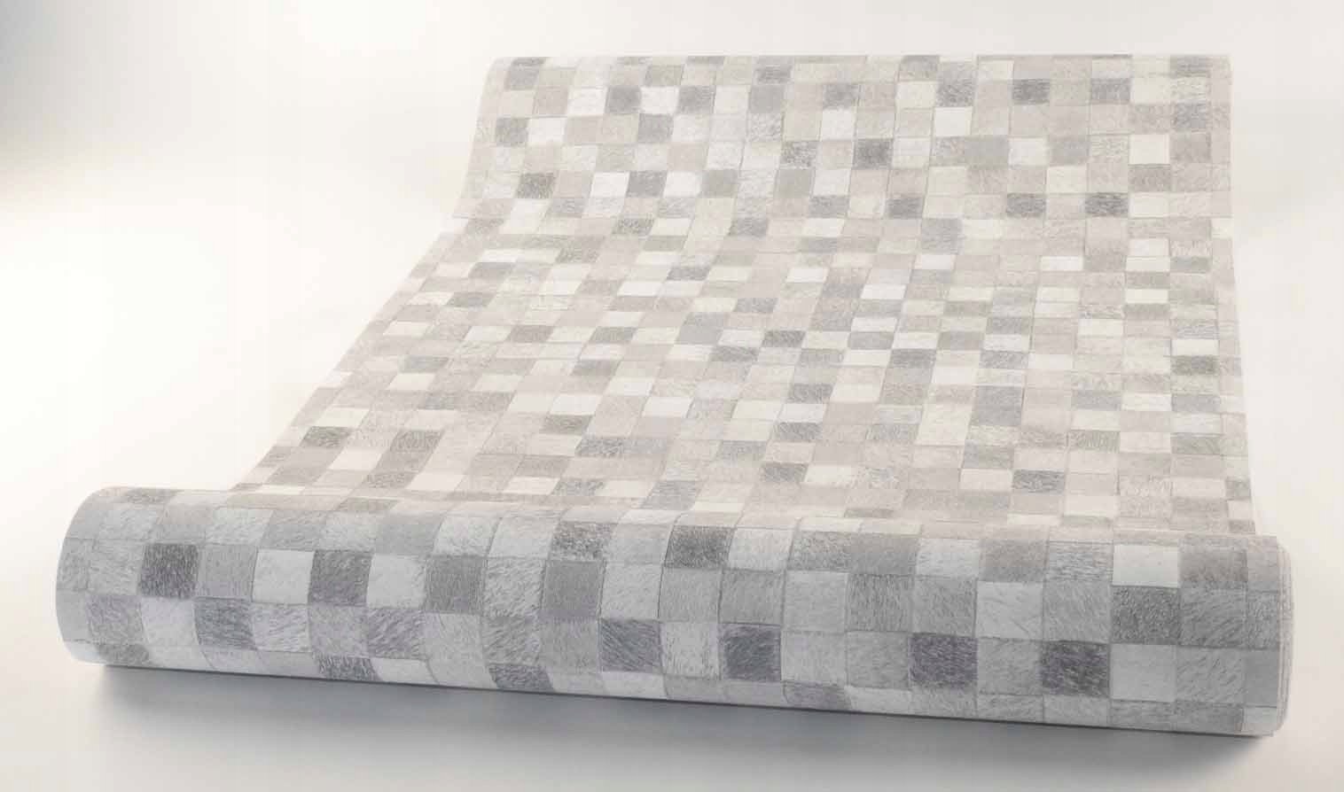 Tapeta ścienna holenderskiego producenta BN z kolekcji CURIOUS. Przedstawia ona motyw zwierzęcej skóry ułożonej w drobną mozaikę. Małe skrawki o wymiarze ok 2,5cm z odwzorowaną strukturą sierści to udany melanż szarości. Ciekawa propozycja, która z pewnością przełamie monotonię wnętrza.