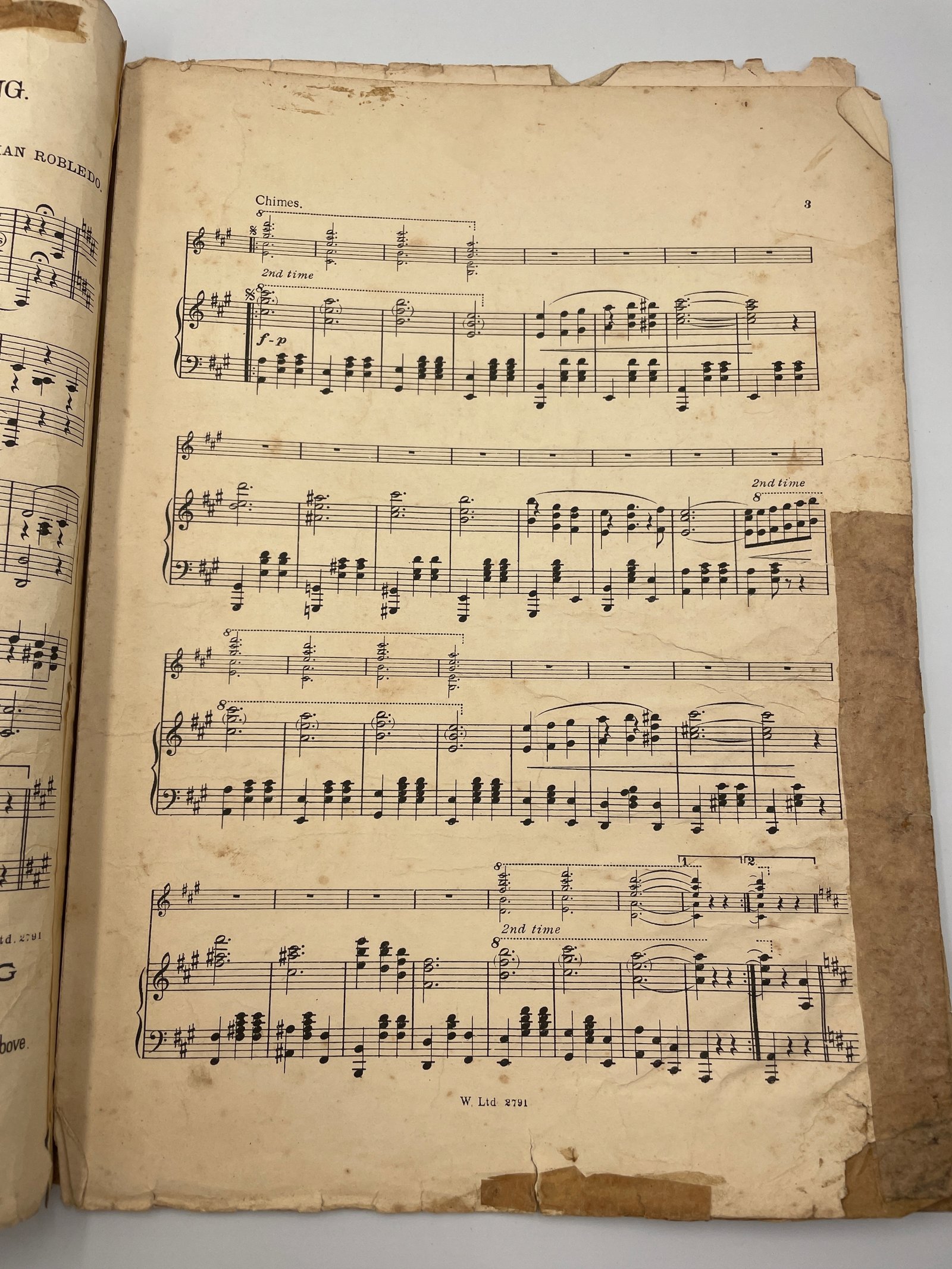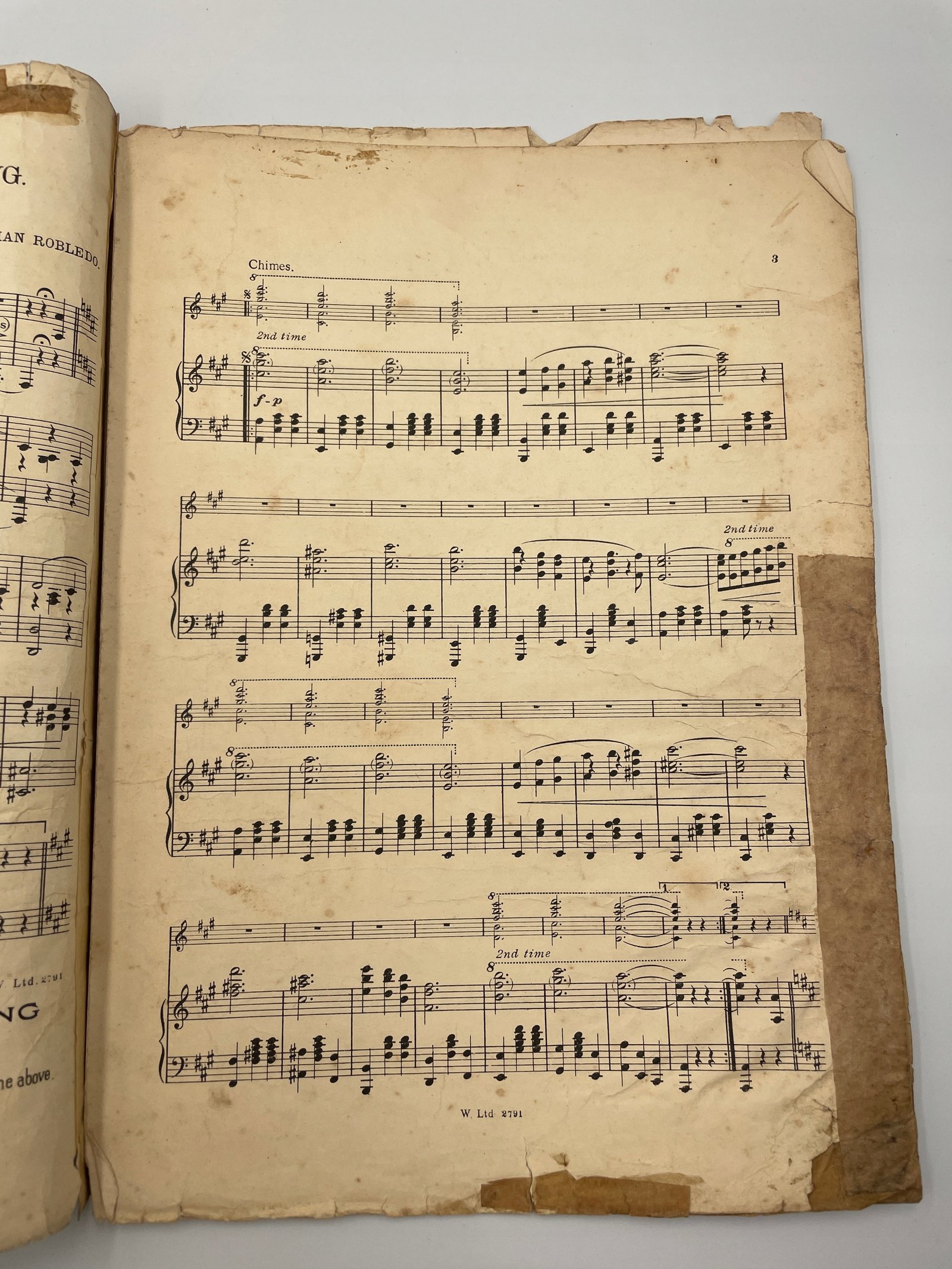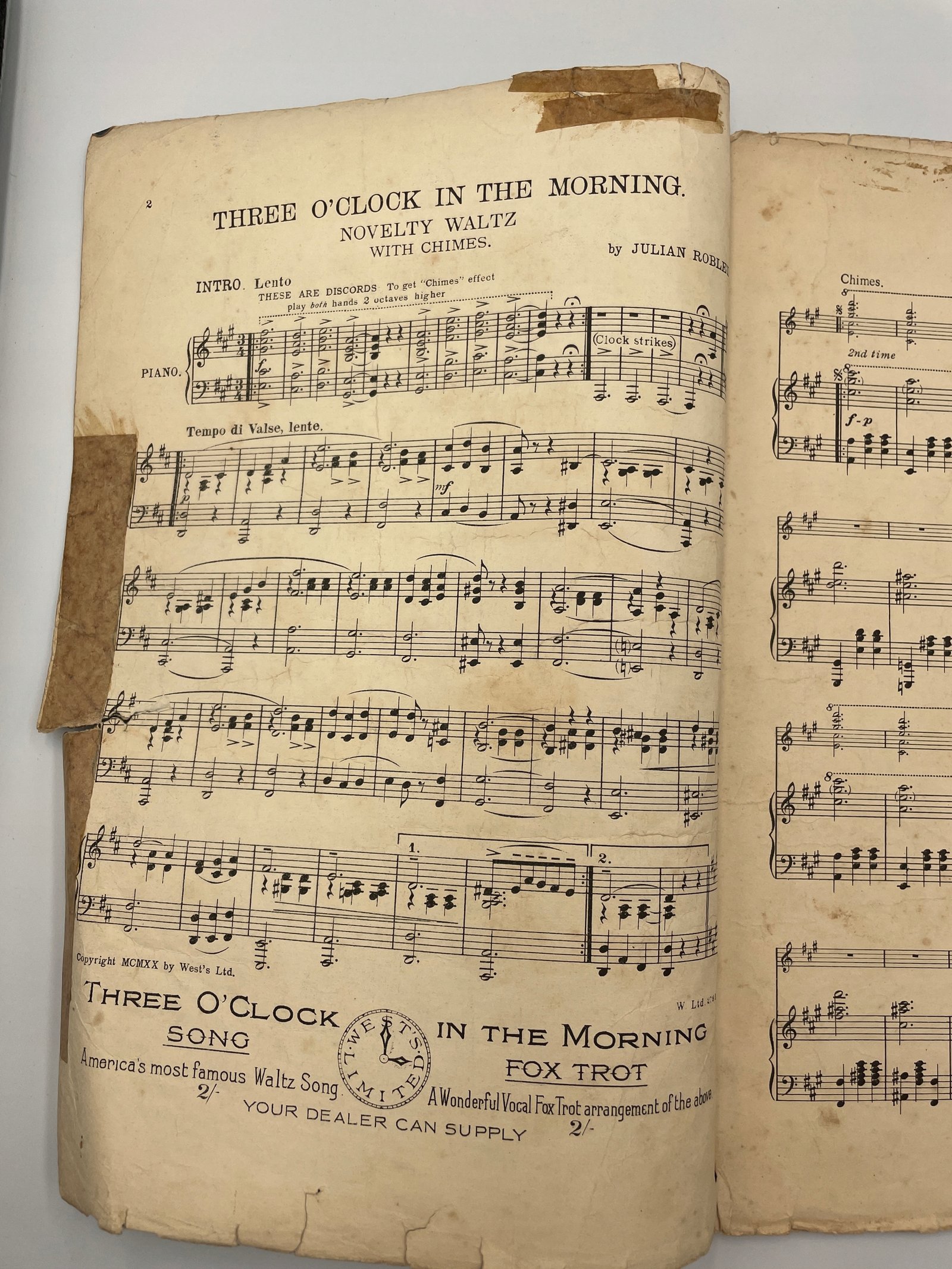 Oryginalne wydanie utworu „Three O’Clock in the Morning”, walca nowości (novelty waltz) autorstwa argentyńskiego kompozytora Juliana Robledo. Kompozycja zyskała ogromną popularność w latach 20. XX wieku w Stanach Zjednoczonych, a następnie w Europie, stając się jednym z najbardziej rozpoznawalnych walców tego okresu.