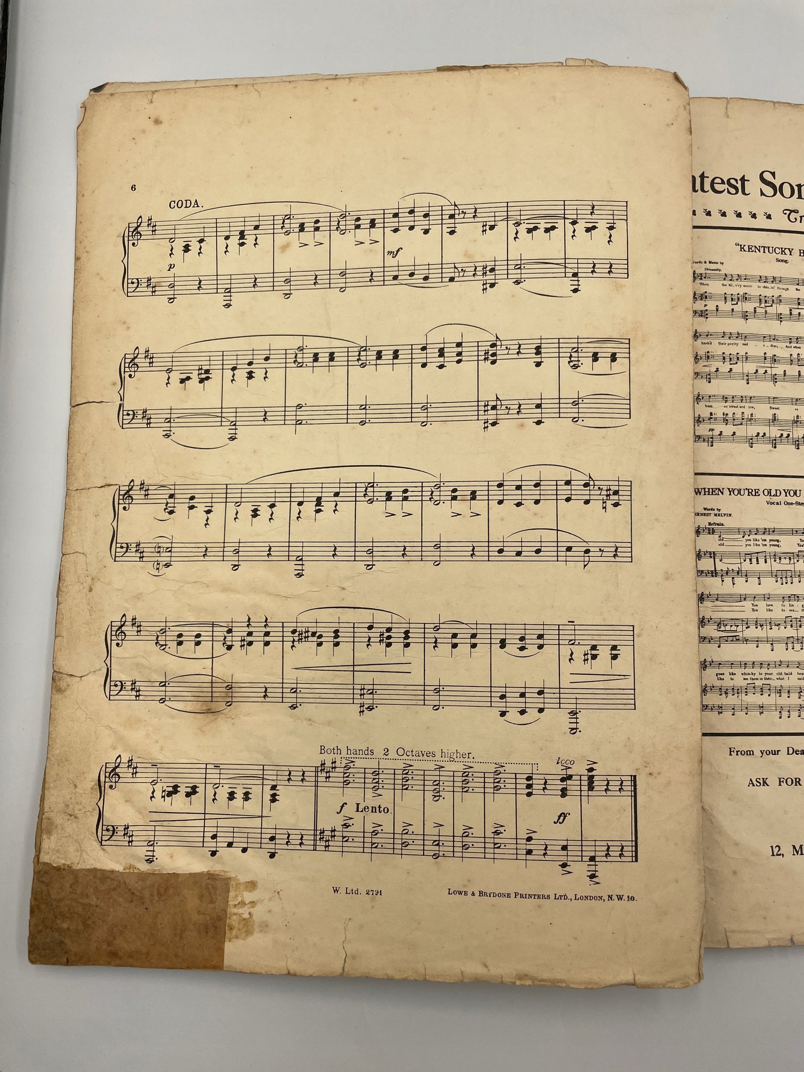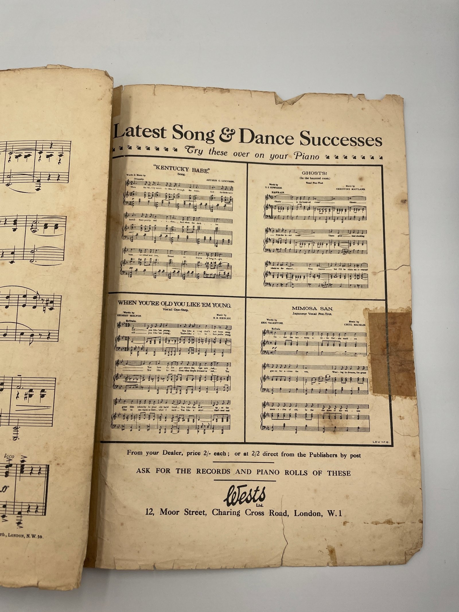 Wydane przez West’s Ltd, 12 Moor St, Charing Cross Rd, Londyn, z pieczątką dystrybutora Leo Feist Inc., Nowy Jork.