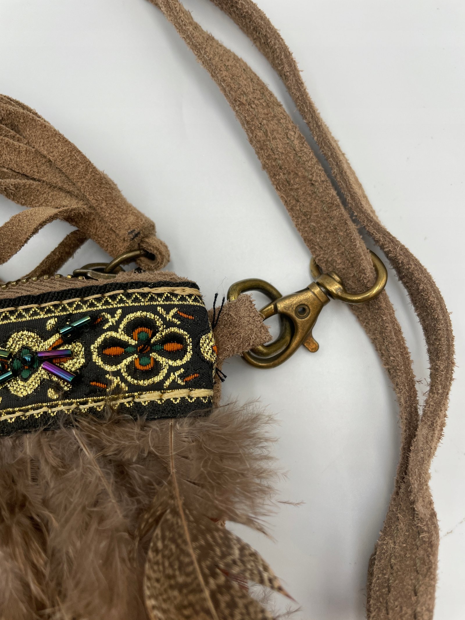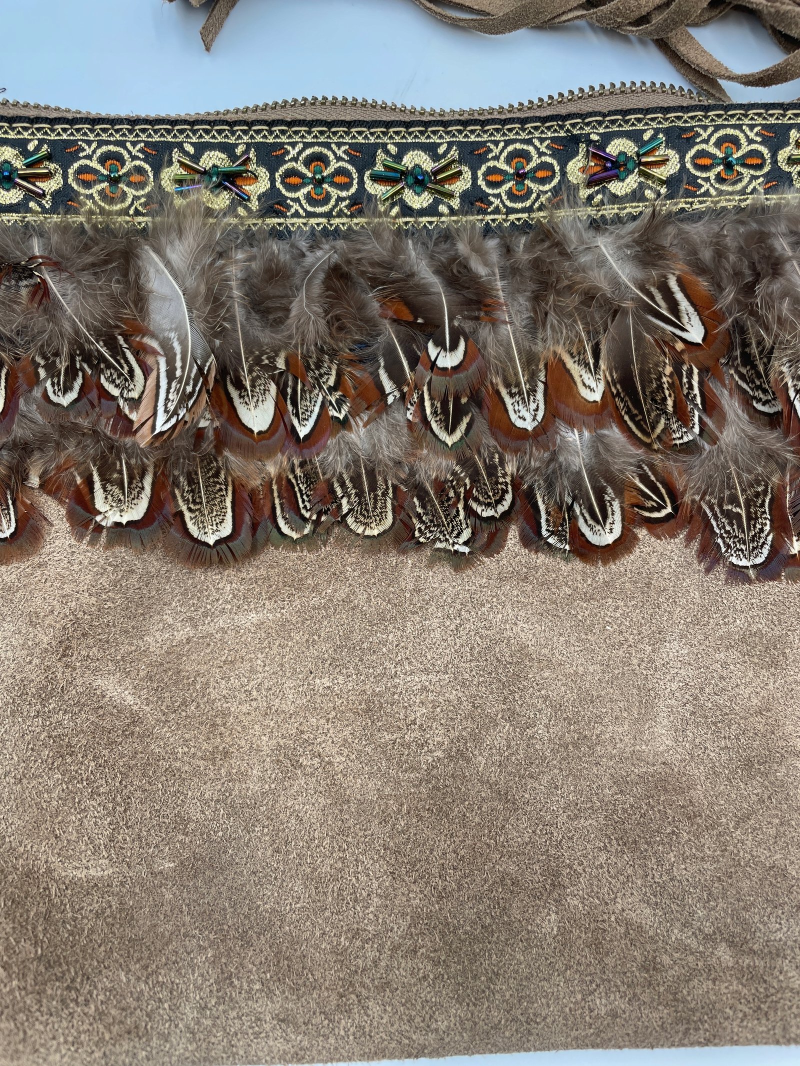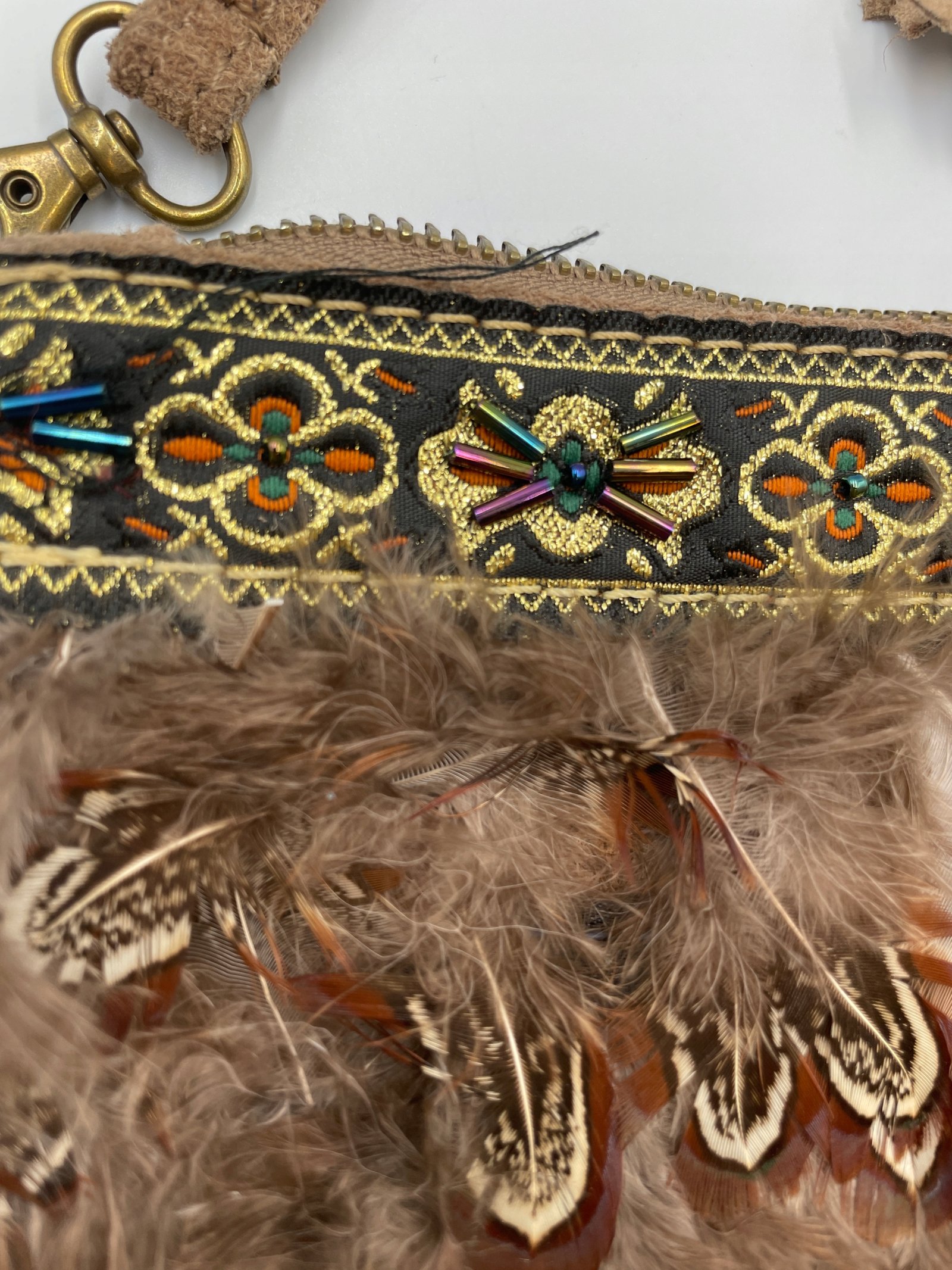 Torebka Wlochy 29×22 cm skora z piorami koralikami i haftem vintage