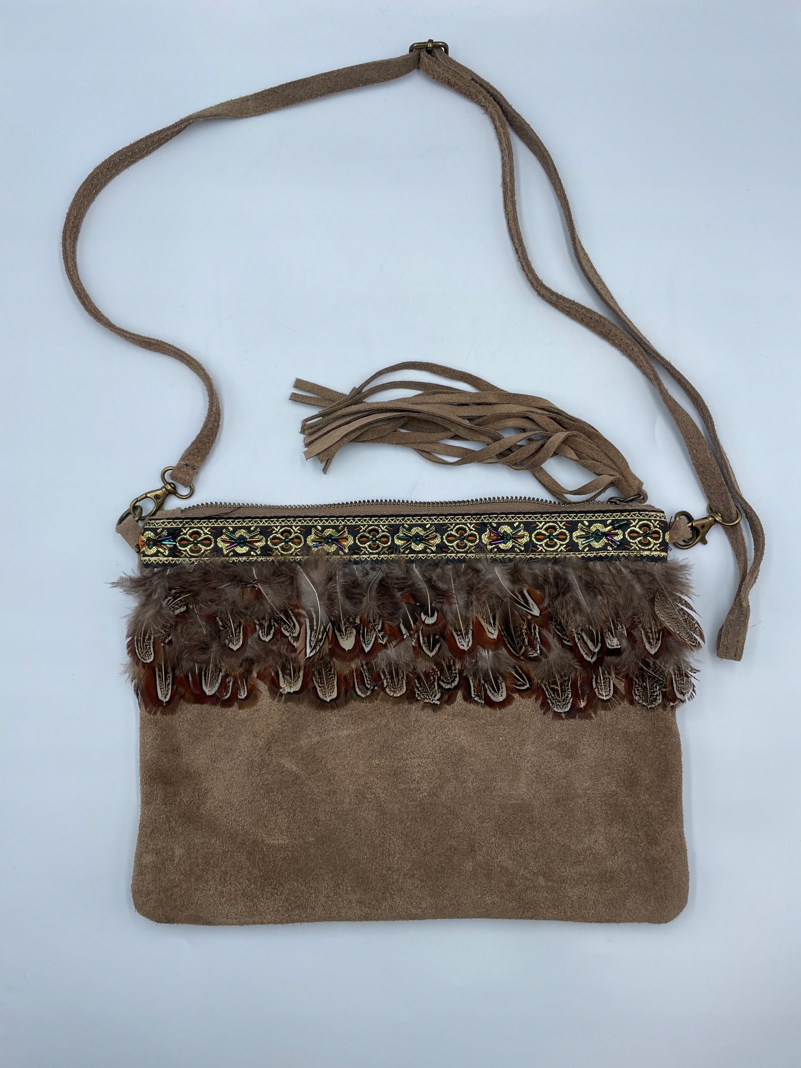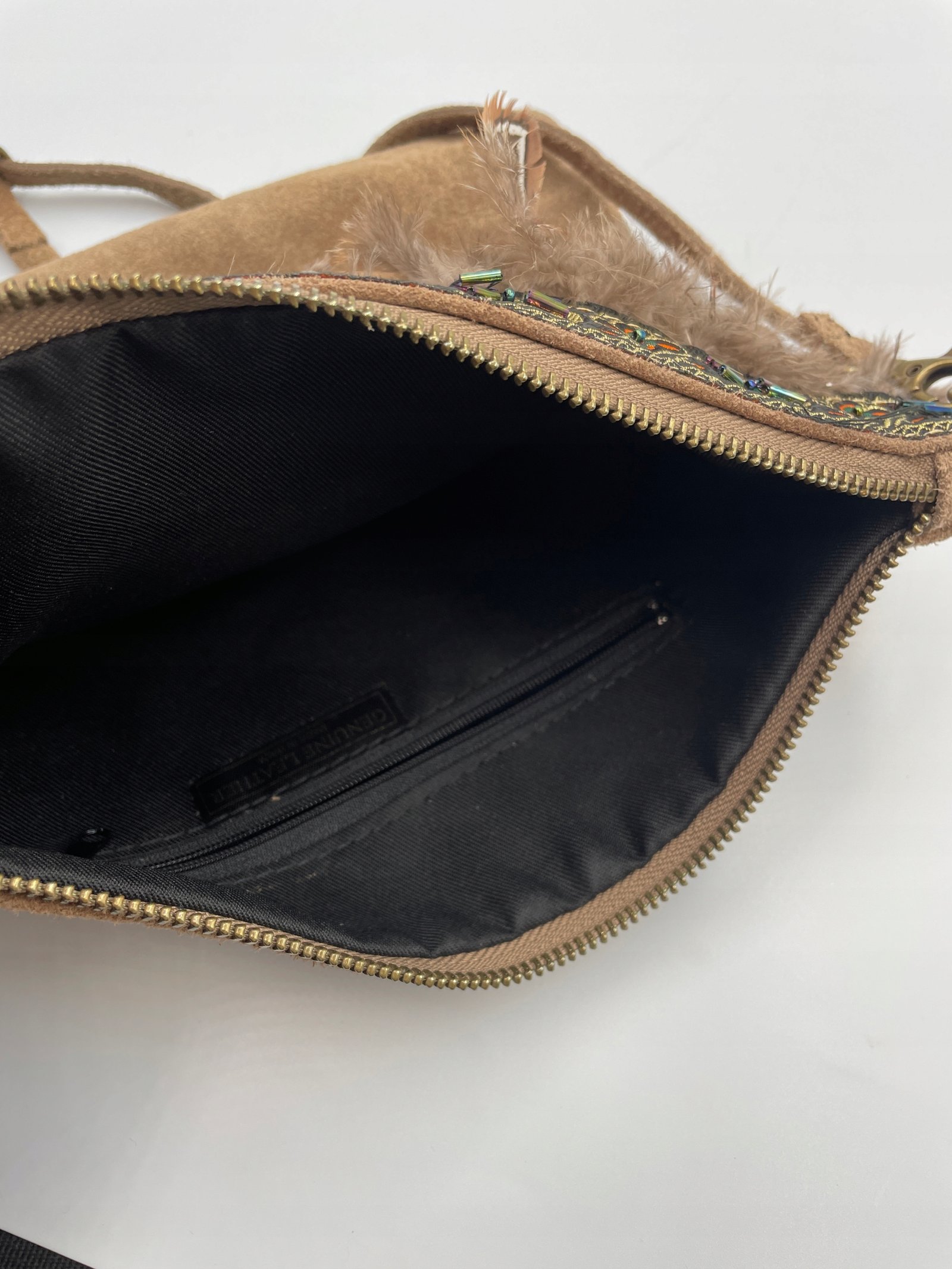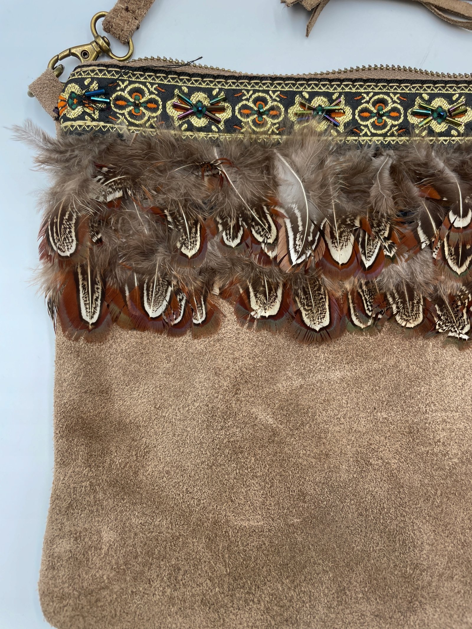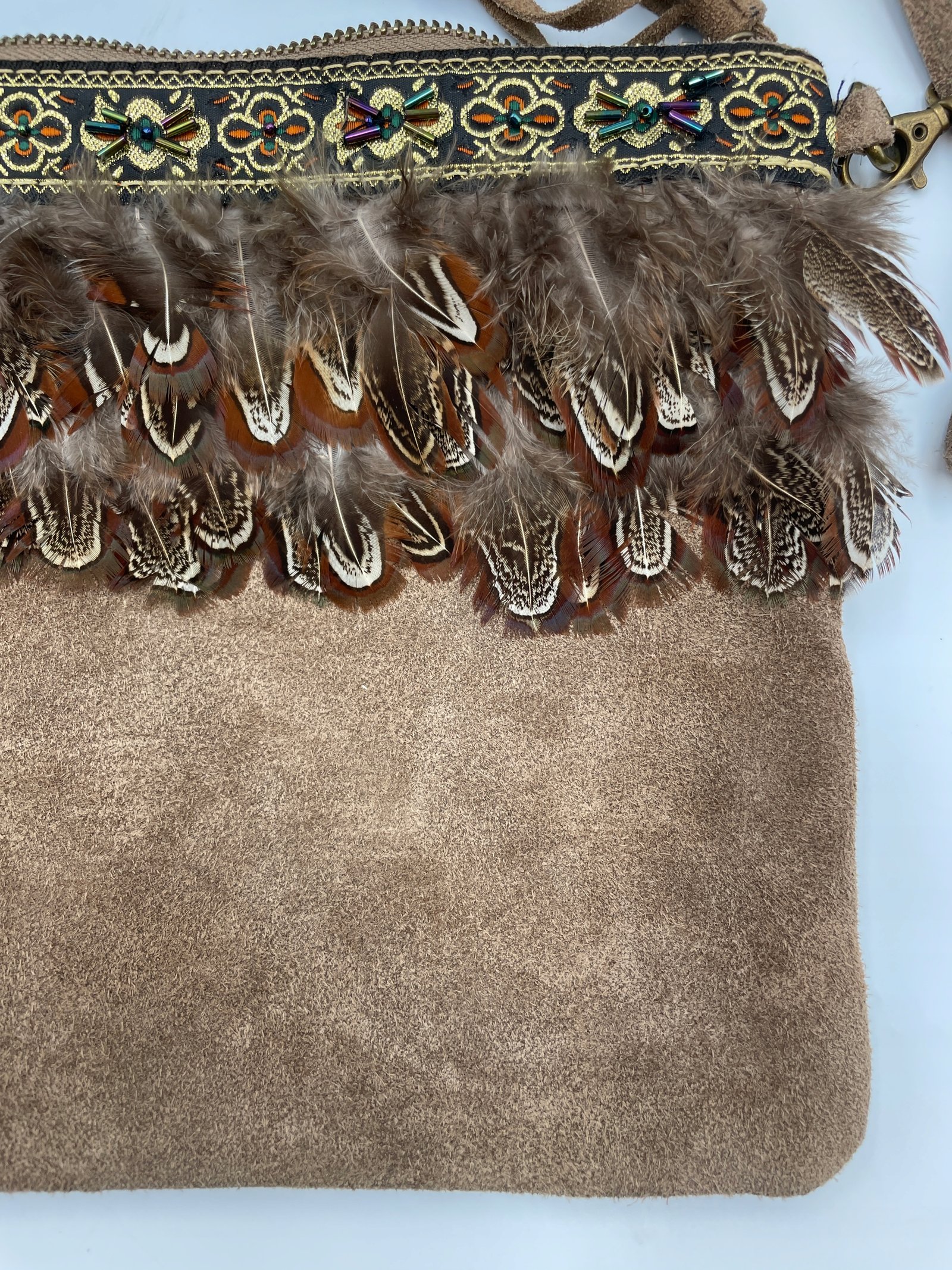 Torebka Wlochy 29×22 cm skora z piorami koralikami i haftem vintage