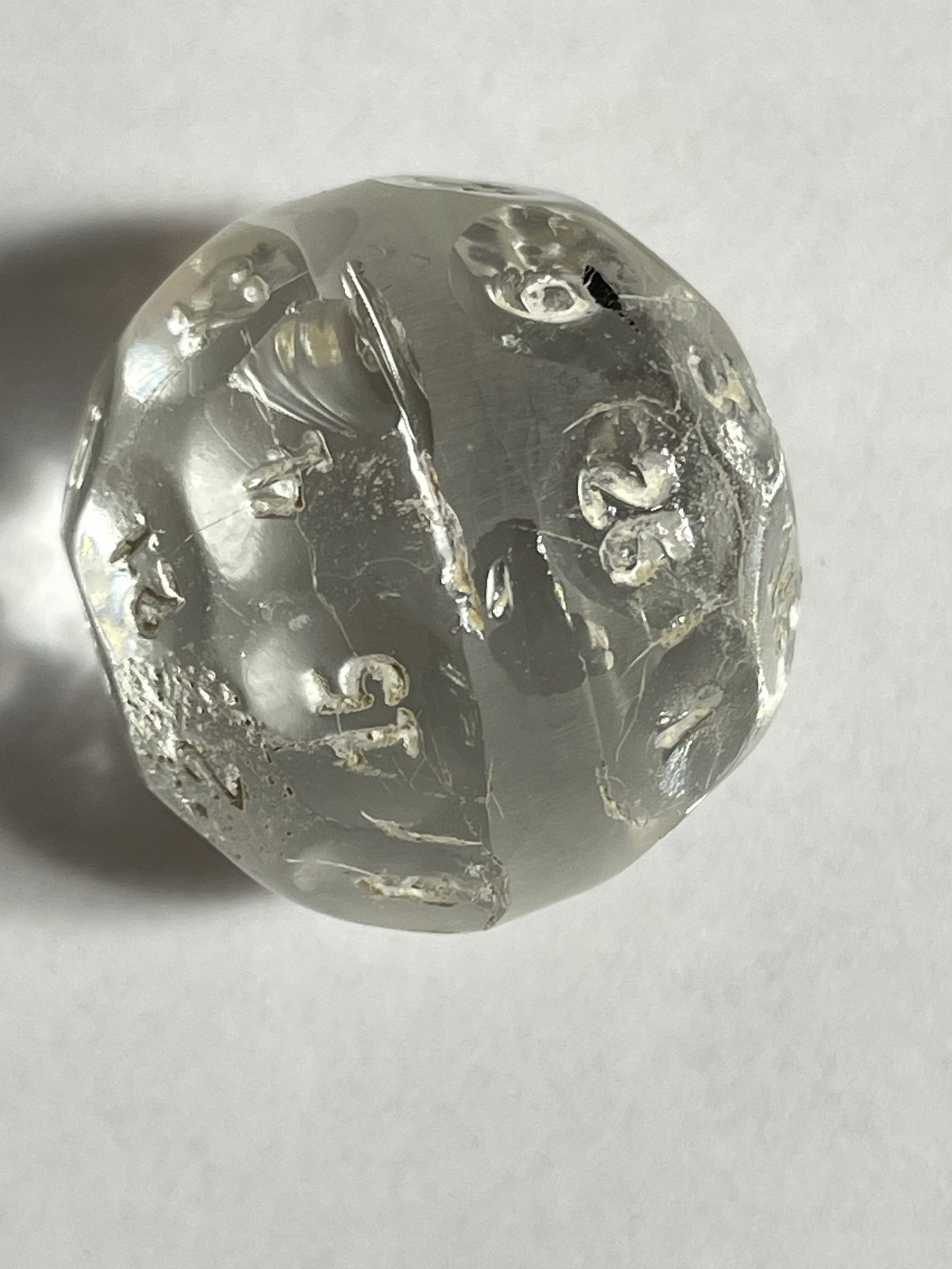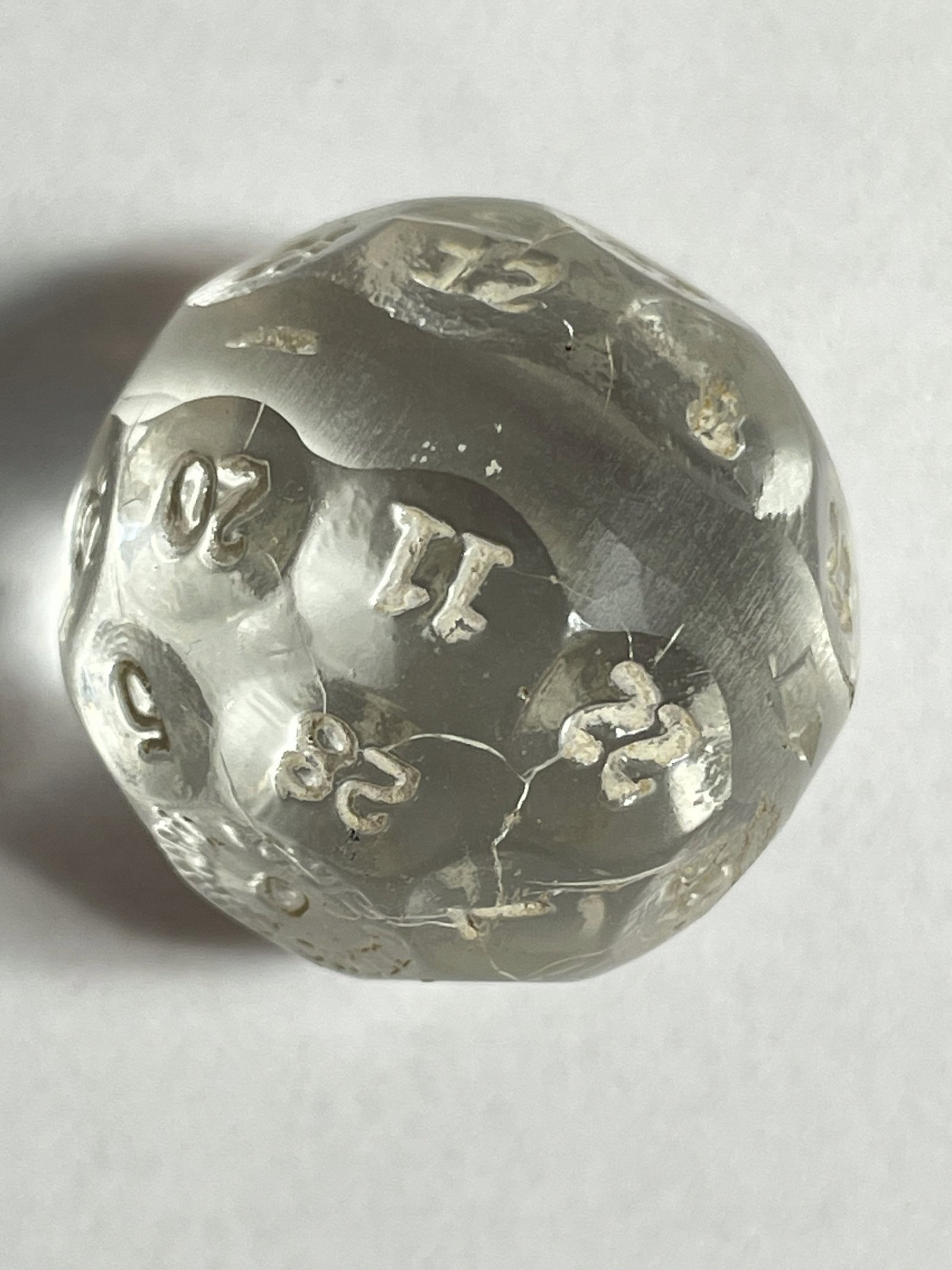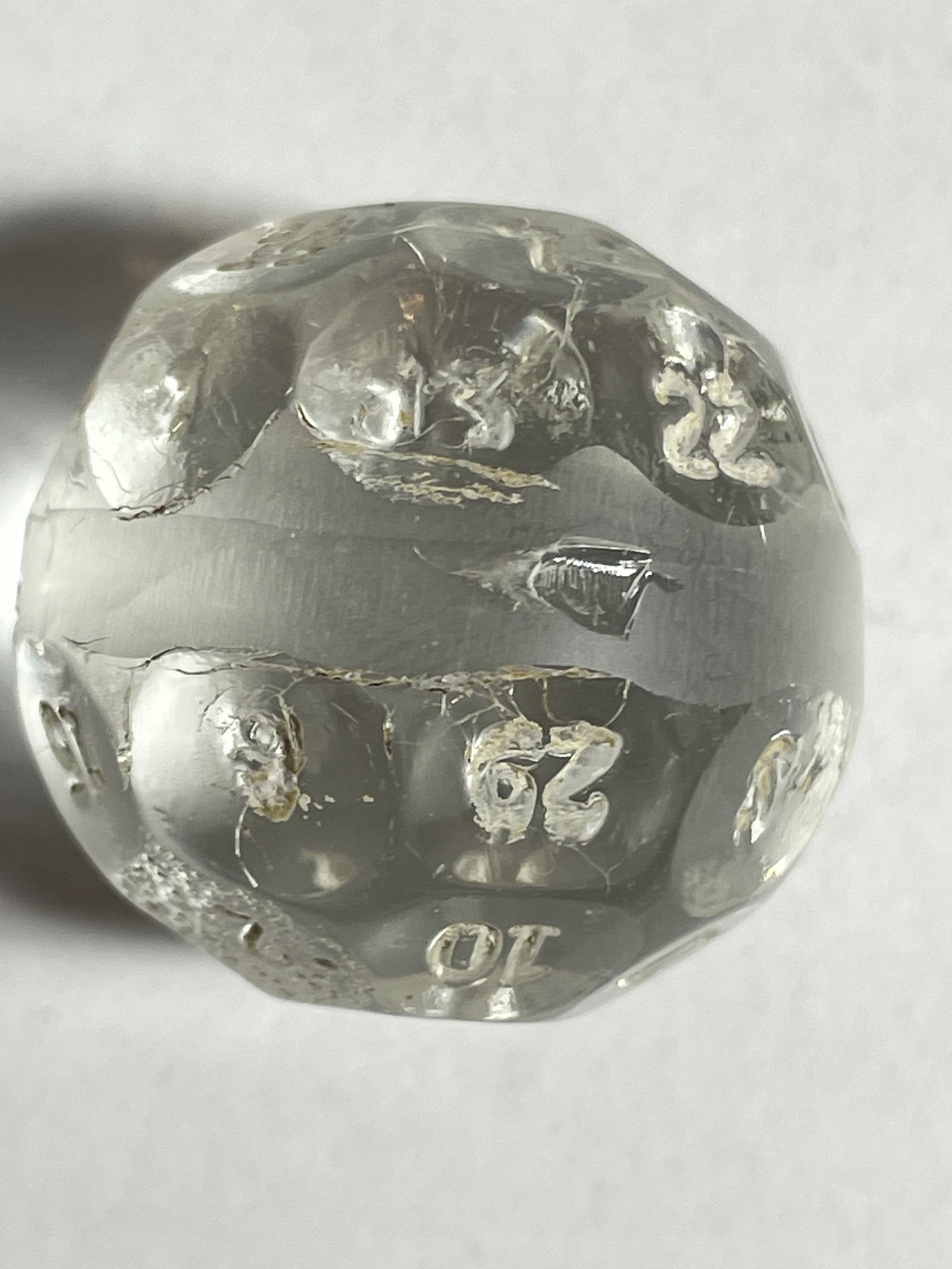 To vintageowy kostka o 32 ścianach, wykonany w Czechosłowacji, państwie istniejącym w Europie od 1918 do 1992 roku. Został wyprodukowany około lat 20. W zależności od wyrzuconej strony, można przepowiadać MIŁOŚĆ, MAŁŻEŃSTWO, SZCZĘŚCIE, NIESPODZIANKĘ, FINANSE i DOM.