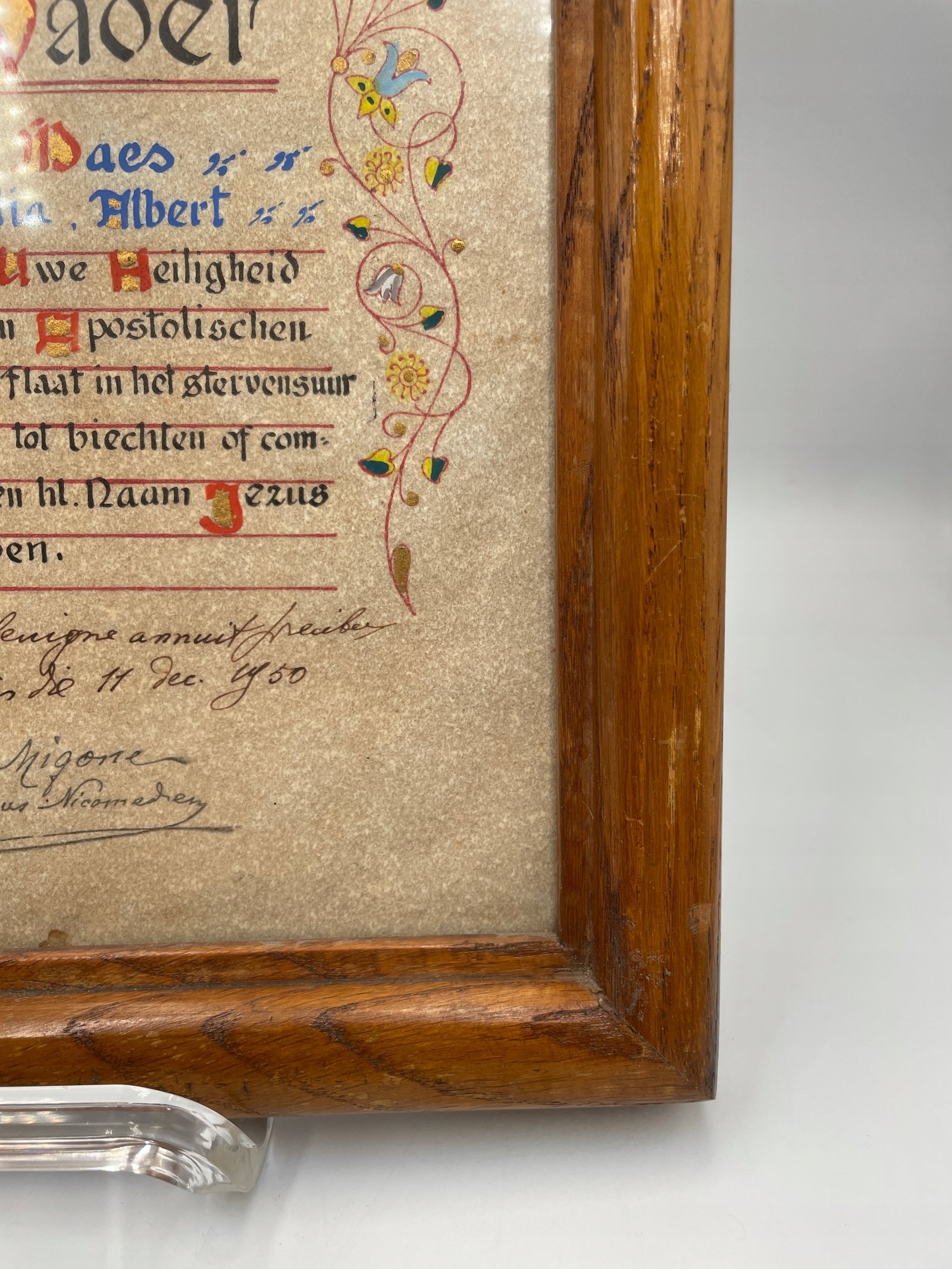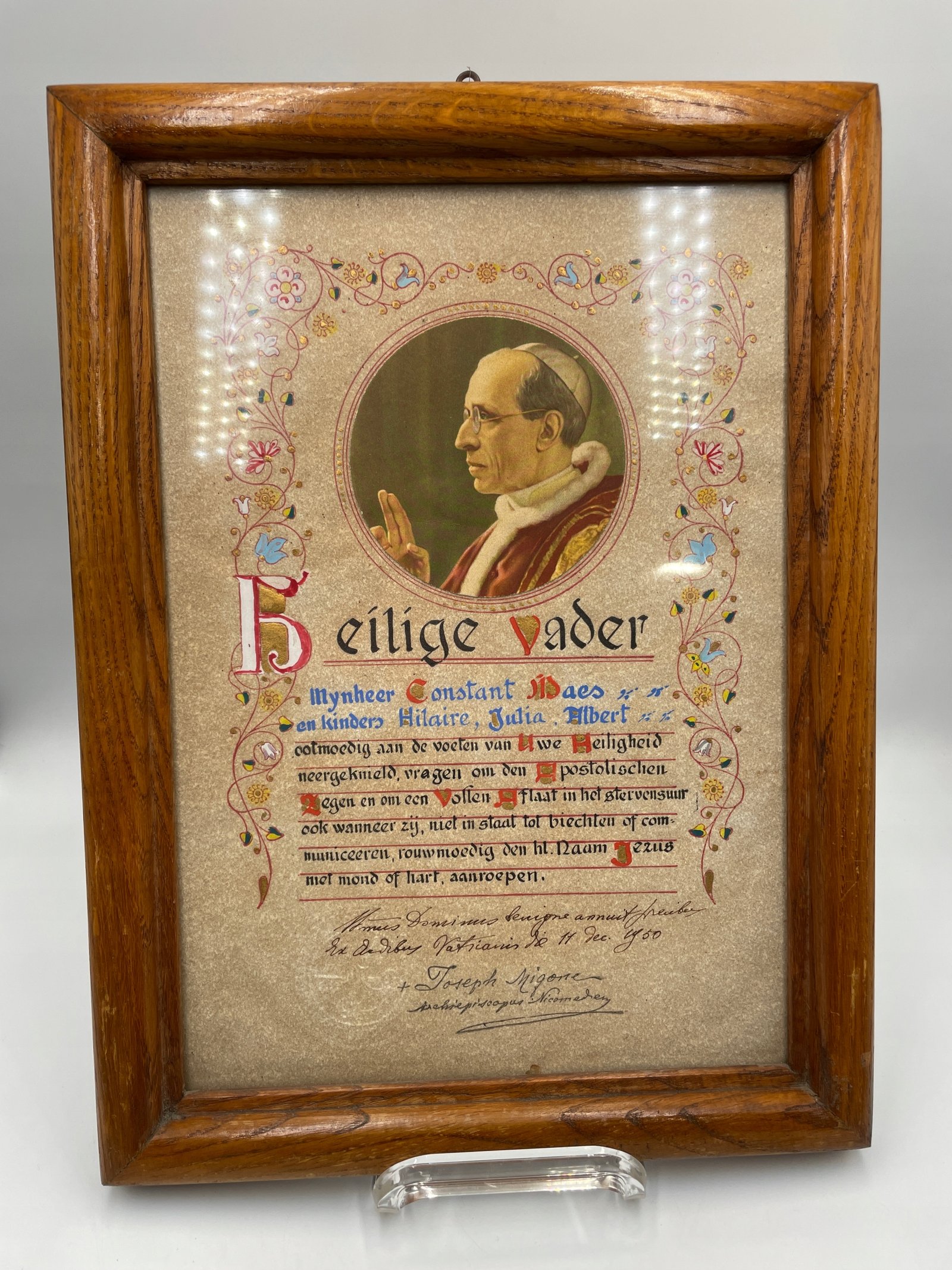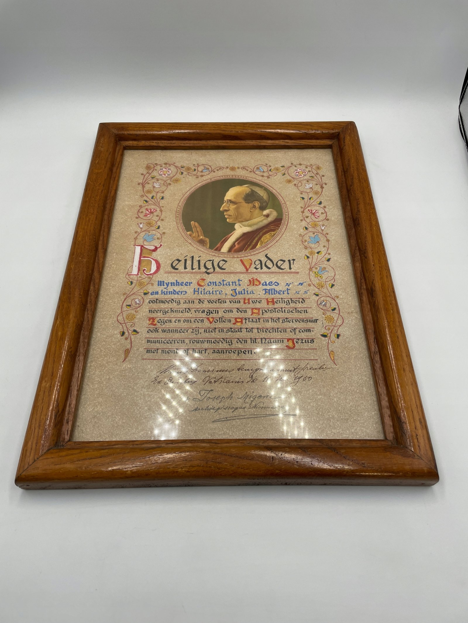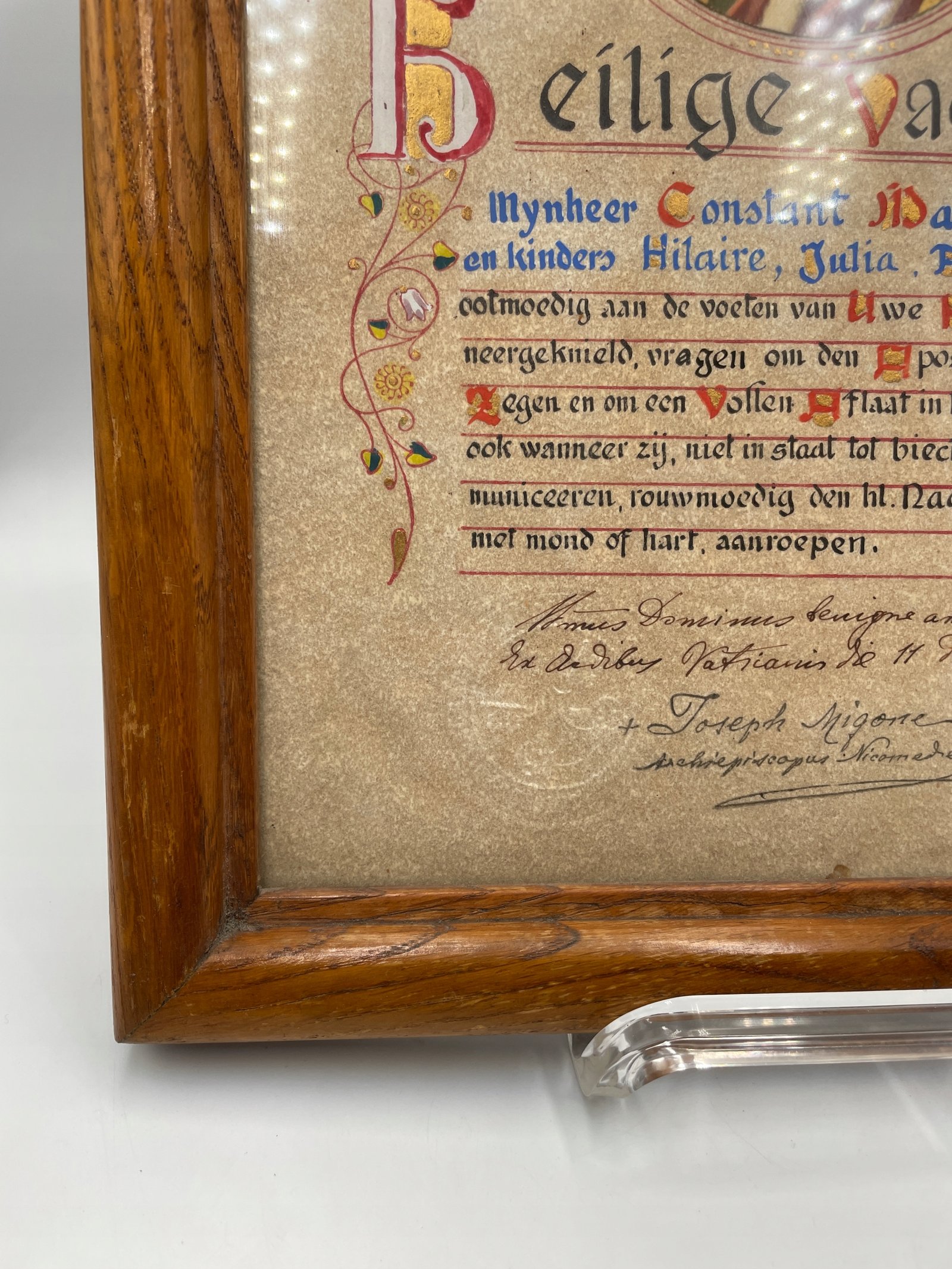 Vintage katolicki certyfikat religijny przez Papieża Piusa XII 1950r.