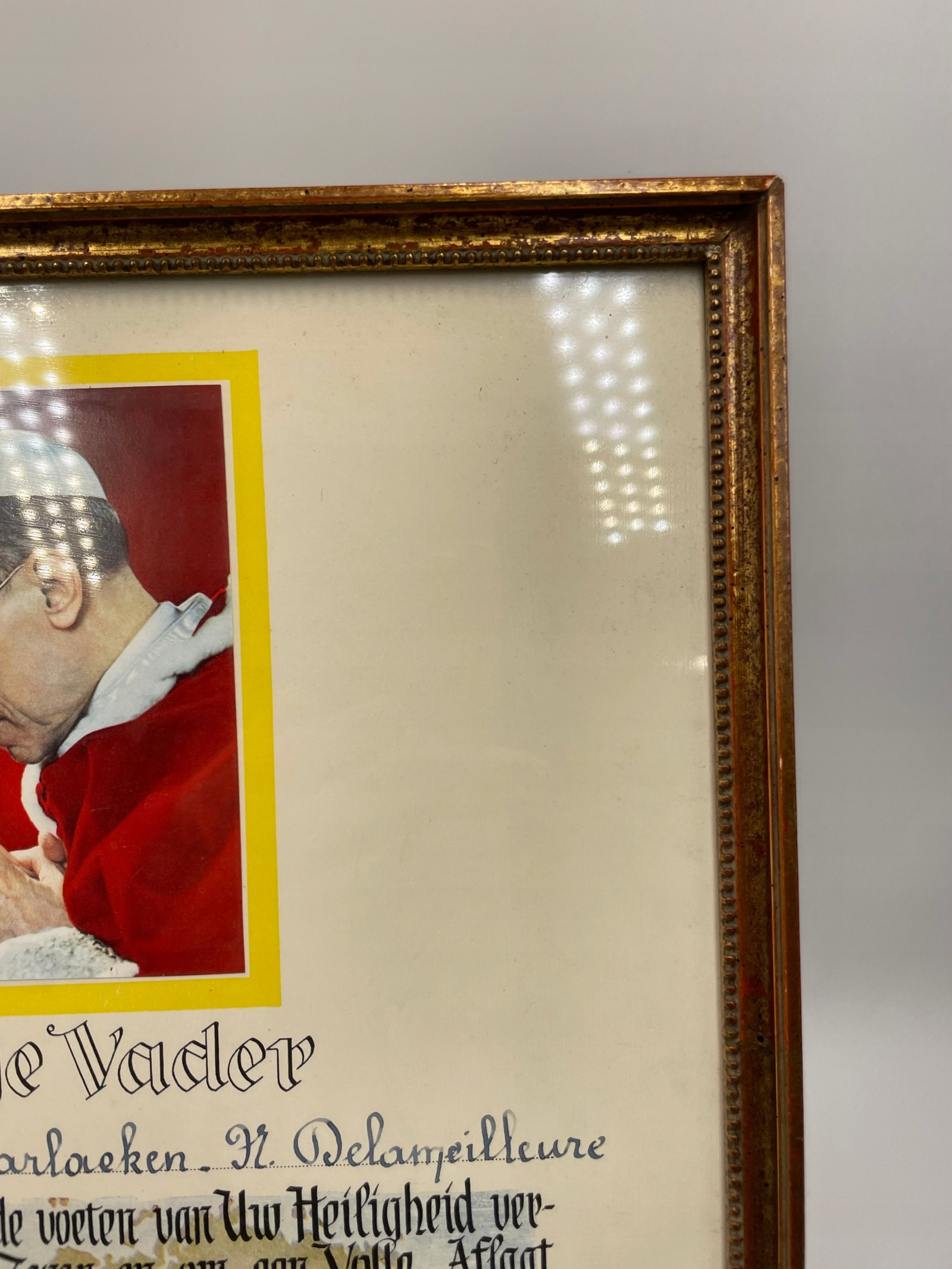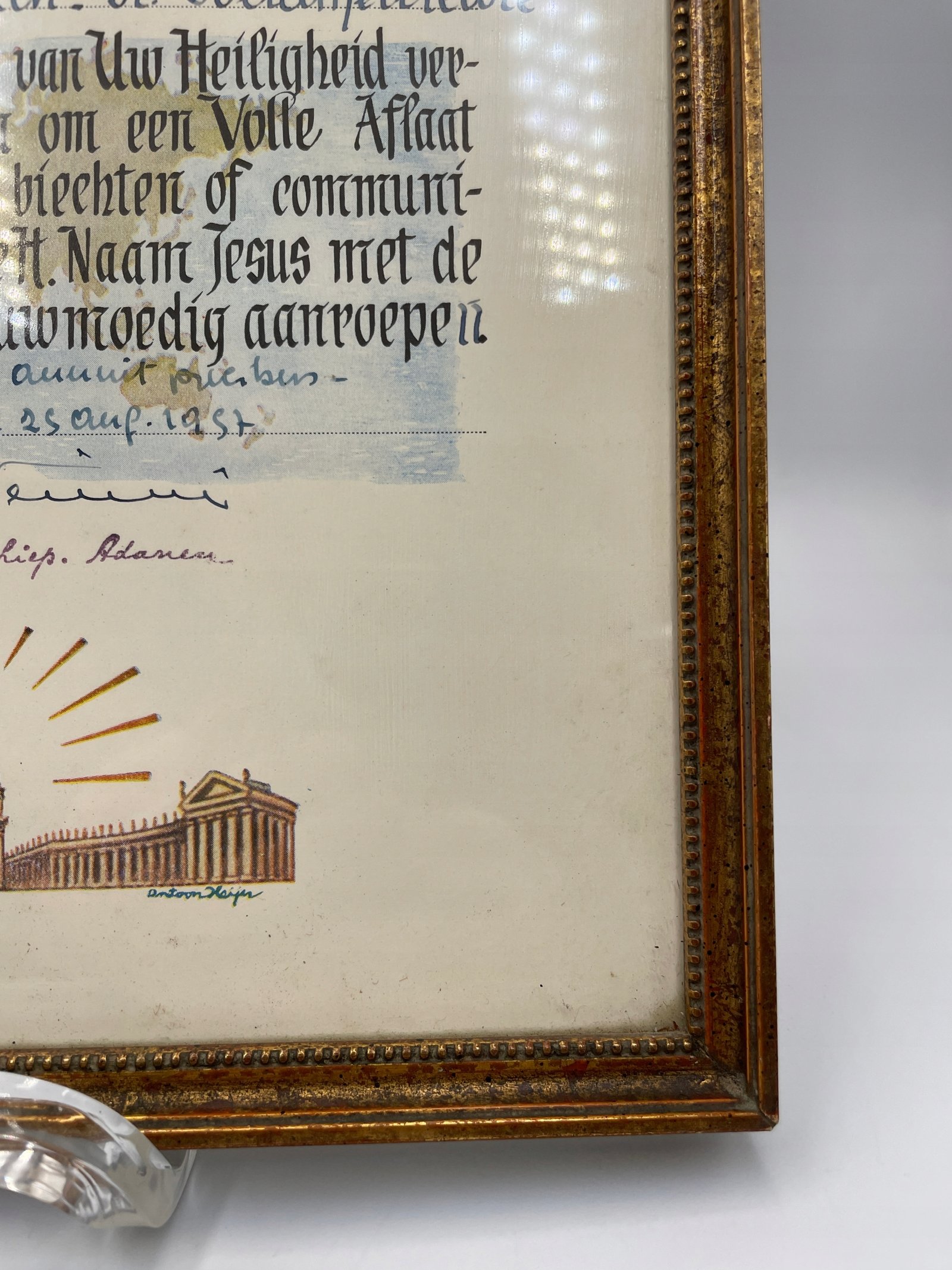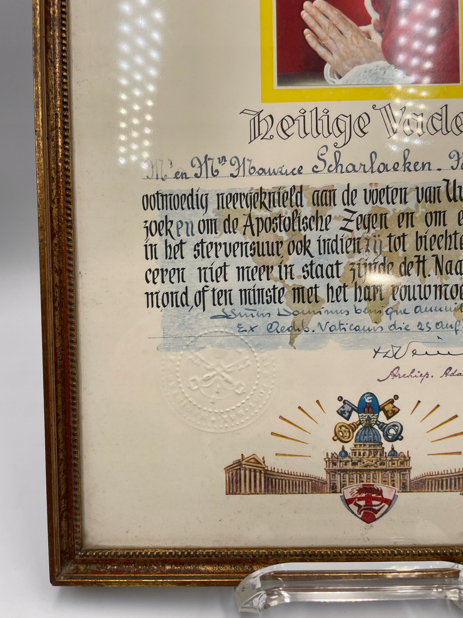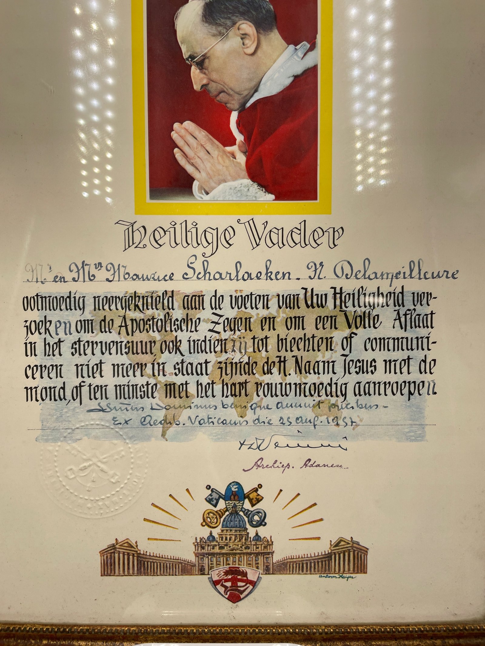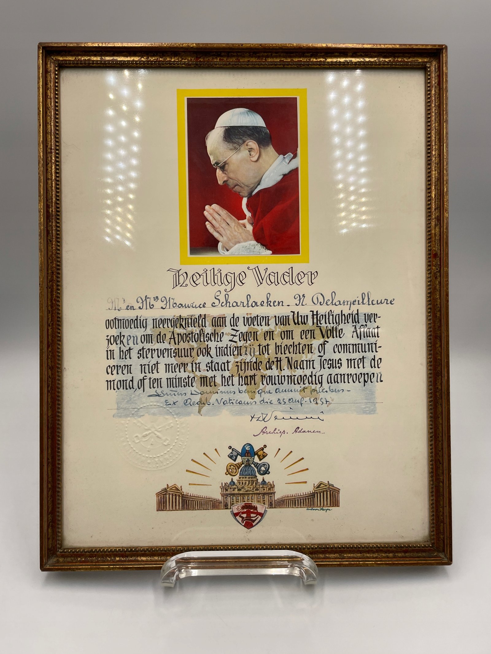 Vintage katolicki certyfikat religijny przez Papieża Piusa XII 1954r.