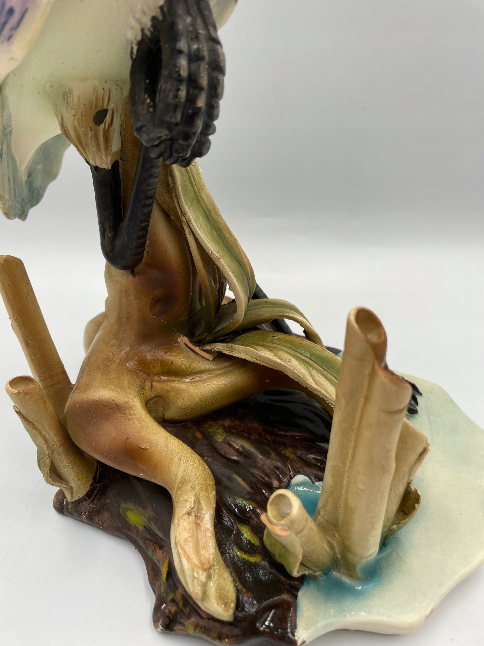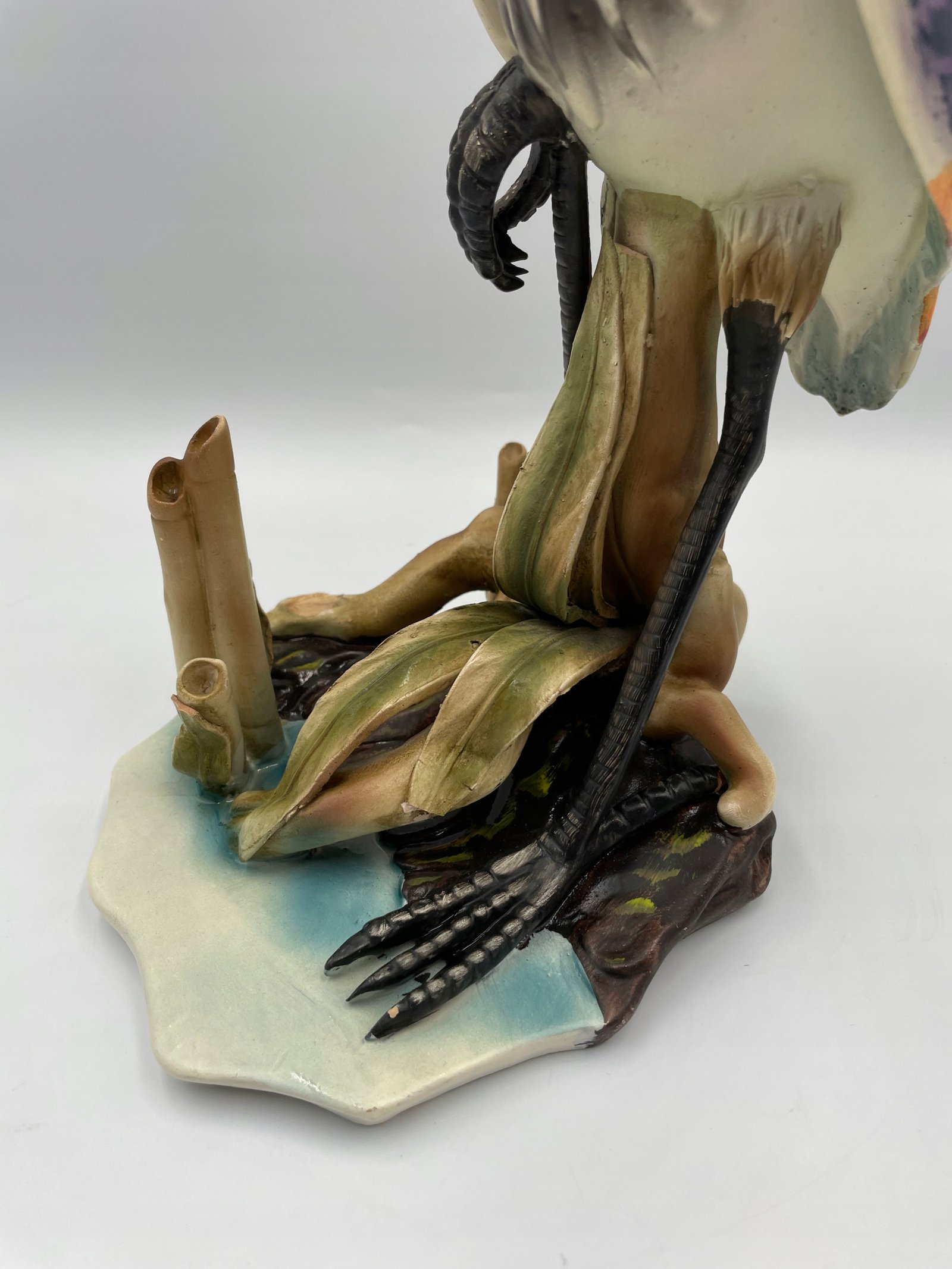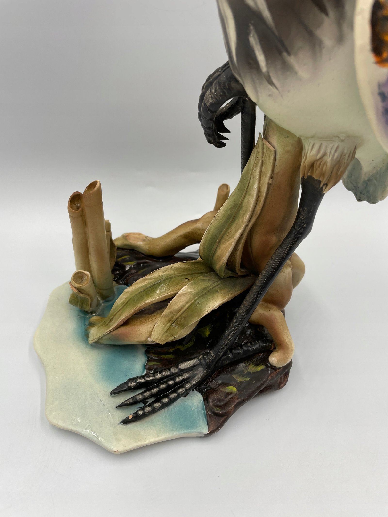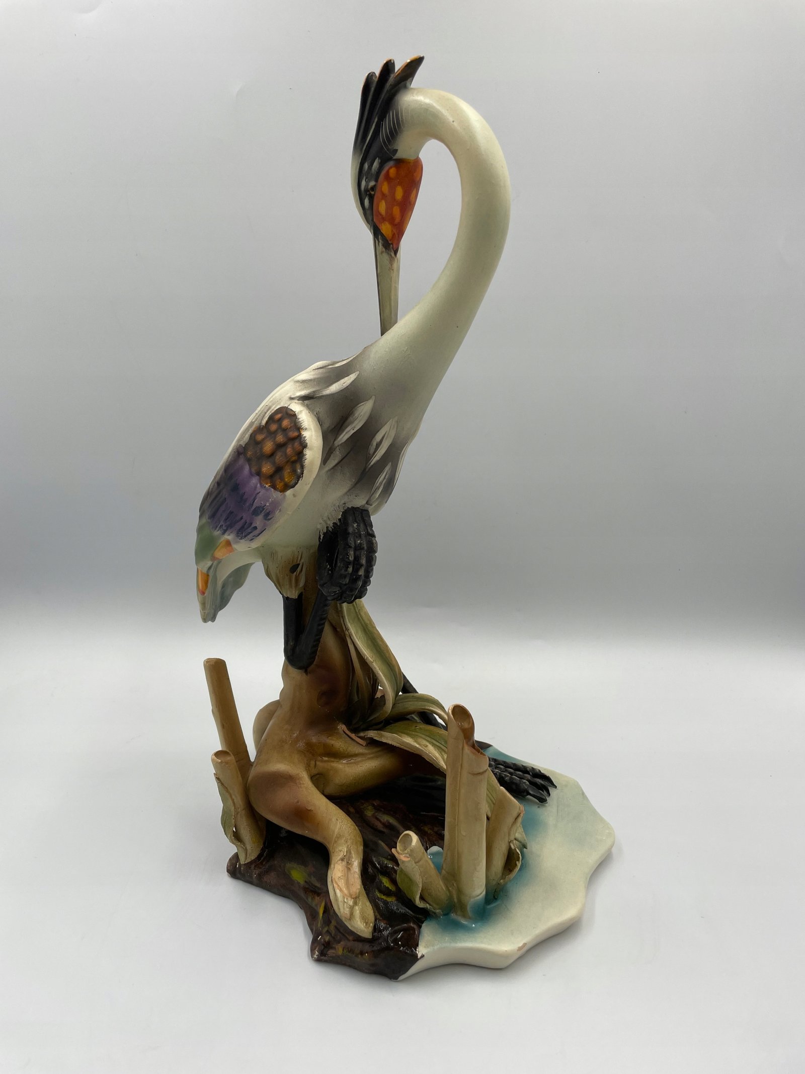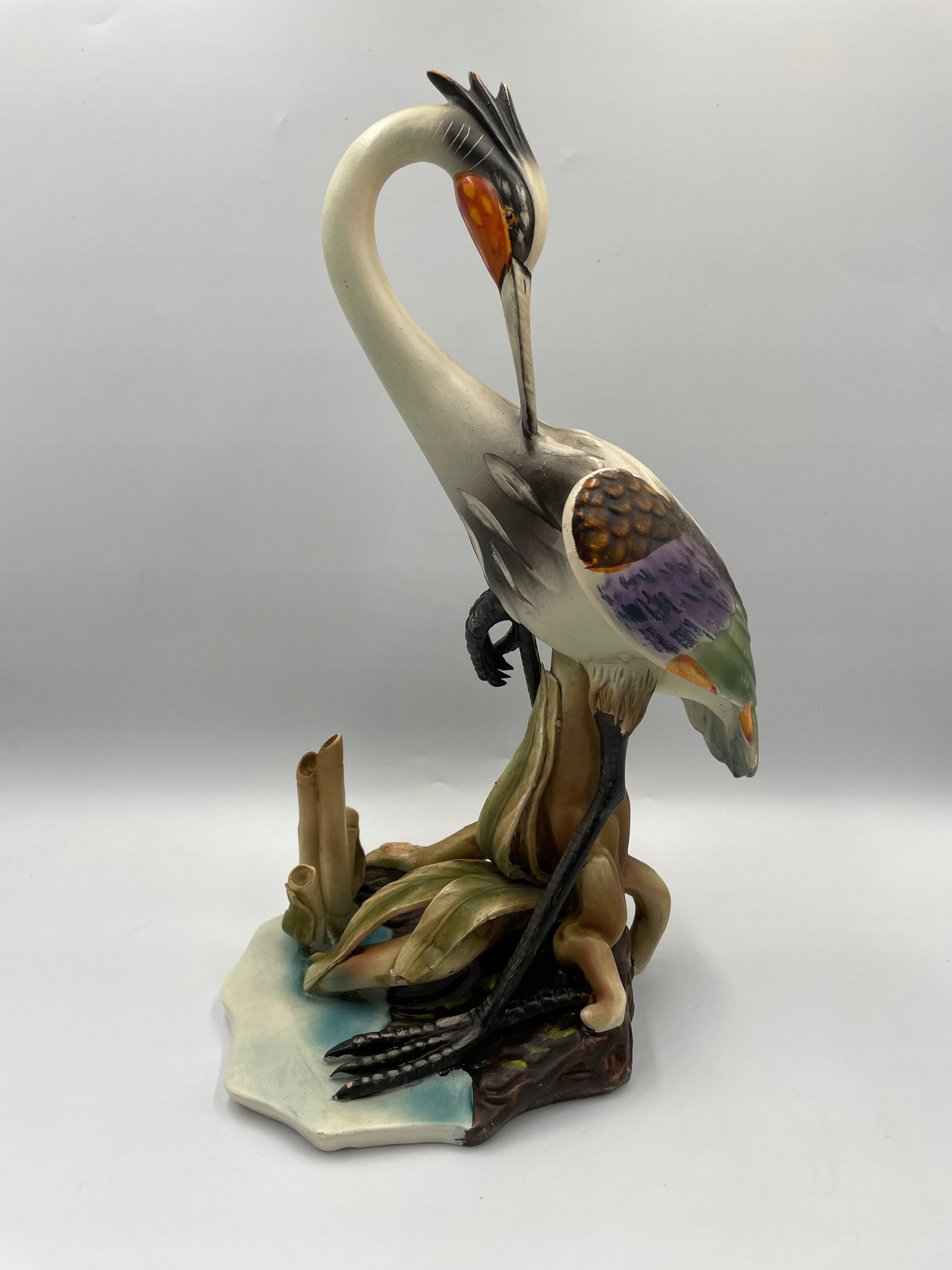 Elegancka Figurka Rzeźba Artystyczna przedstawiająca czaplę w stawie. Przypisywany „Giuseppe Armani” . Wyprodukowano we Włoszech. Tradycyjny styl Capodimonte
