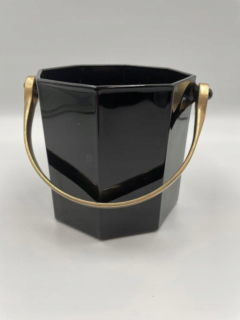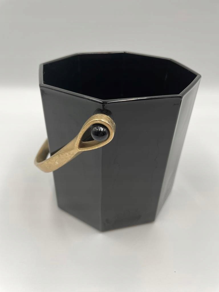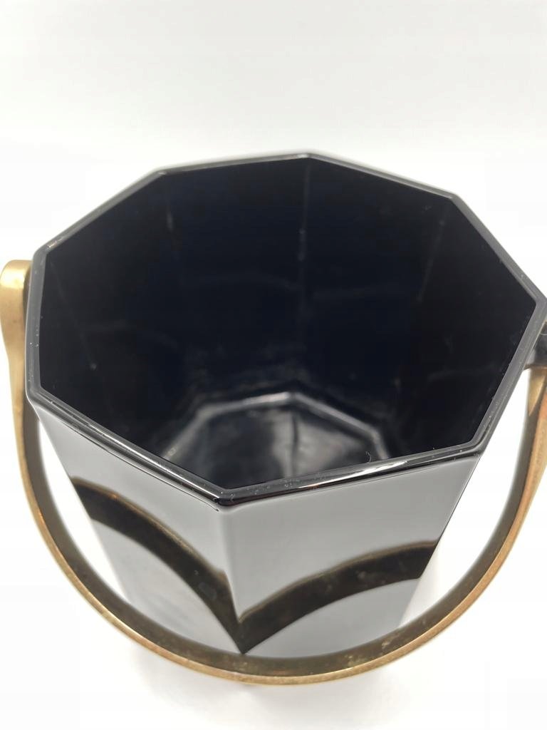 1960/1970 vintage. Środek wieku. Nowoczesny Redux. Odrodzenie stylu art déco. Czarna szklana waza z lodem. Projekt ARCOROC France OCTIME.