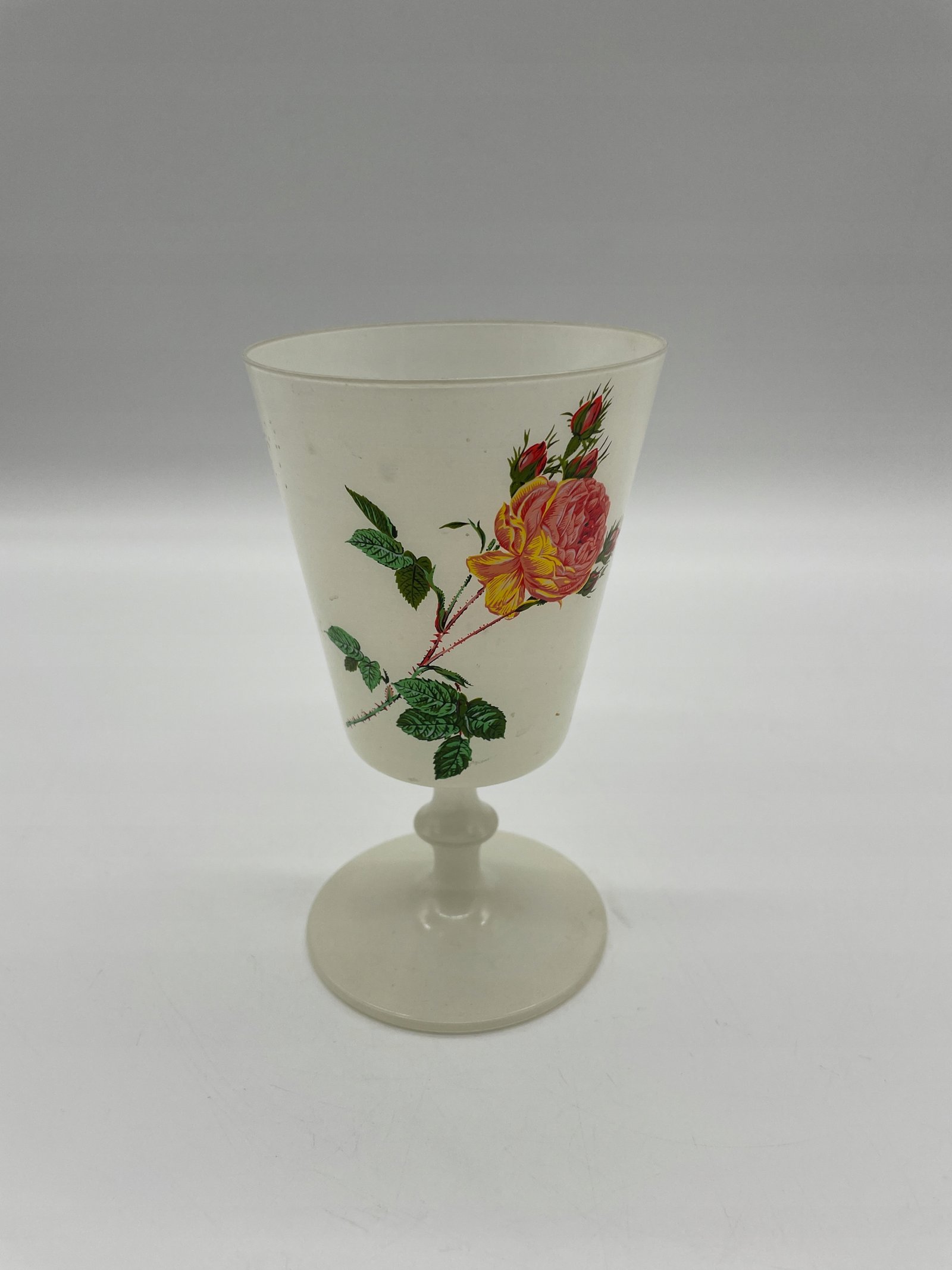 Waza amfora szkło 1950 Rosa Centifolia różowy dekor vintage