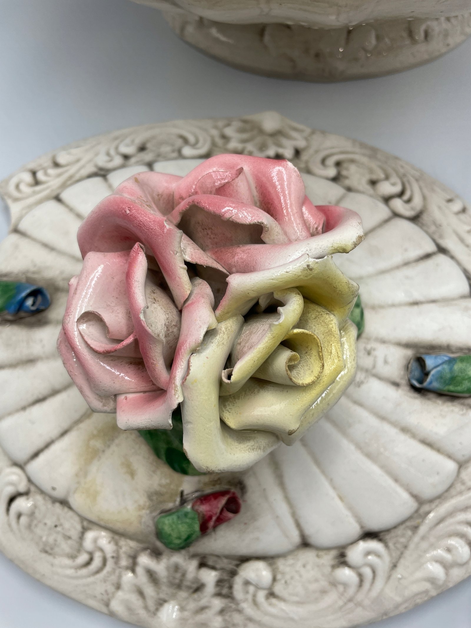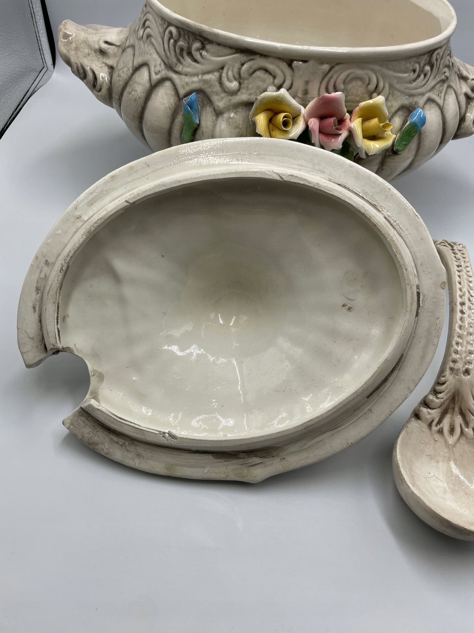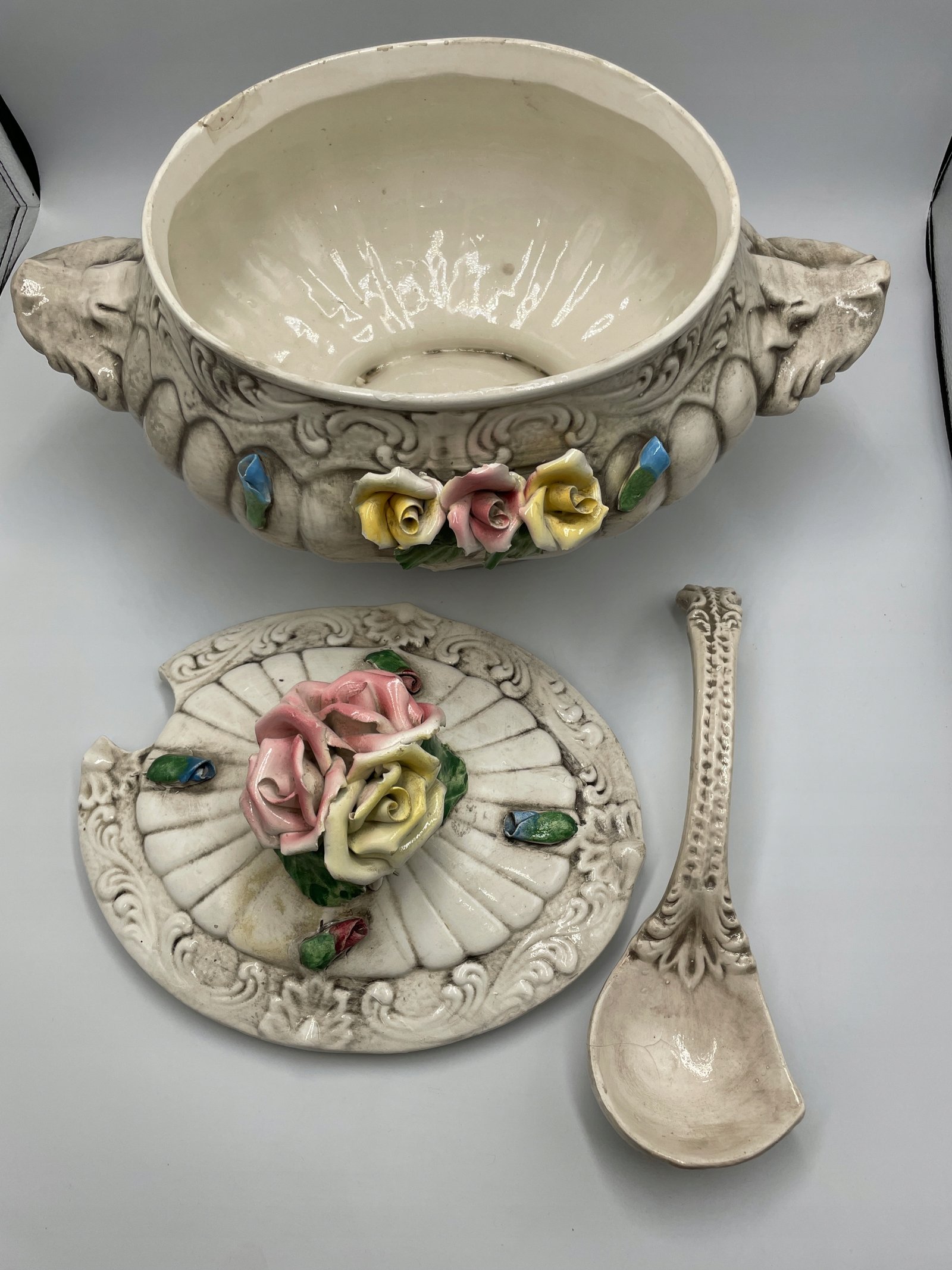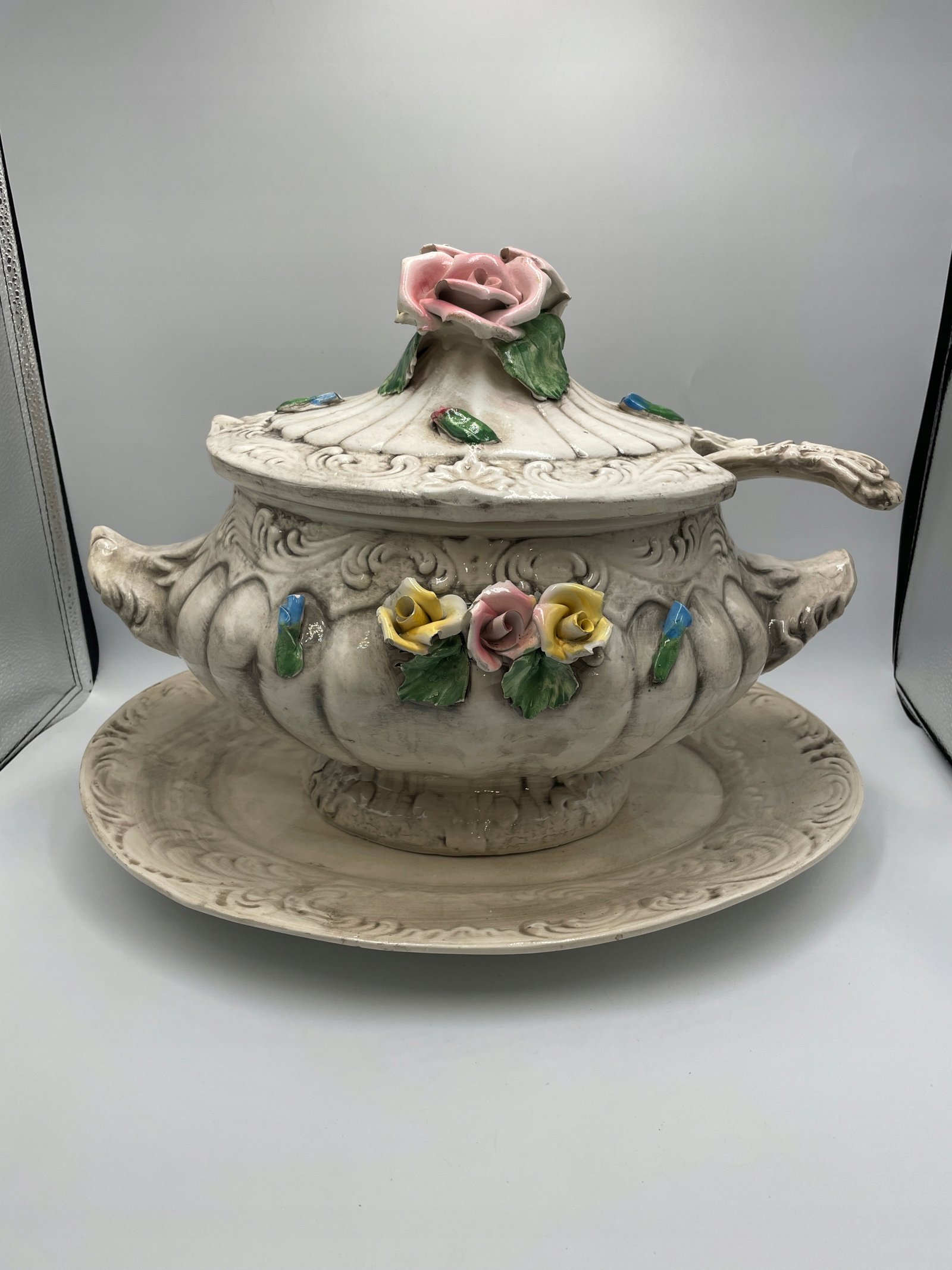 Waza do zupy ceramiczna Włochy z motywem kwiatowym i tacą