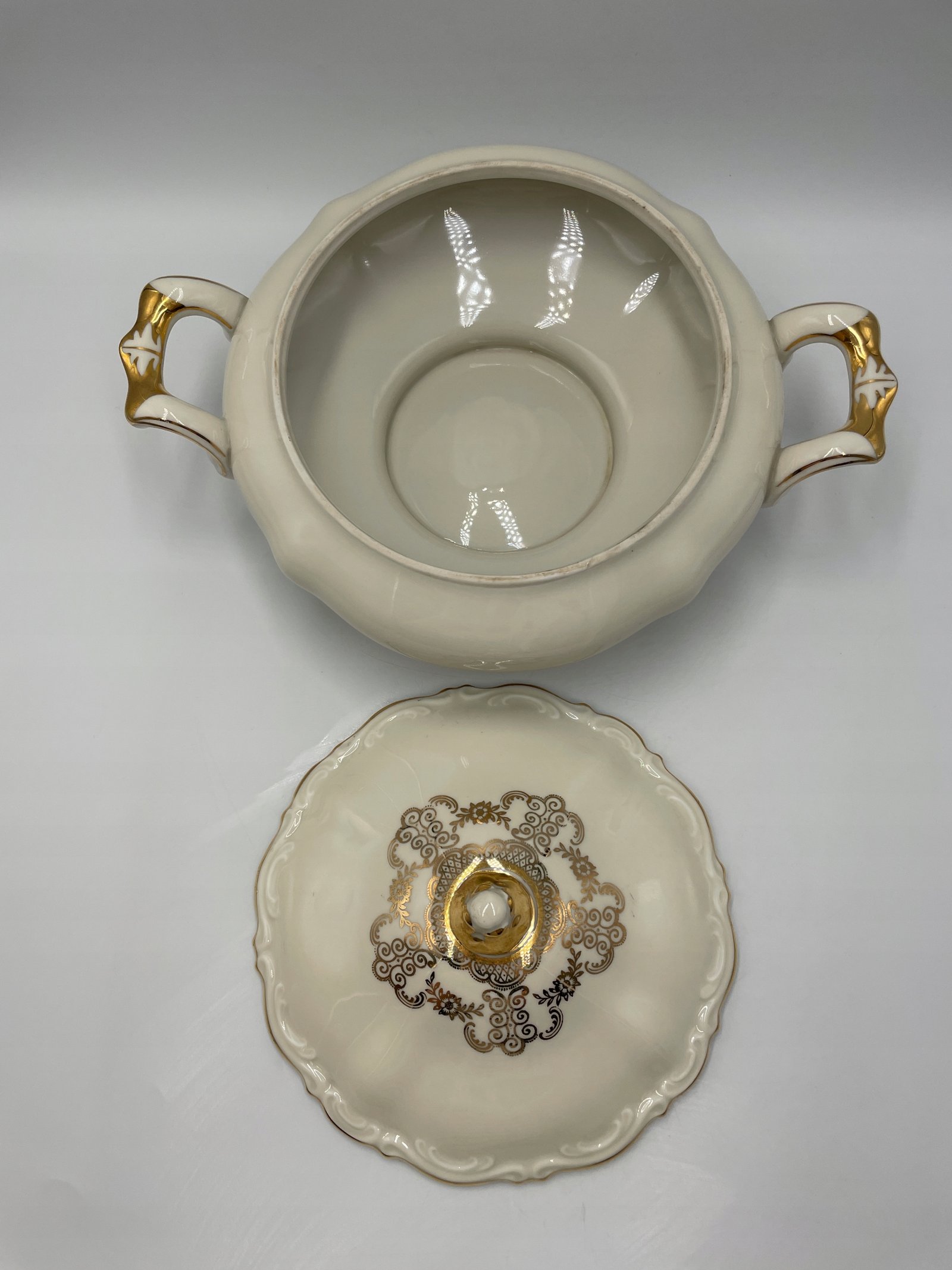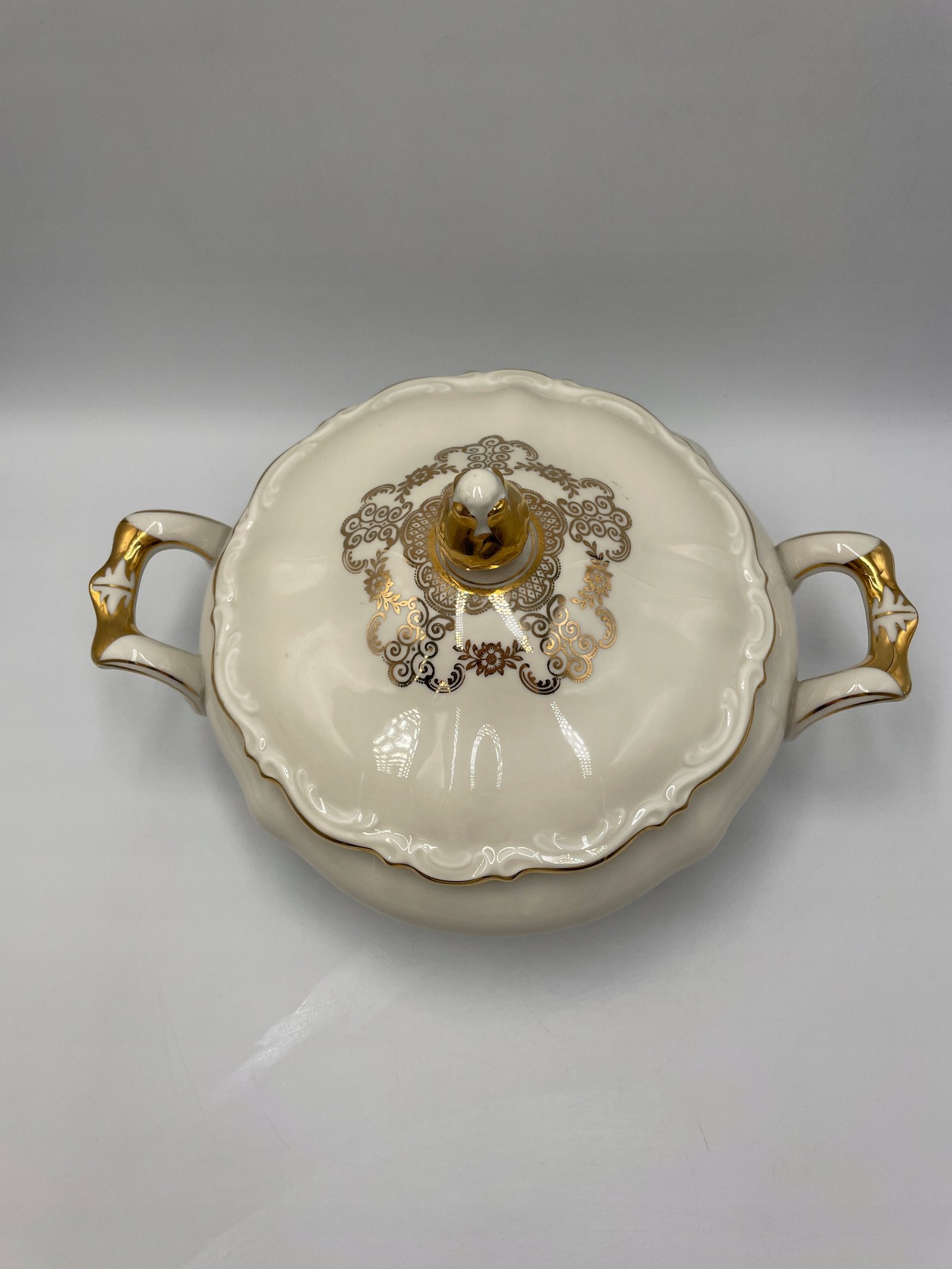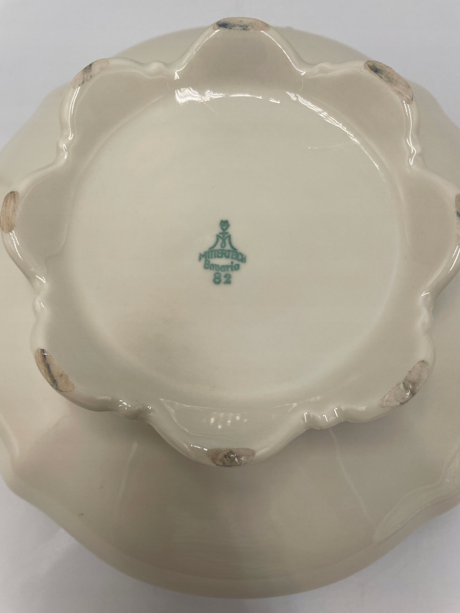 Vintage przedmioty mogą mieć drobne rysy, odpryski, niektóre zabrudzenia, ślady użytkowania i zmiany tekstury spowodowane starzeniem się. Ponieważ stopień zużycia może różnić się w zależności od indywidualnego postrzegania, prosimy o zrozumienie i akceptację cech starych przedmiotów. Będziemy zadowoleni, jeśli będziesz mógł/mogła cieszyć się niepowtarzalnym urokiem starych, dobrych przedmiotów.