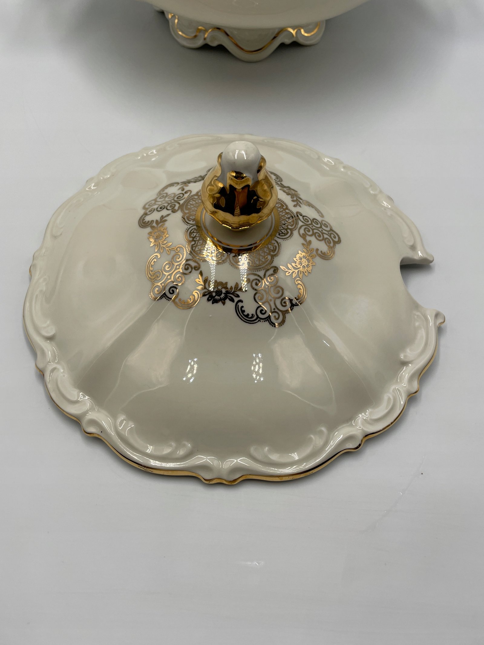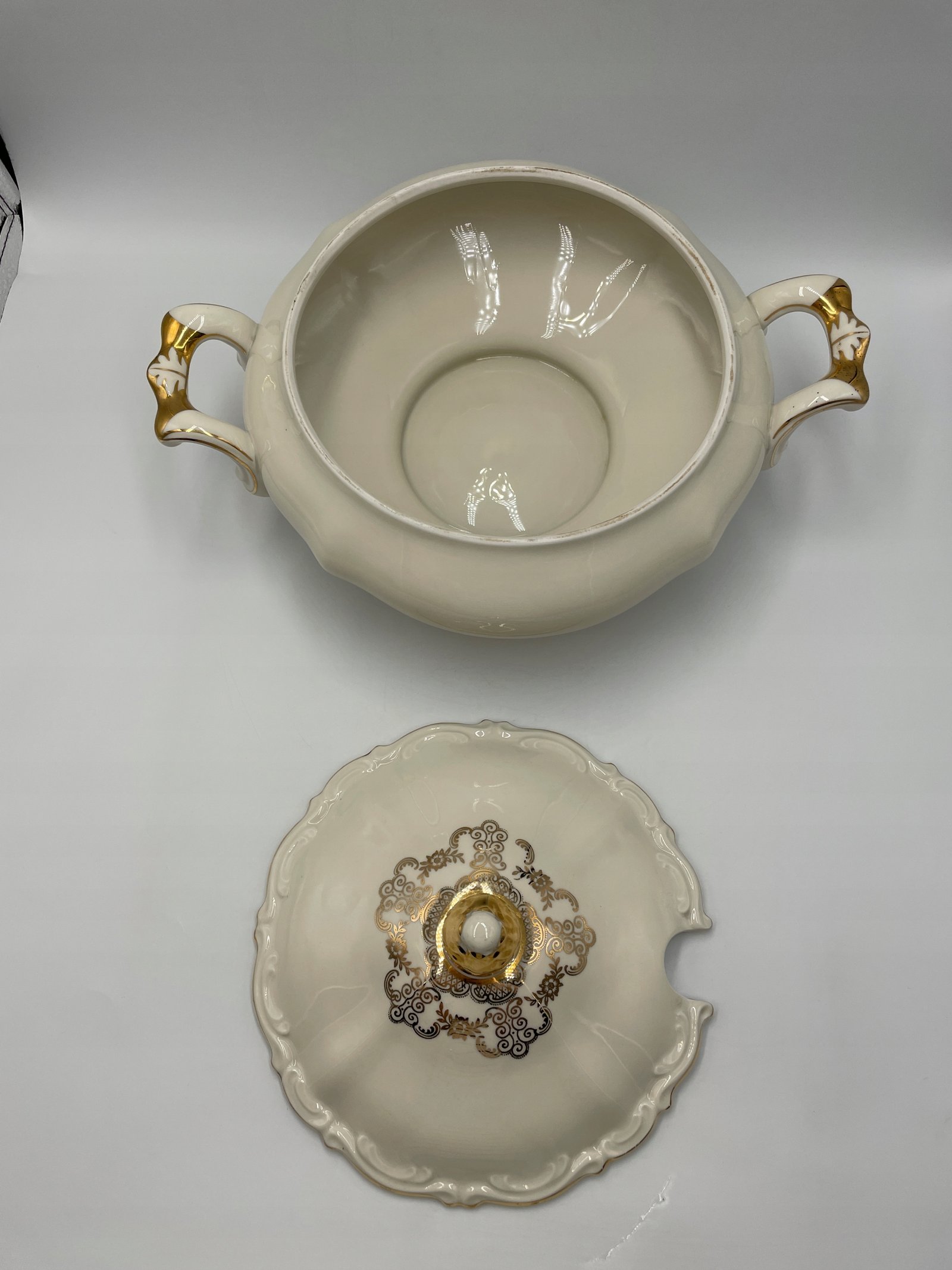 Vintage przedmioty mogą mieć drobne rysy, odpryski, niektóre zabrudzenia, ślady użytkowania i zmiany tekstury spowodowane starzeniem się. Ponieważ stopień zużycia może różnić się w zależności od indywidualnego postrzegania, prosimy o zrozumienie i akceptację cech starych przedmiotów. Będziemy zadowoleni, jeśli będziesz mógł/mogła cieszyć się niepowtarzalnym urokiem starych, dobrych przedmiotów.