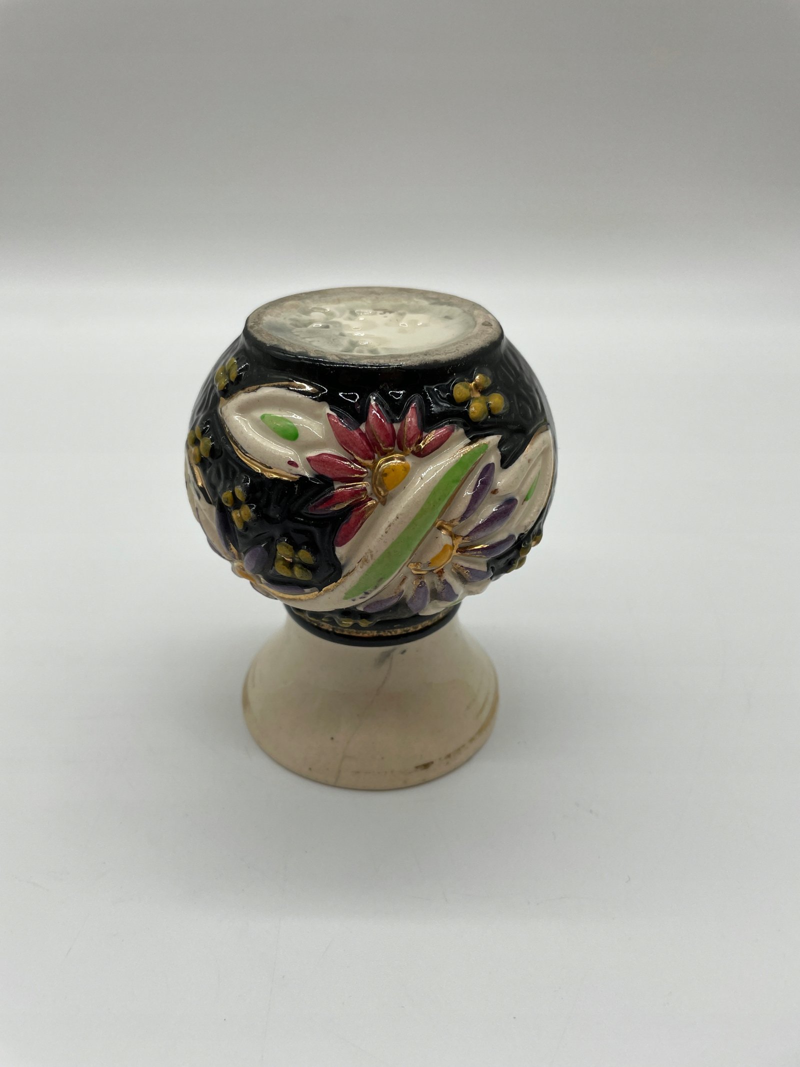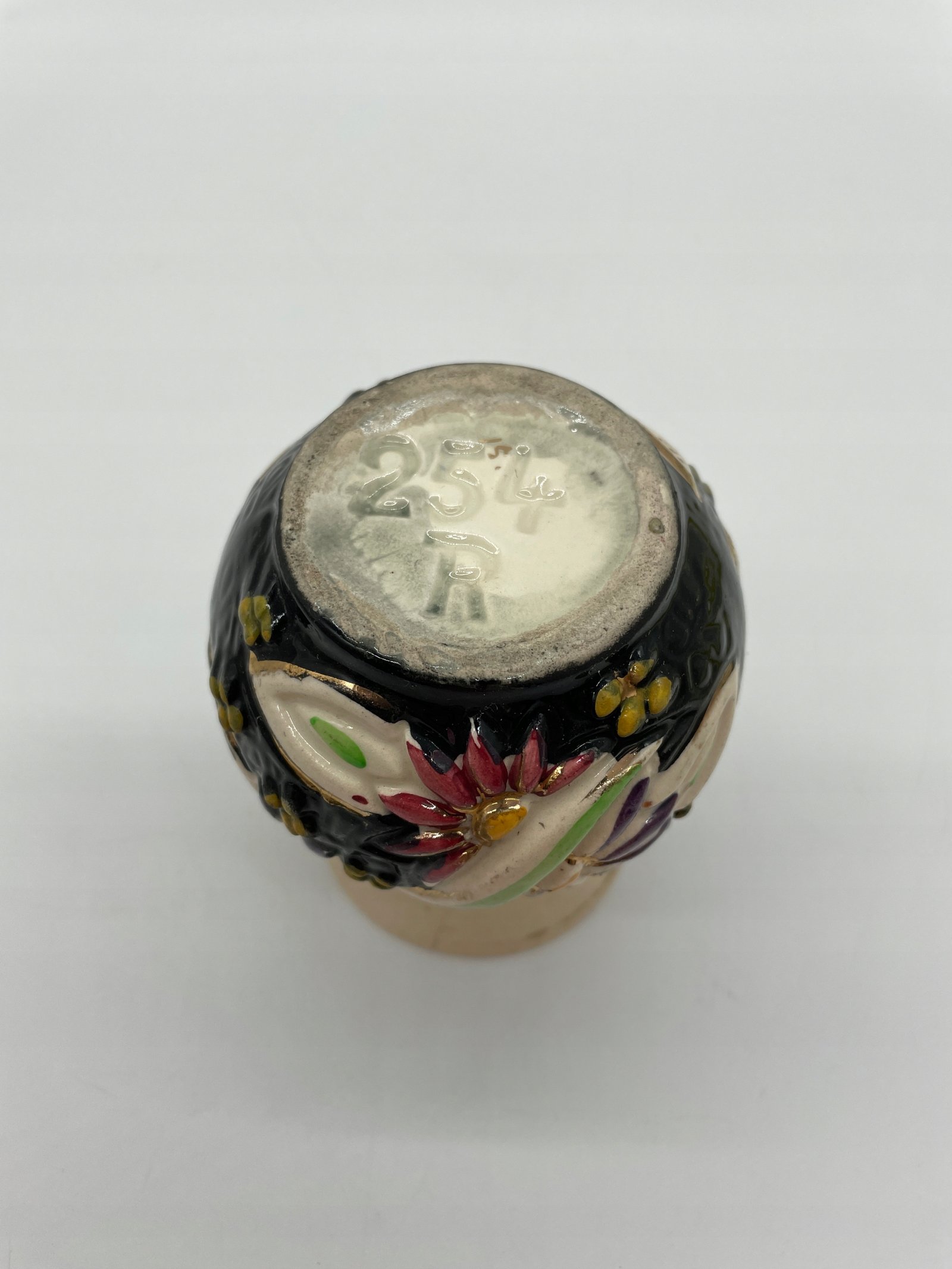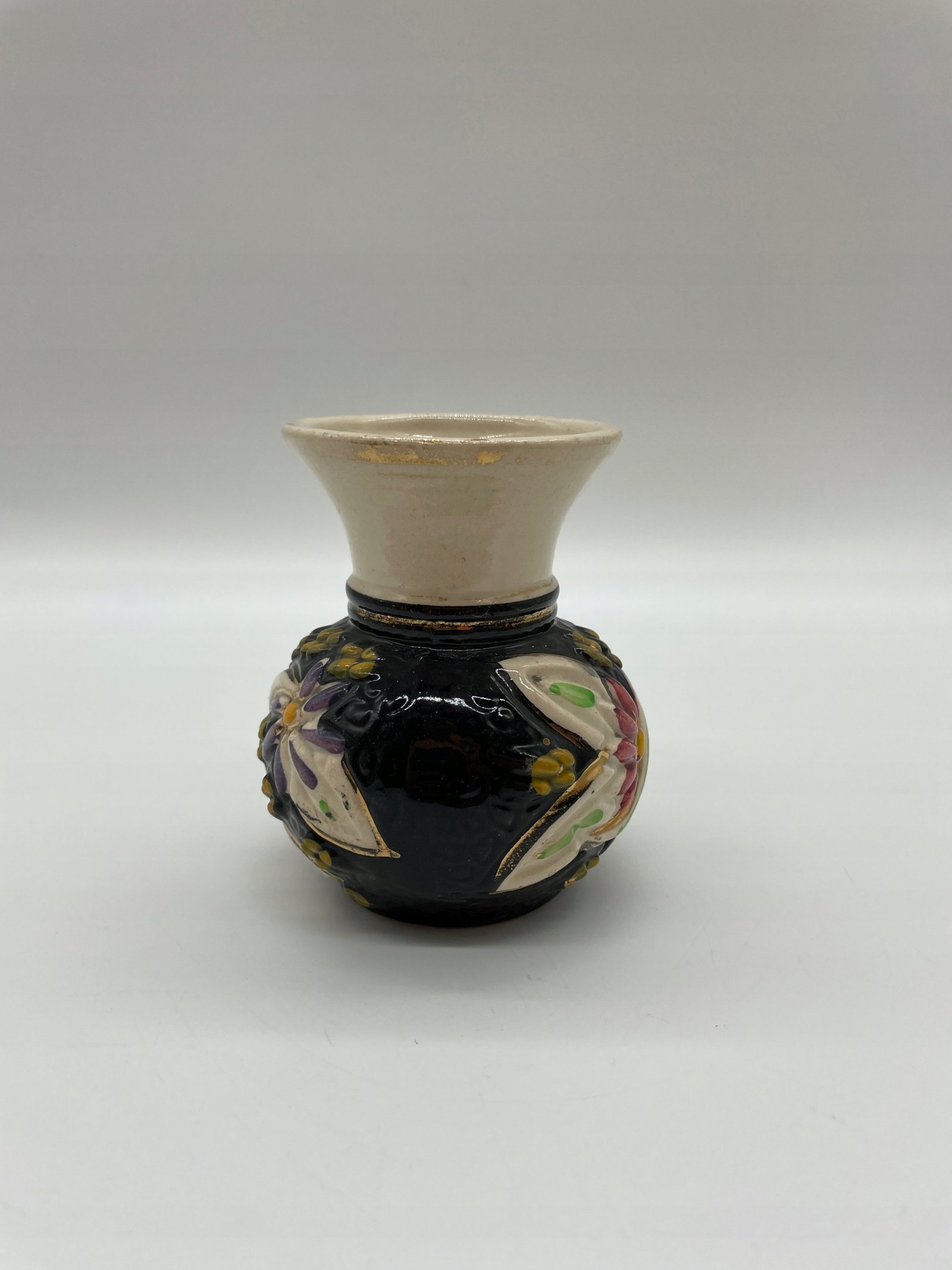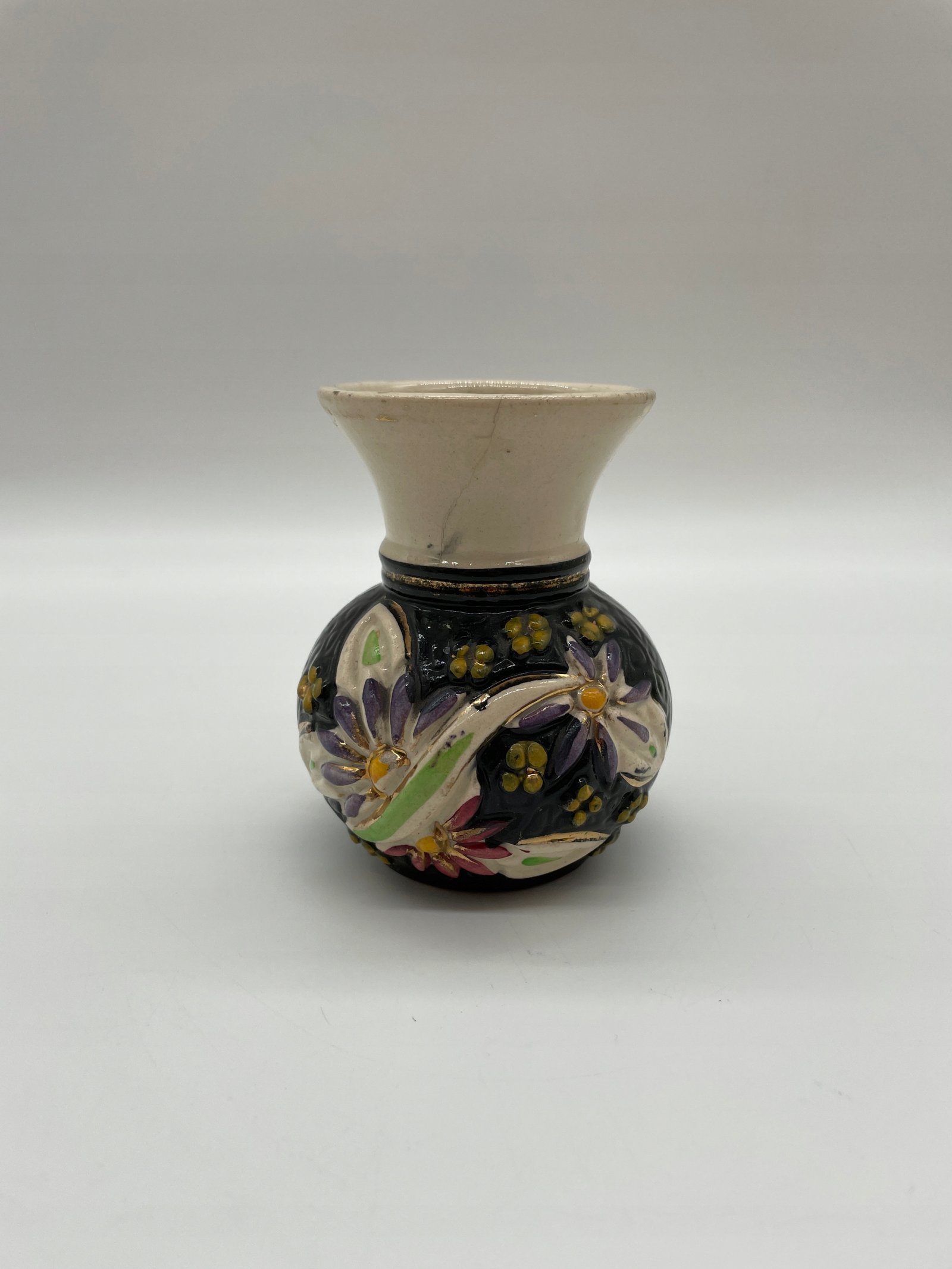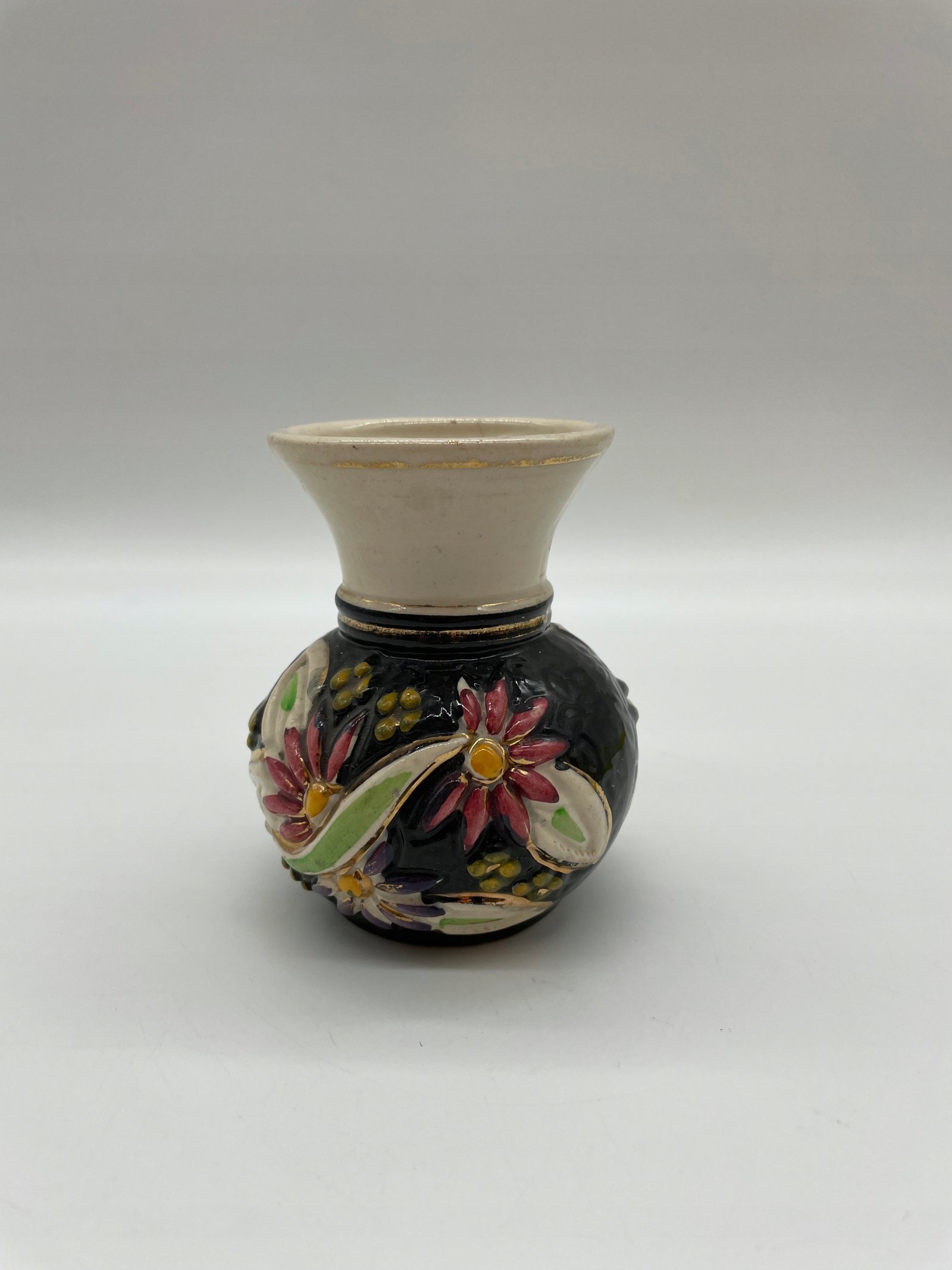 Wazon ceramiczny Europa ok.1950 reliefowe kwiaty, pęknięcie 10×8 cm