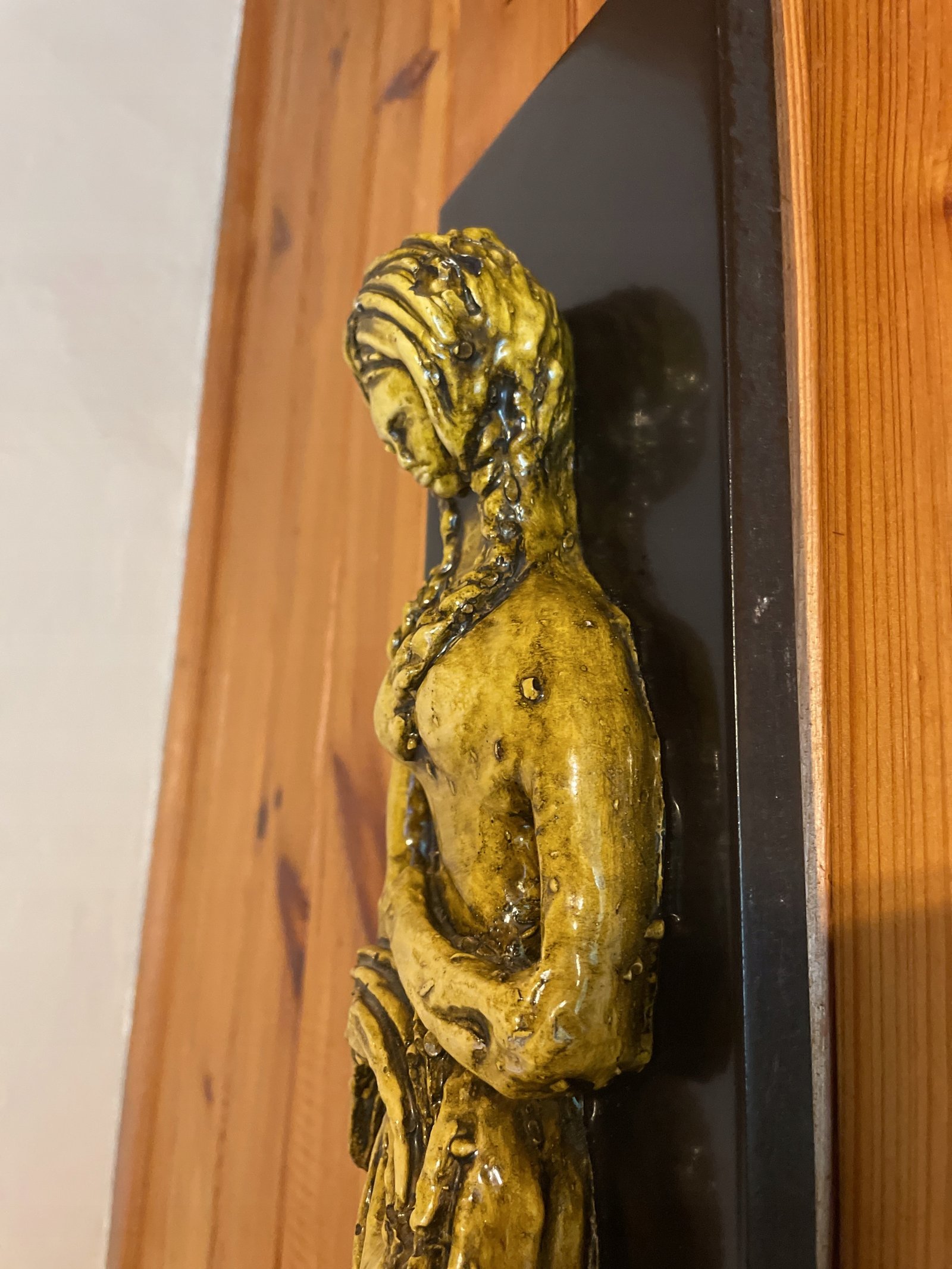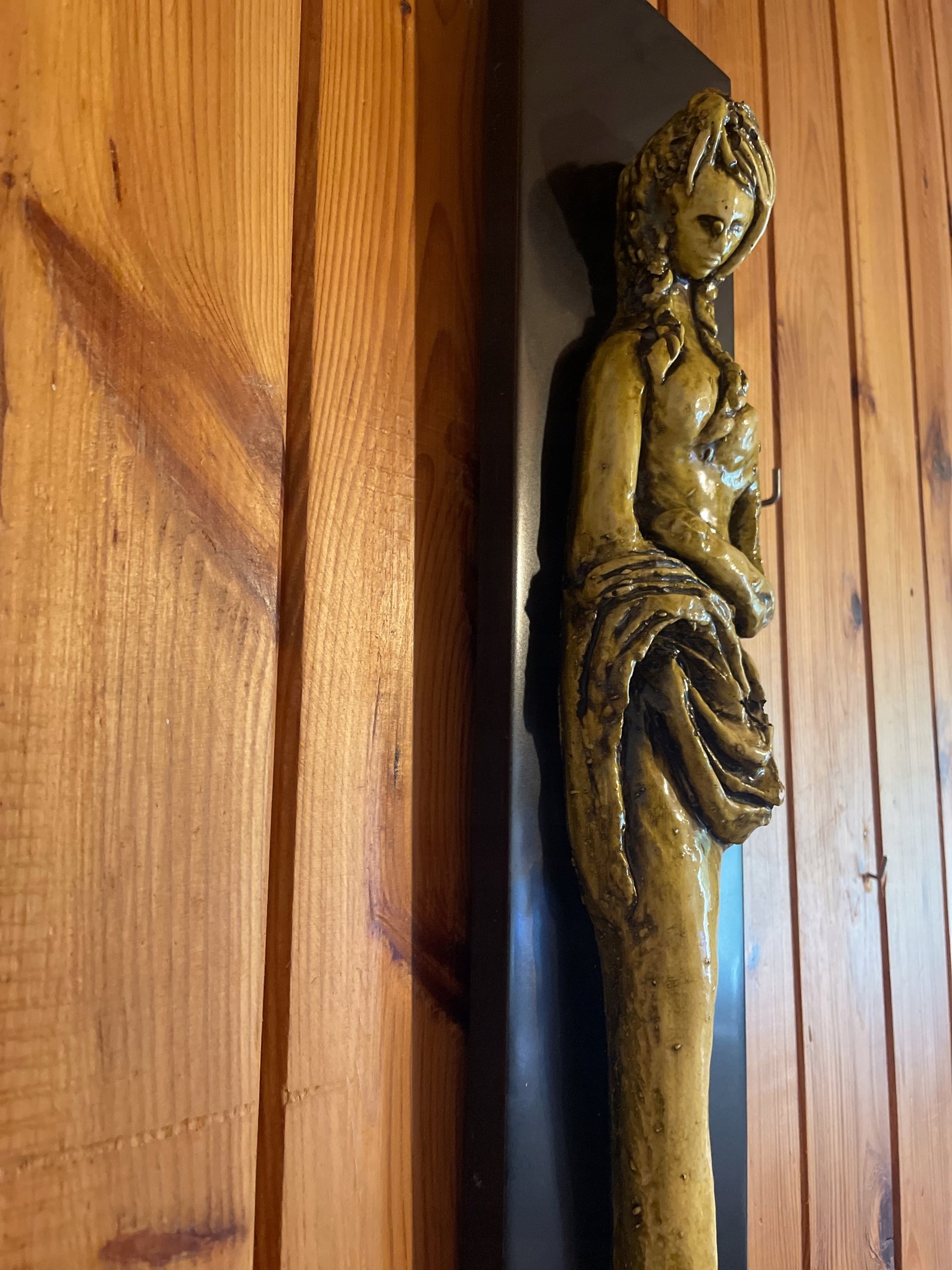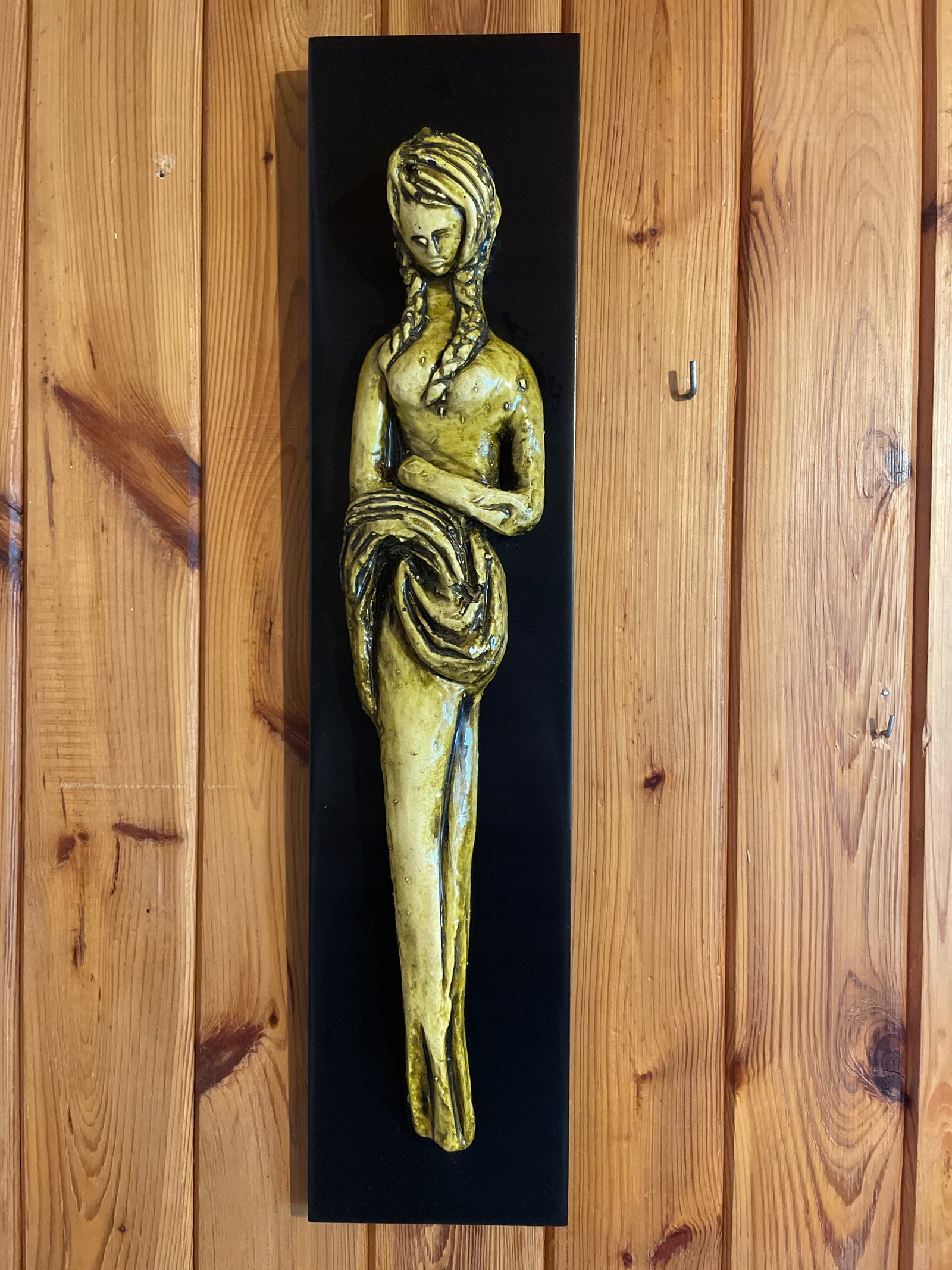 Wisząca figurka dziewczynki wykonana z gipsu na desce w stylu art deco 53,5х12