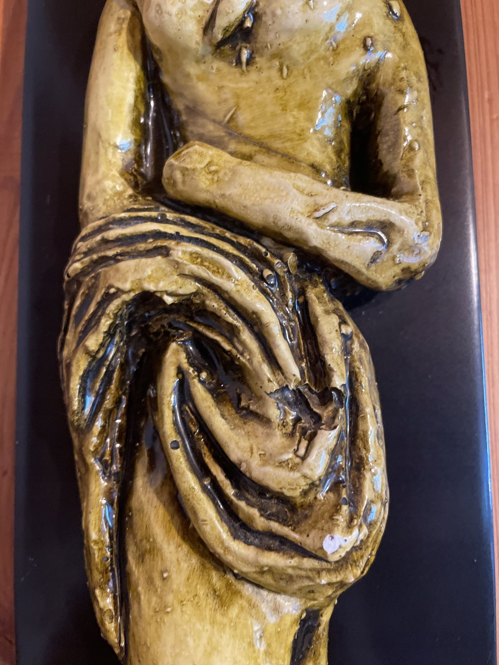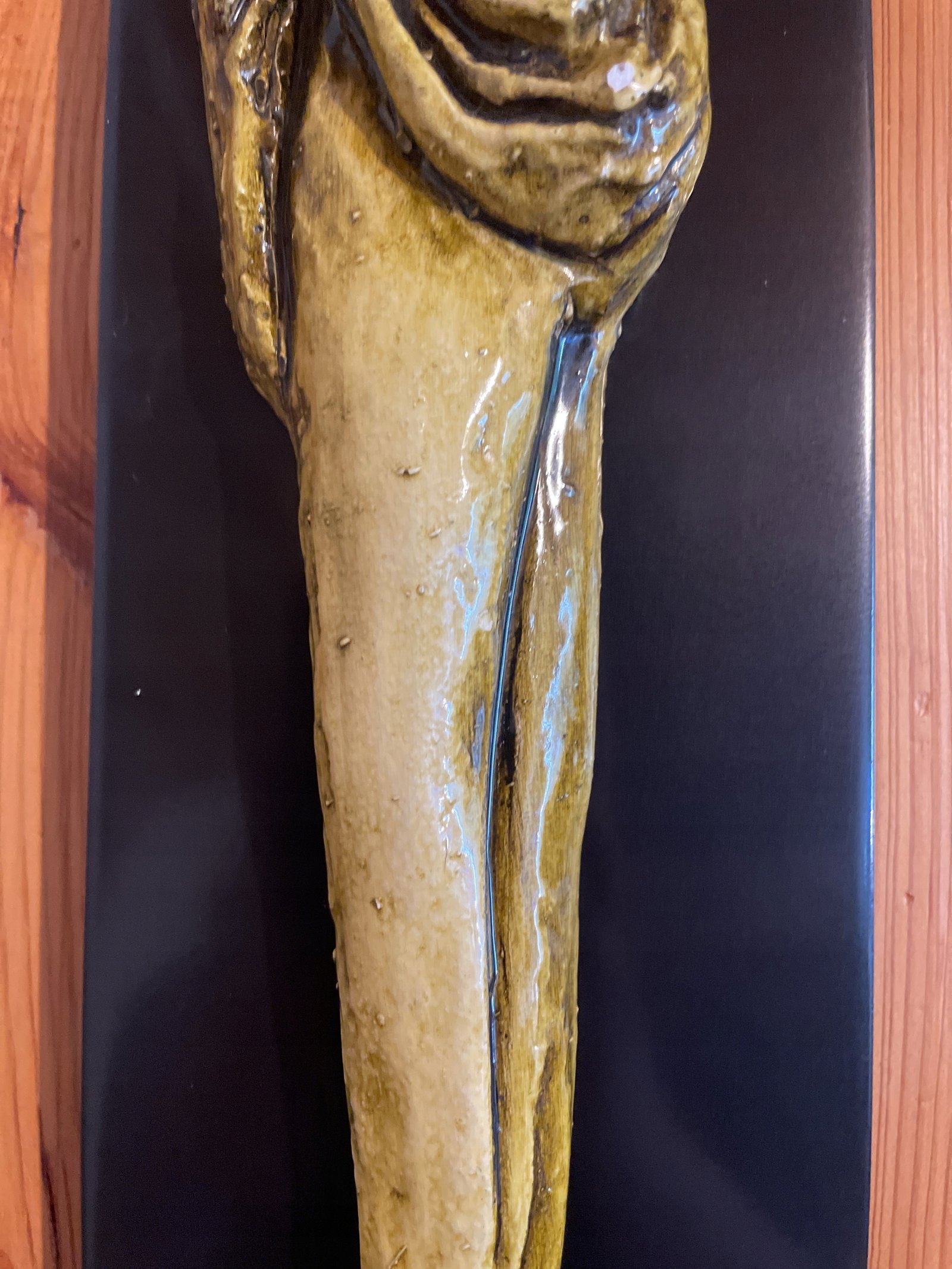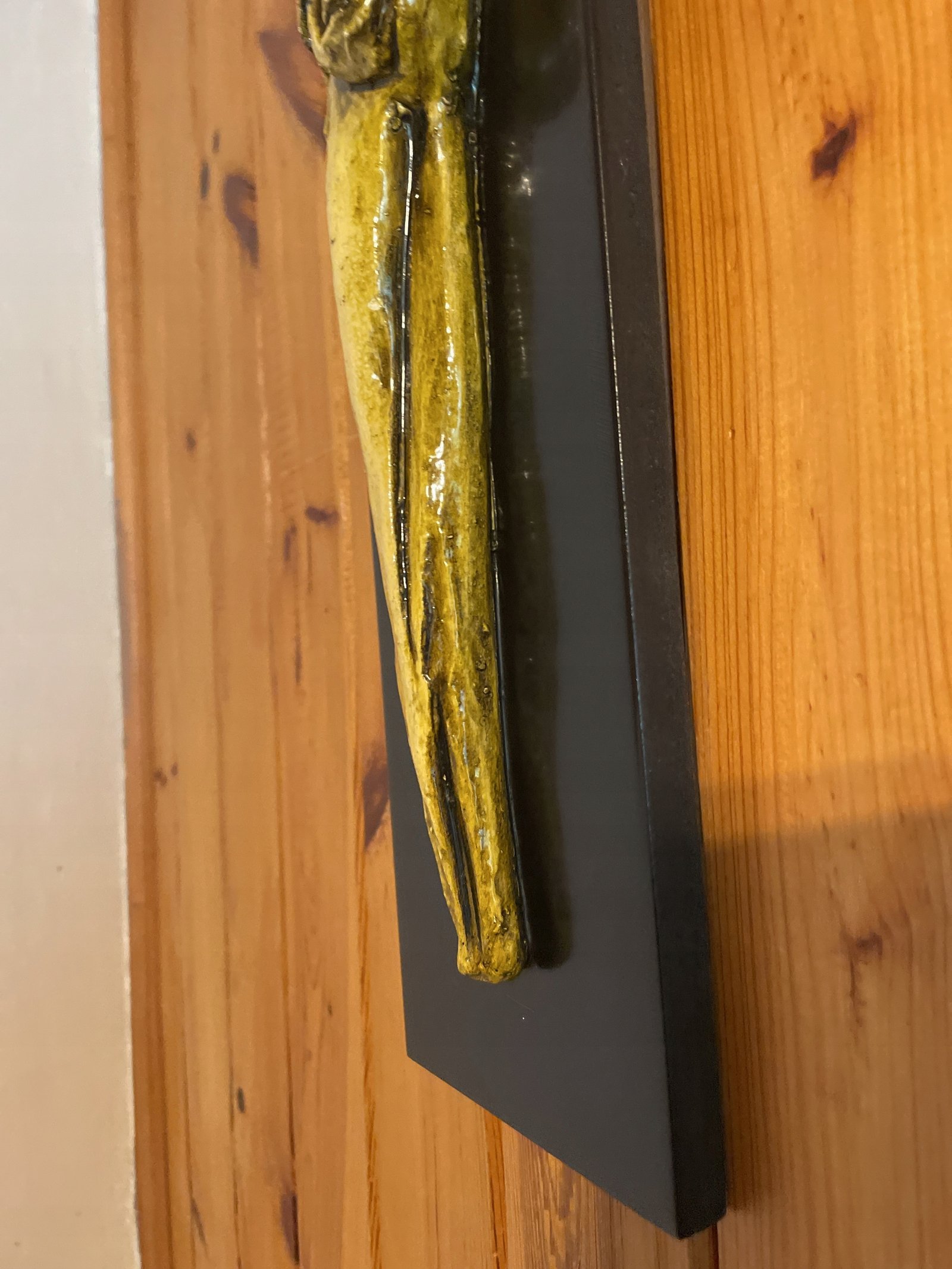 Wisząca figurka dziewczynki wykonana z gipsu na desce w stylu art deco 53,5х12
