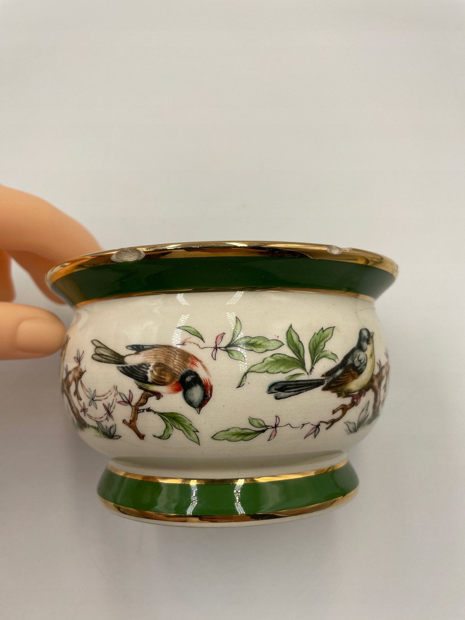 Wintage przedmioty mogą mieć drobne rysy, odpryski, niektóre zabrudzenia, ślady użytkowania i zmiany tekstury spowodowane starzeniem się. Ponieważ stopień zużycia może różnić się w zależności od indywidualnego postrzegania, prosimy o zrozumienie i akceptację cech starych przedmiotów. Będziemy zadowoleni, jeśli będziesz mógł/mogła cieszyć się niepowtarzalnym urokiem starych, dobrych przedmiotów.