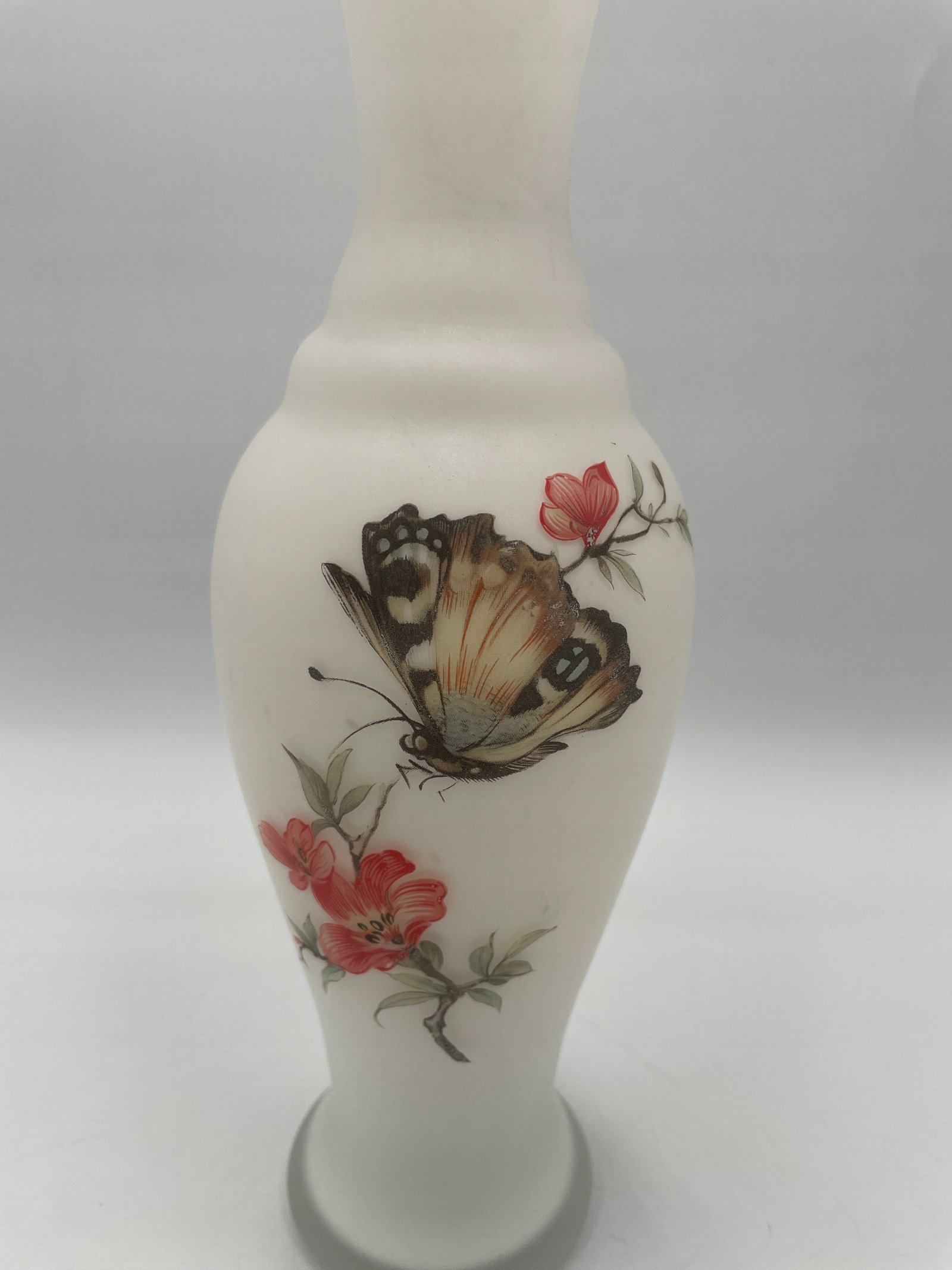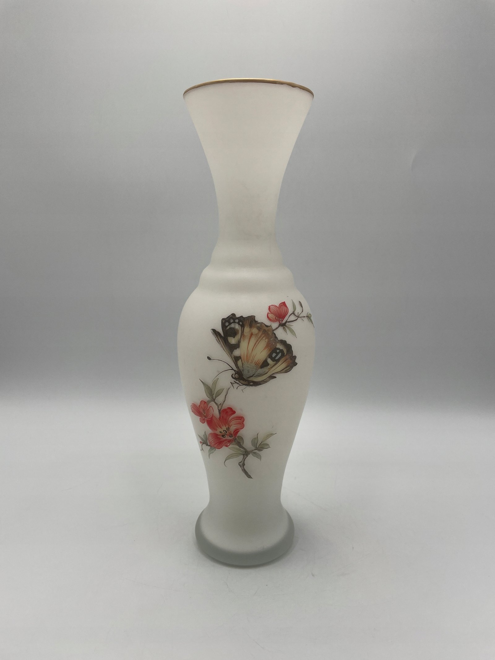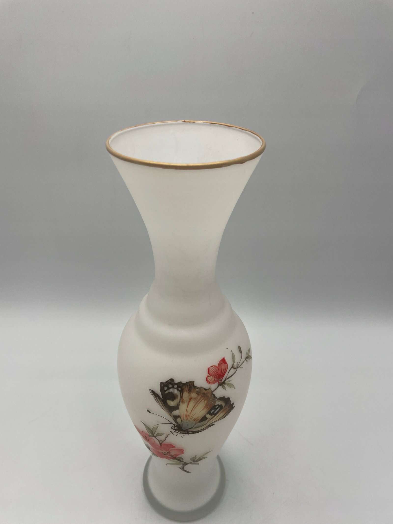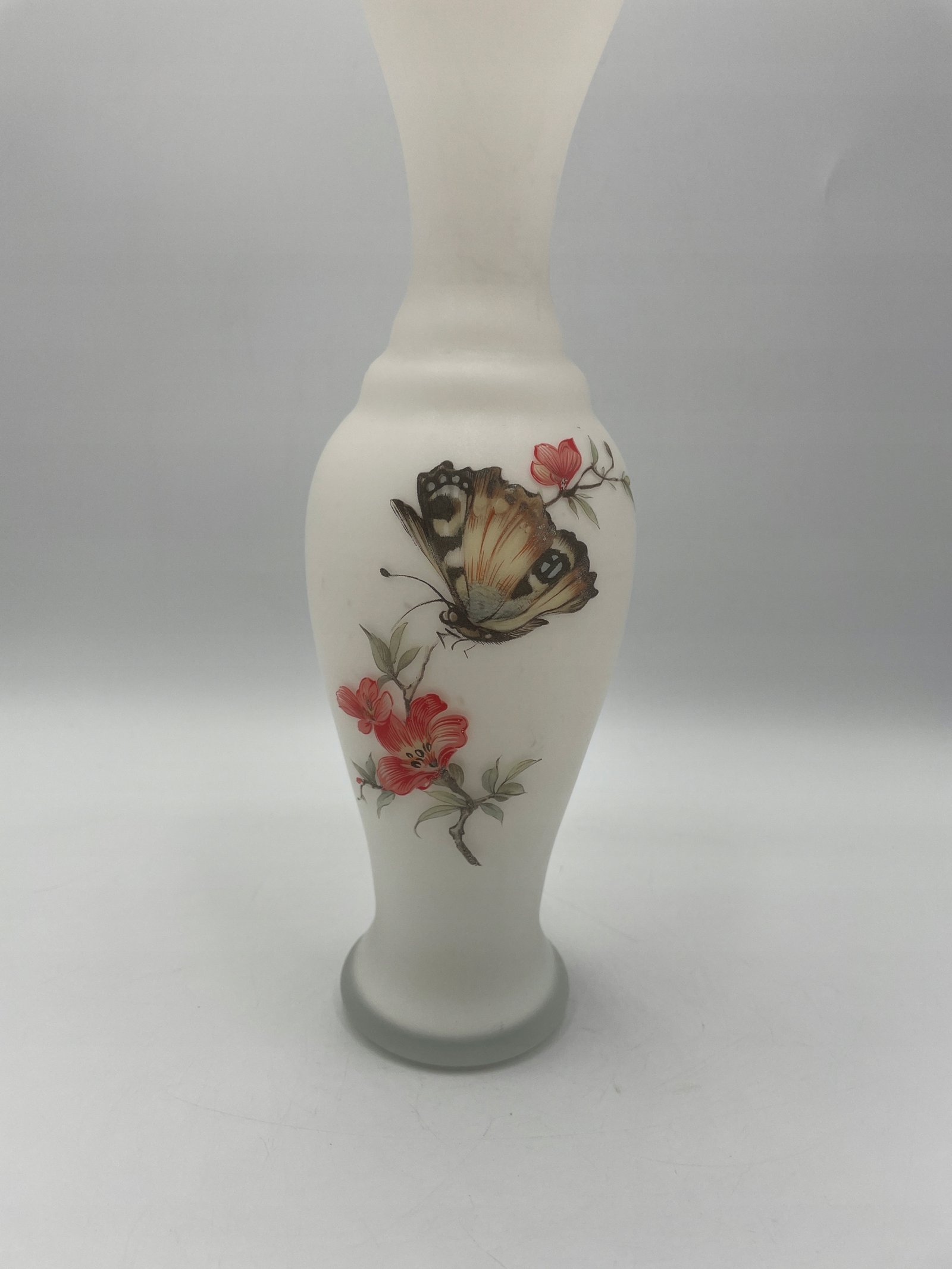WŁOSKI WAZON Z MOTYLEM KIELICH Z MLECZNEGO SZKŁA