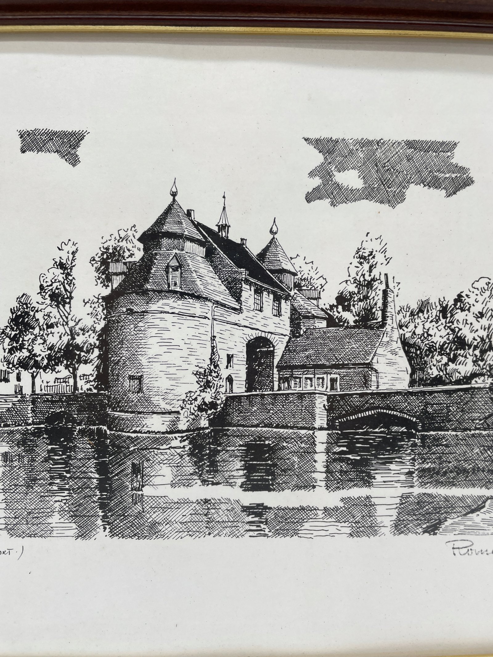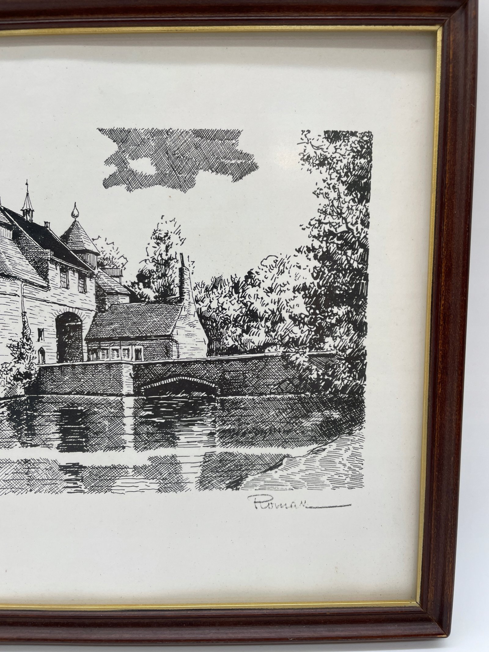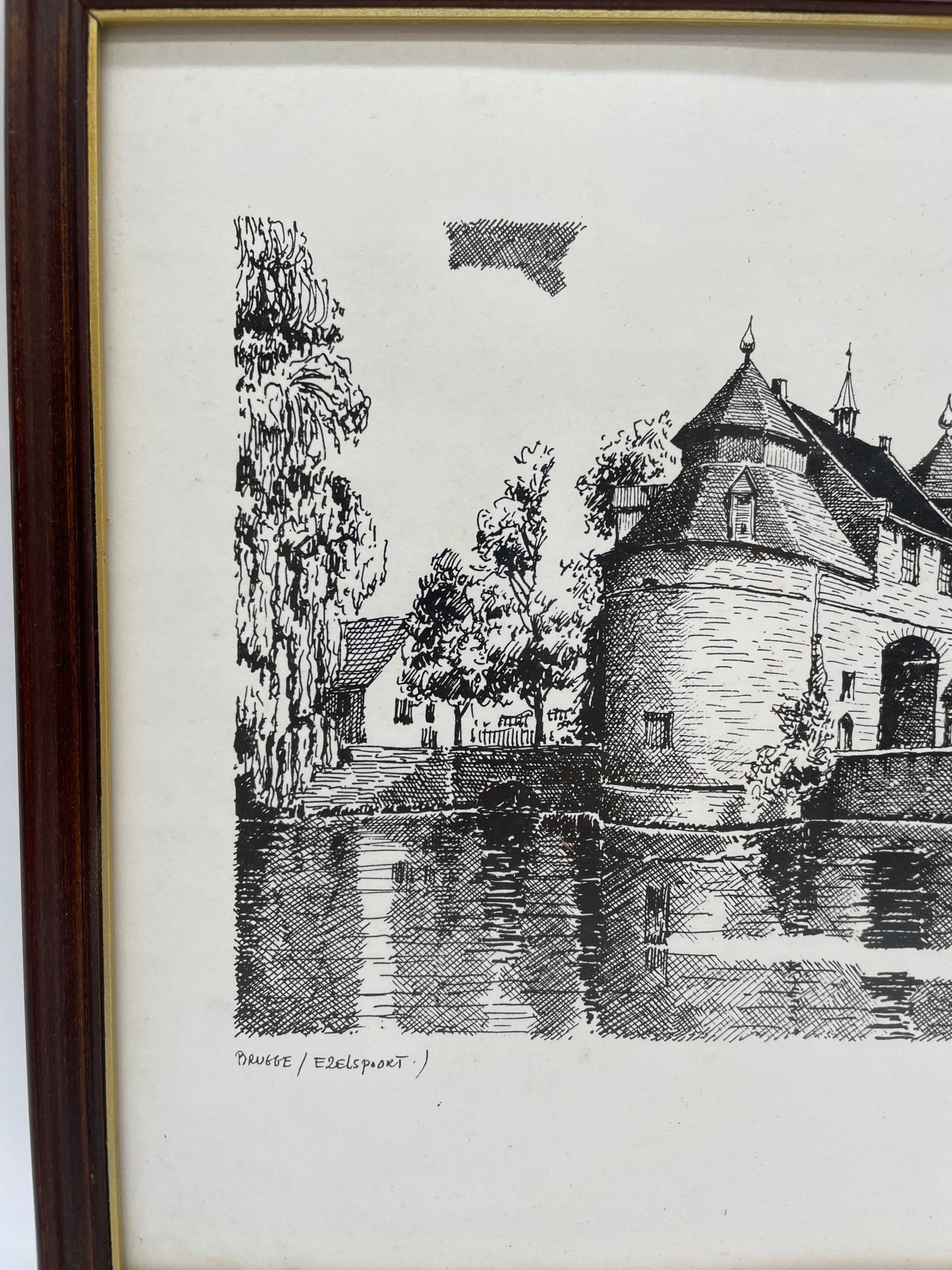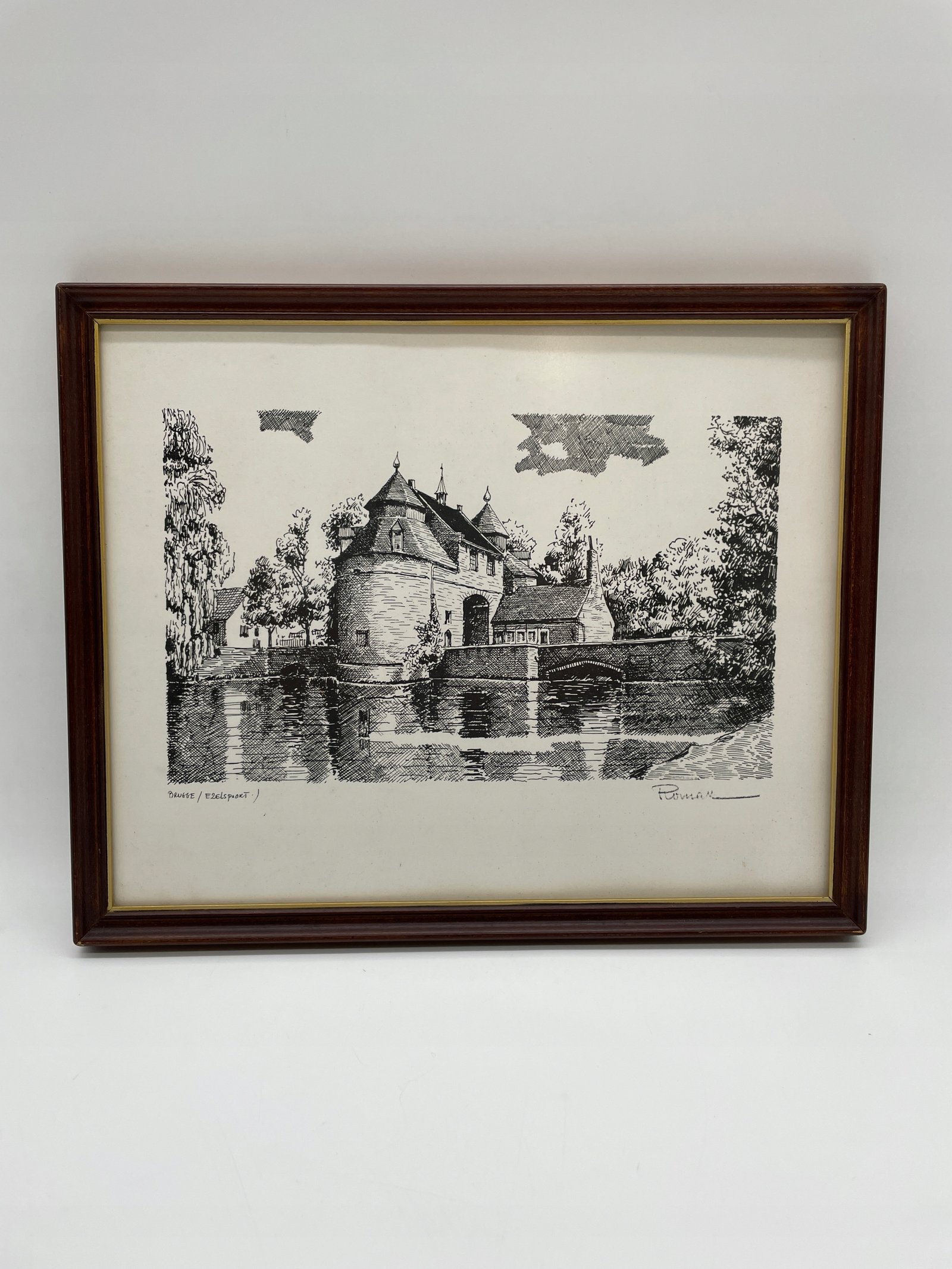 Wydruk Belgia lata 70. Daveloz zamek Roesenart w ramie 32×26 cm