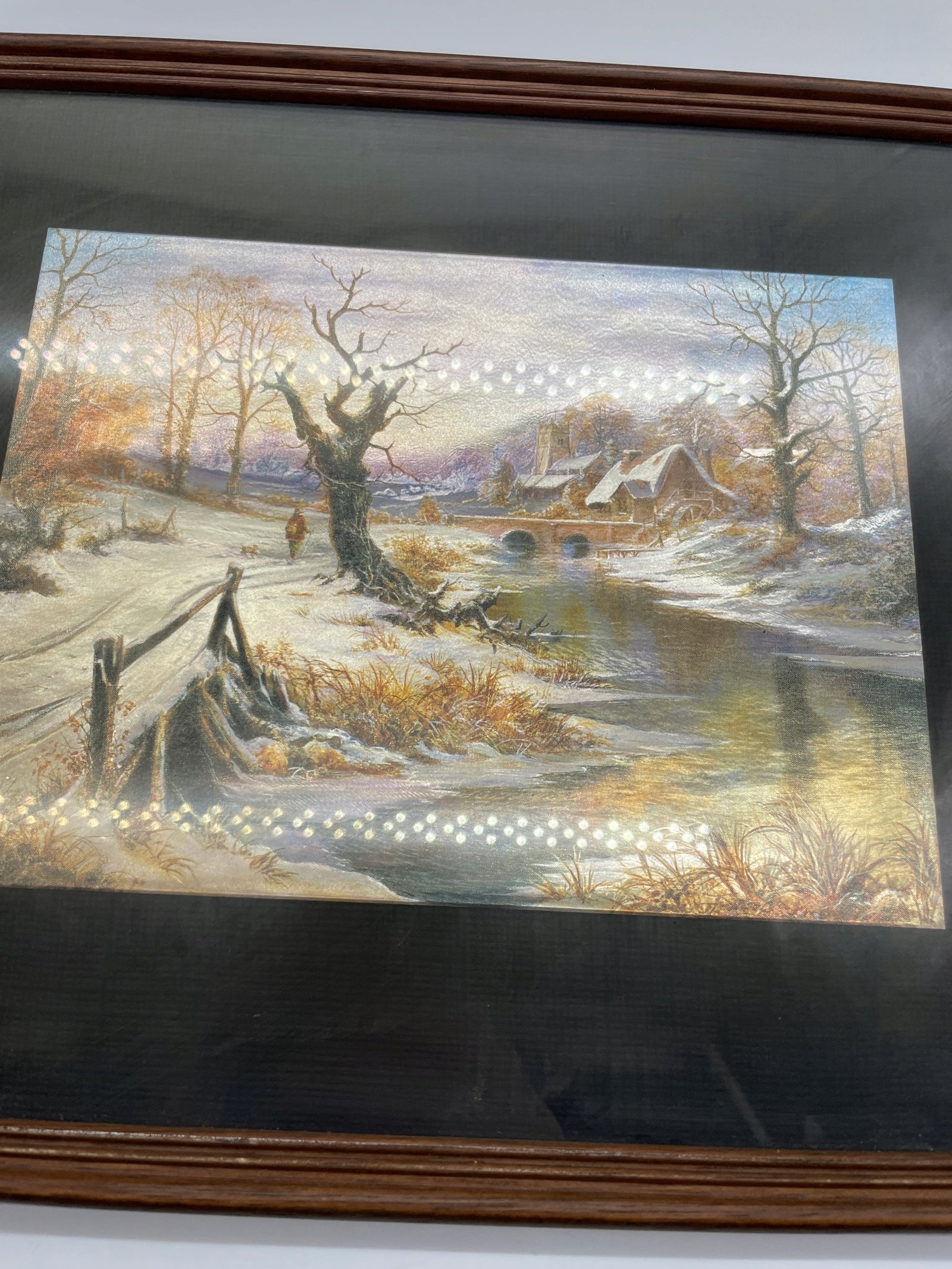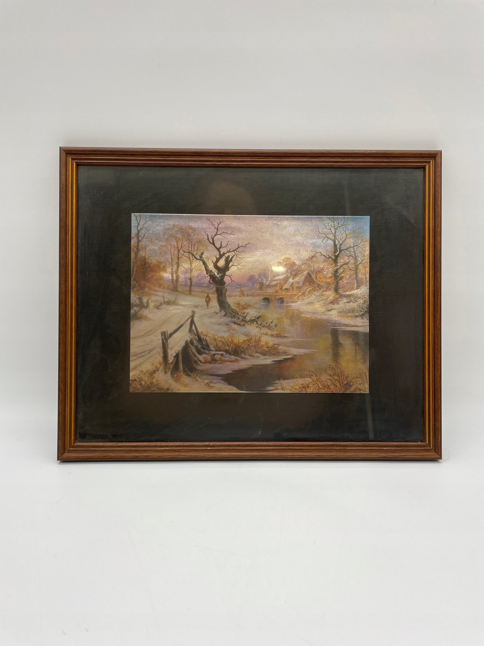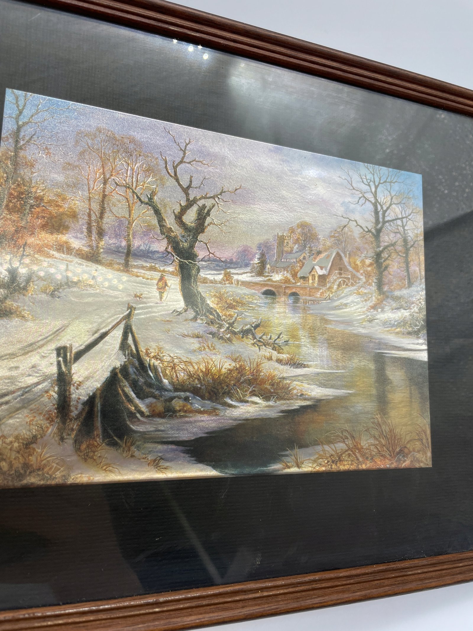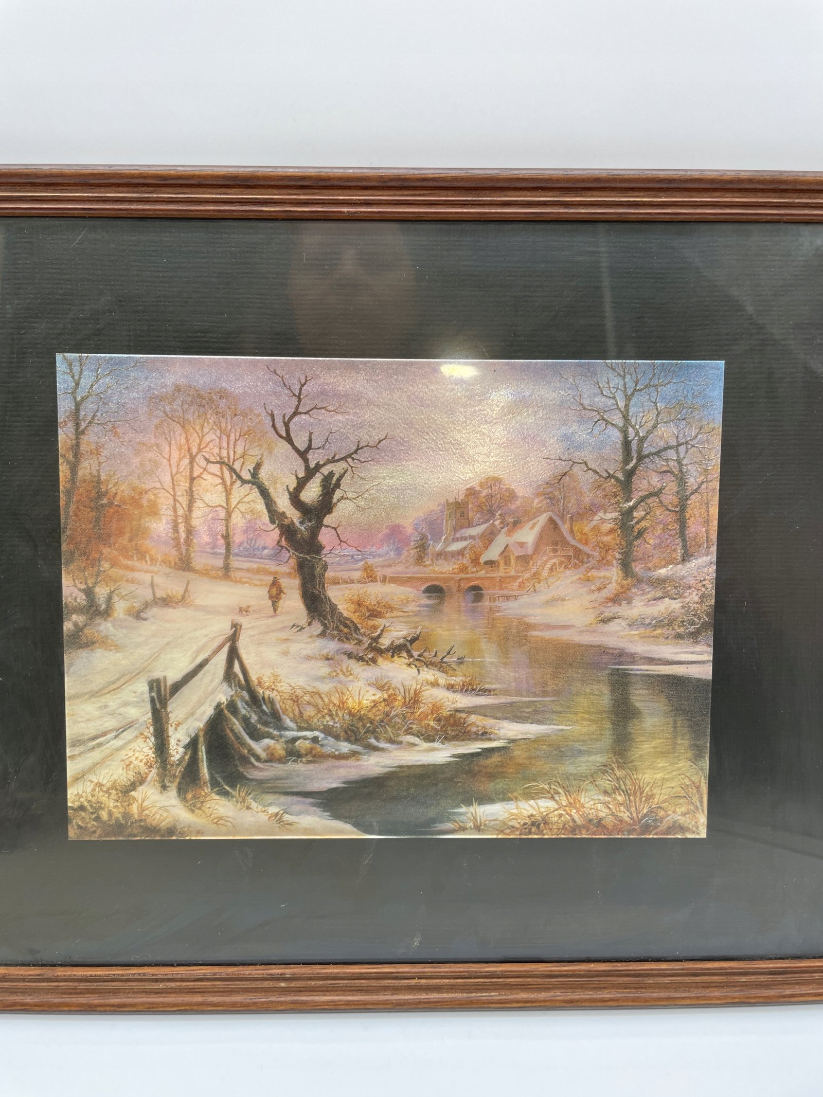 Wydruk z efektem połyskującym zima z domem i rzeką 32×26 cm