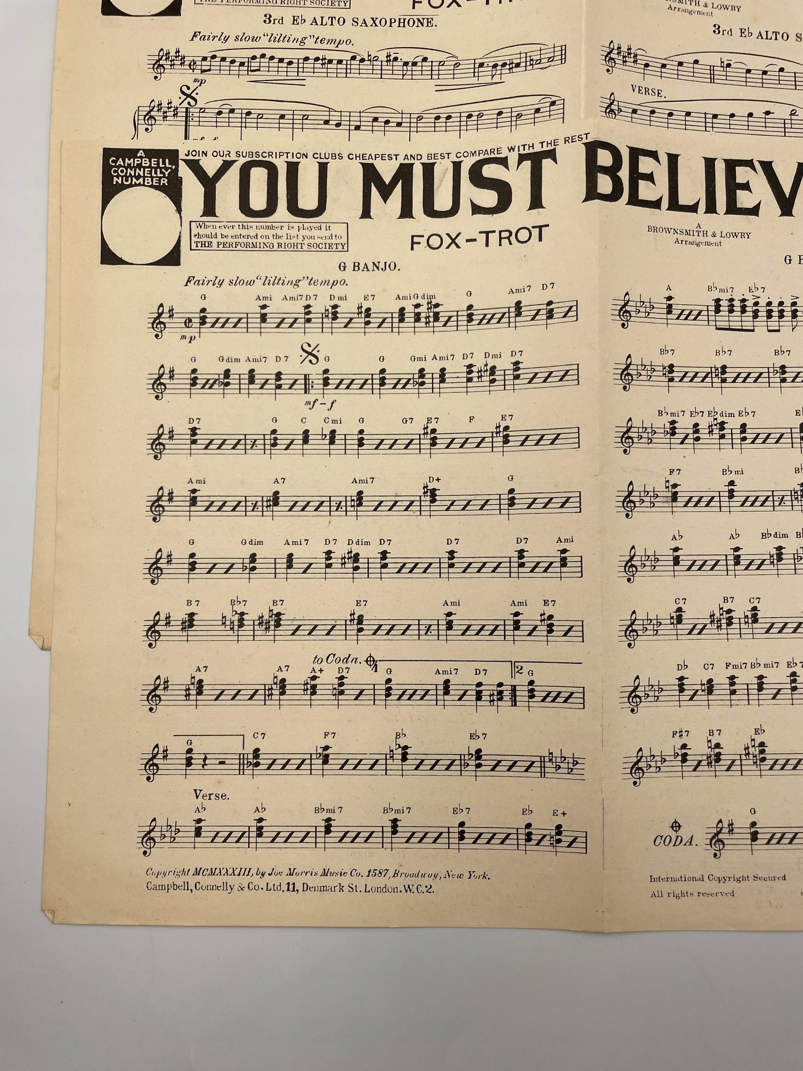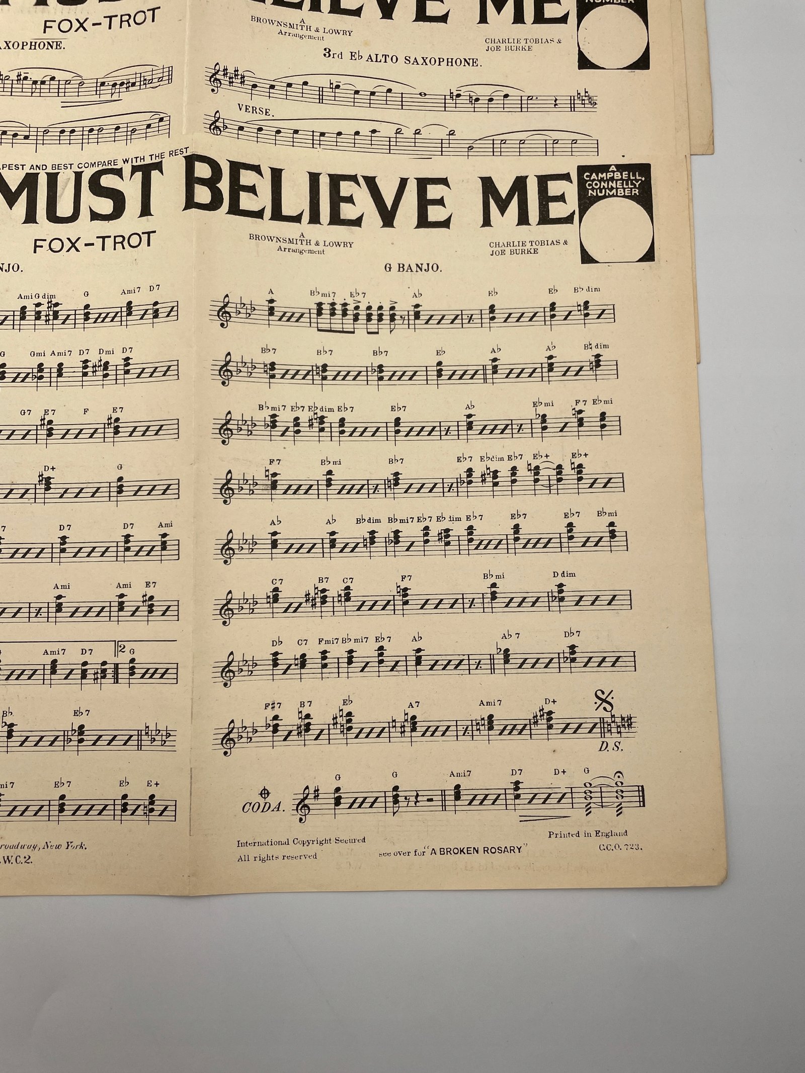 Oryginalne wydanie utworów „You Must Believe Me” i „A Broken Rosary”, autorstwa Charliego Tobiasa i Joe Burke’a. To foxtrot i walc – lekkie, taneczne kompozycje w stylu muzyki popularnej lat 30., opracowane na różne instrumenty orkiestry dętej i smyczkowej.