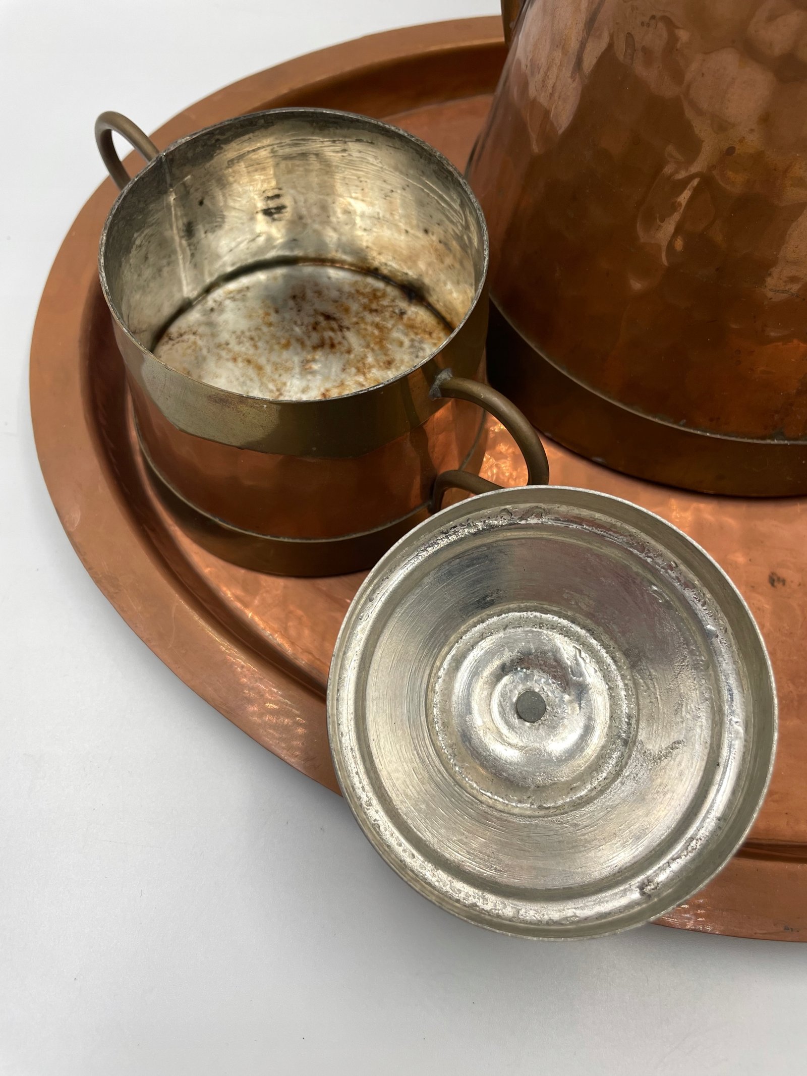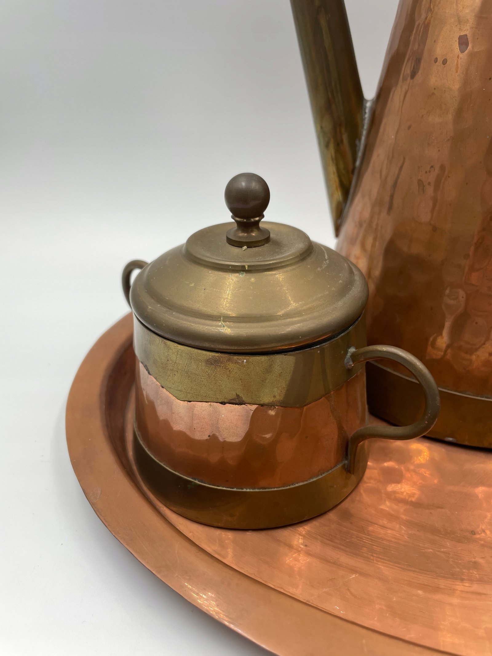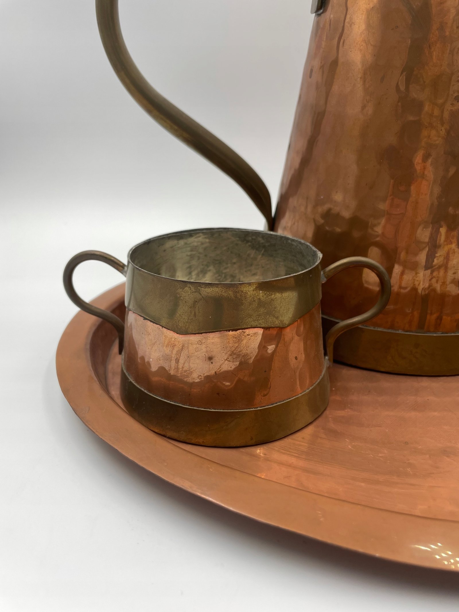 Zestaw do herbaty dekoracyjny miedziany na tacy